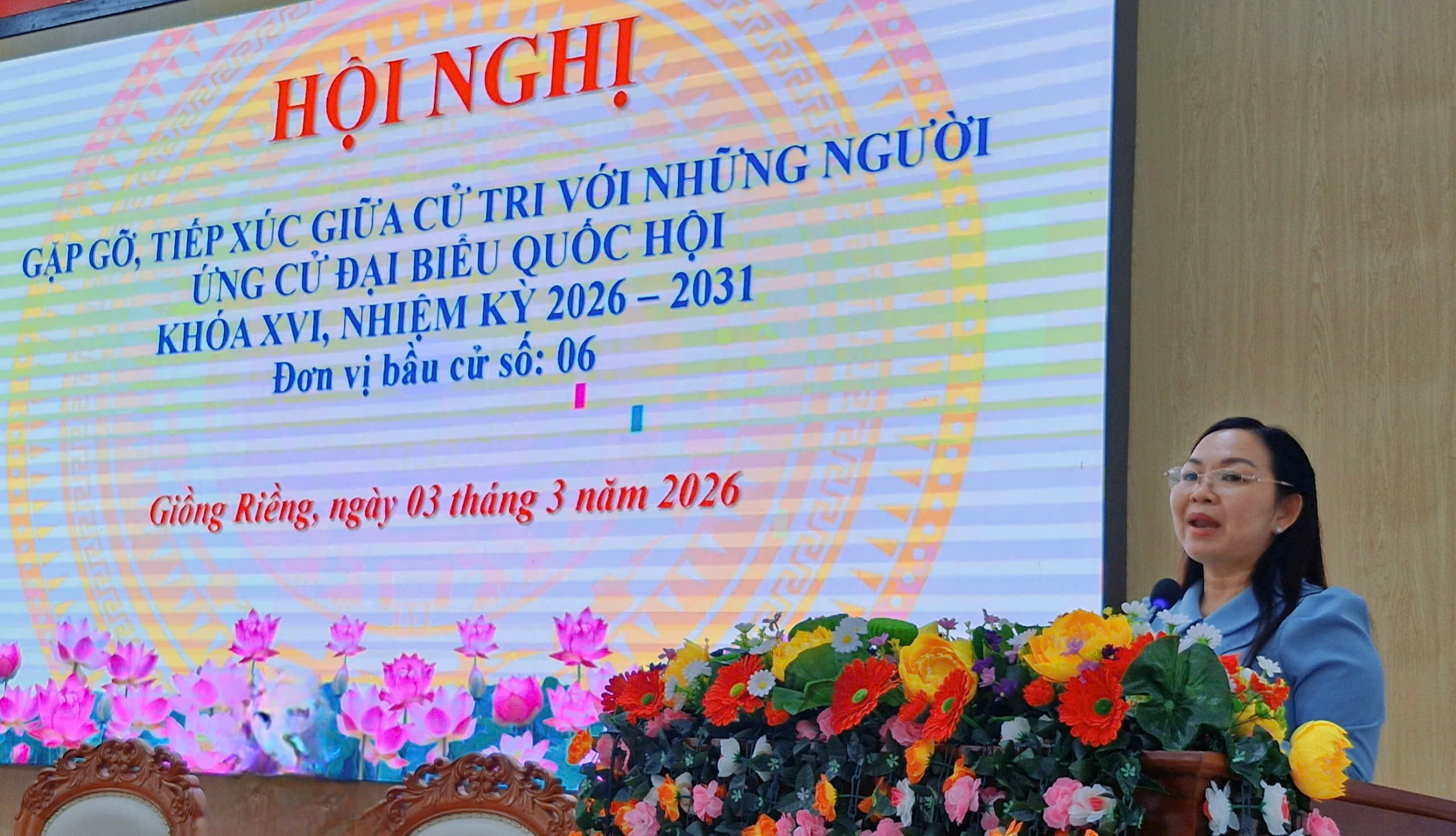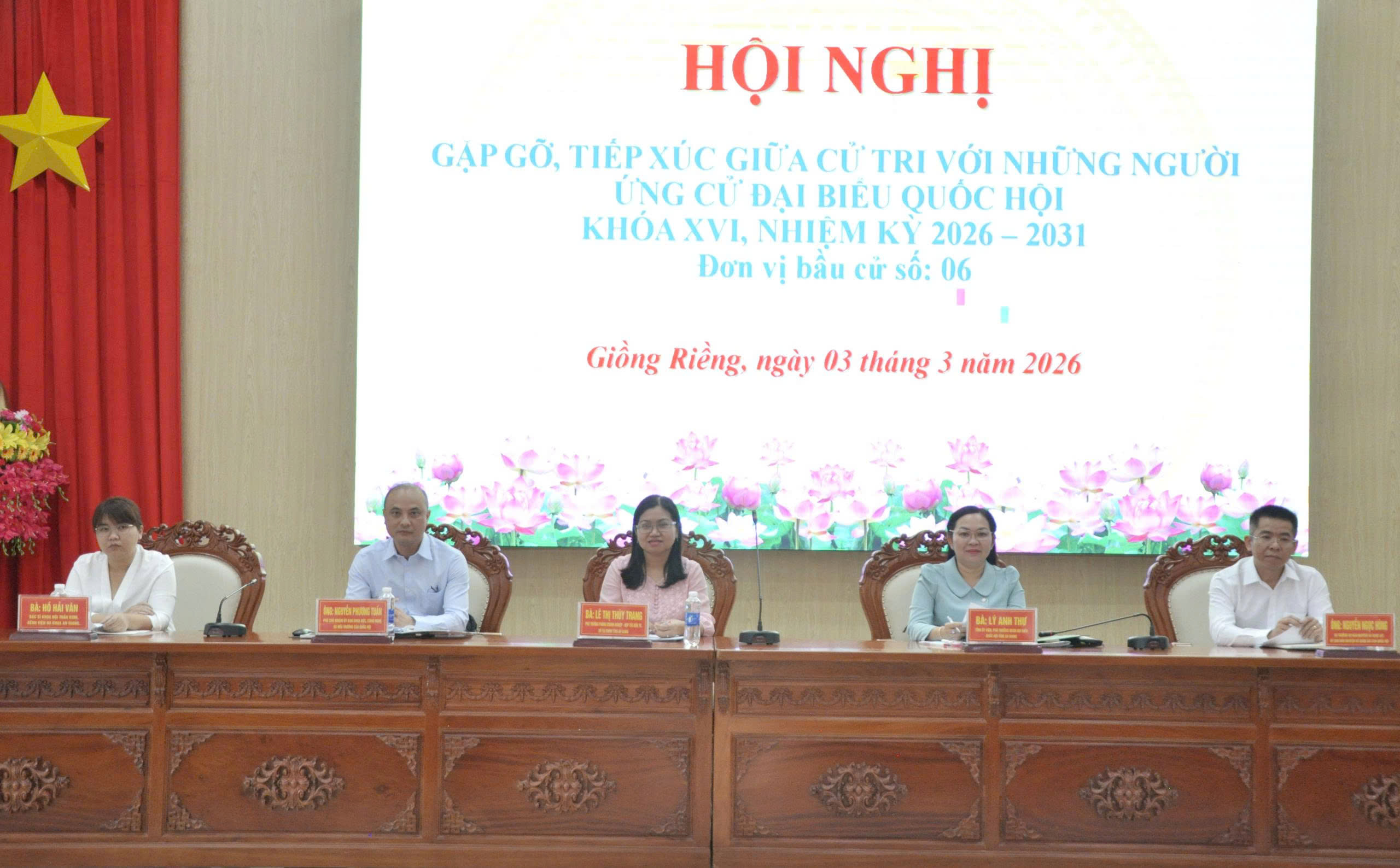 (Cổng TTĐT tỉnh AG)- Sáng 03/3, tại Hội trường Đảng ủy xã Giồng Riềng, Ban Thường trực Ủy ban MTTQ Việt Nam tỉnh An Giang tổ chức Hội nghị tiếp xúc cử tri để các ứng cử viên đại biểu Quốc hội khóa XVI (nhiệm kỳ 2026-2031) đơn vị bầu cử số 6 tỉnh An Giang tiếp xúc cử tri, báo cáo chương trình hành động và thực hiện vận động bầu cử theo quy định của pháp luật.