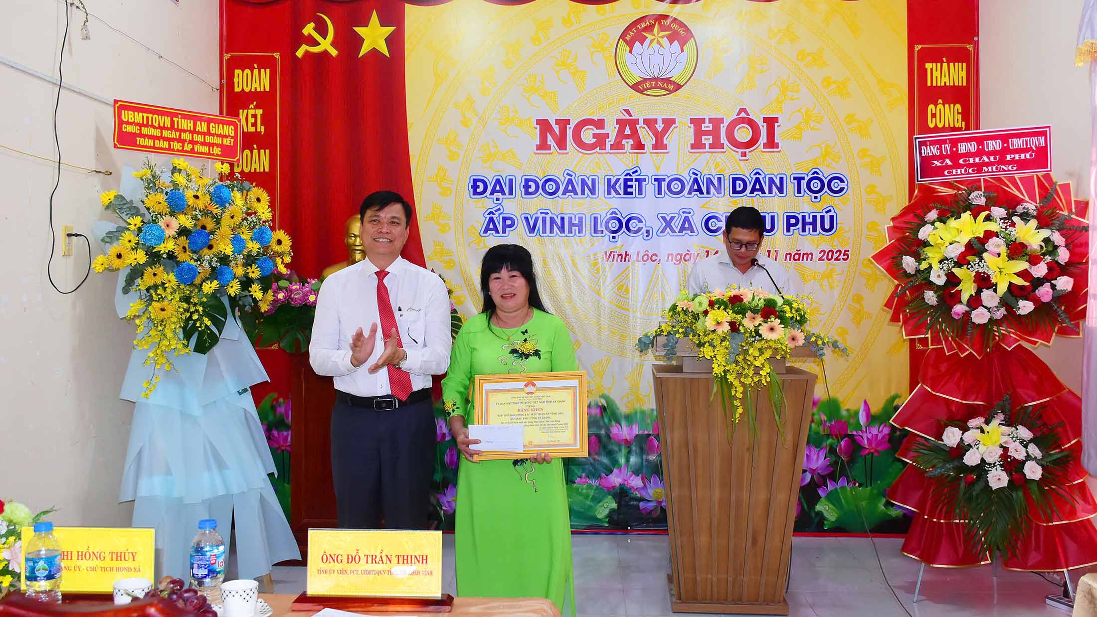 (Cổng TTĐT tỉnh AG)-Chiều 14/11, Tỉnh ủy viên, Phó Chủ tịch Ủy ban MTTQVN tỉnh - Chủ tịch Liên đoàn Lao động tỉnh An Giang Đỗ Trần Thịnh đến dự Ngày hội Đại đoàn kết toàn dân tộc ấp Vĩnh Lộc, xã Châu Phú, nhân kỷ niệm 95 năm Ngày thành lập Mặt trận Dân tộc Thống nhất Việt Nam - Ngày truyền thống MTTQ Việt Nam (18/11/1930 - 18/11/2025).