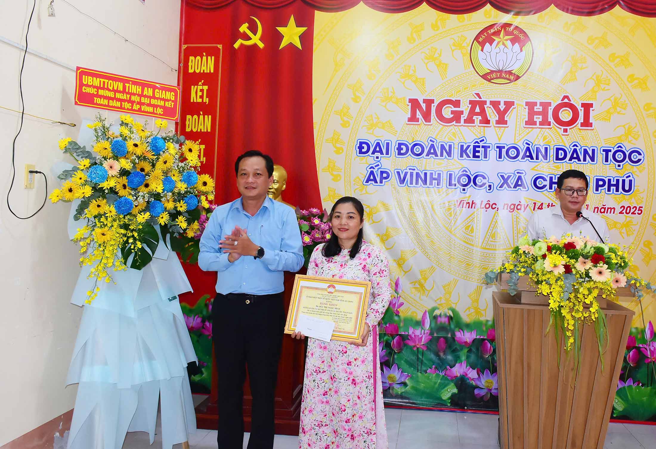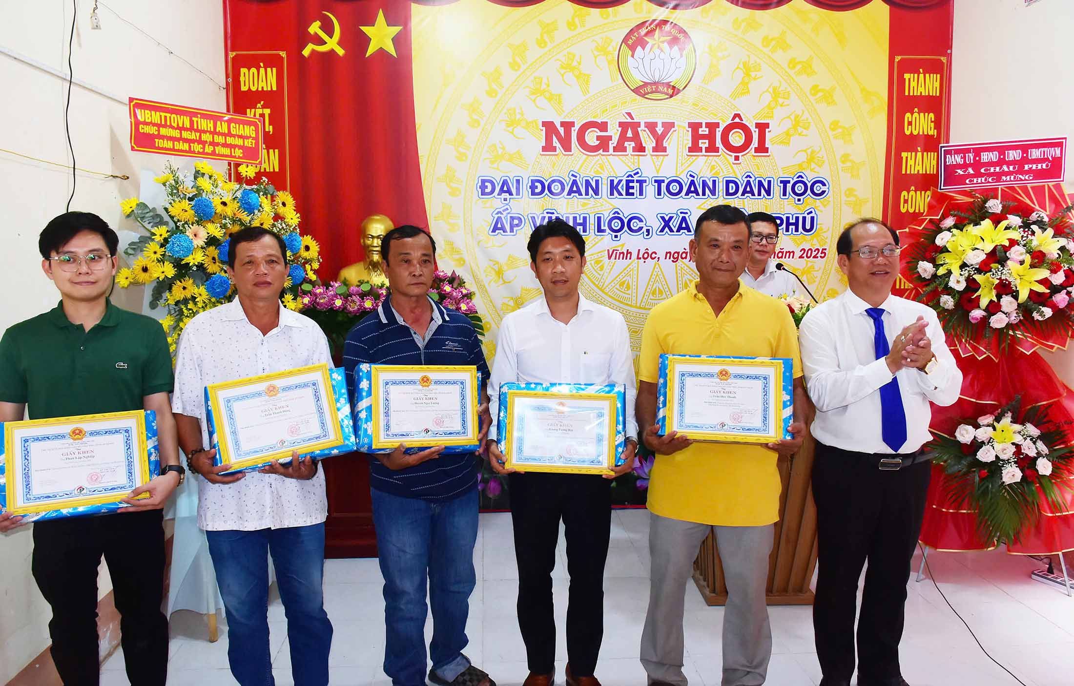 Dịp này, Ủy ban MTTQ Việt Nam tỉnh An Giang tặng bằng khen cho 1 tập thể, 1 cá nhân có thành tích xuất sắc trong thực hiện cuộc vận động “Toàn dân đoàn kết xây dựng nông thôn mới”; UBND xã Châu Phú trao giấy khen cho 5 cá nhân có thành tích xuất sắc trong phong trào thi đua yêu nước năm 2025. /.