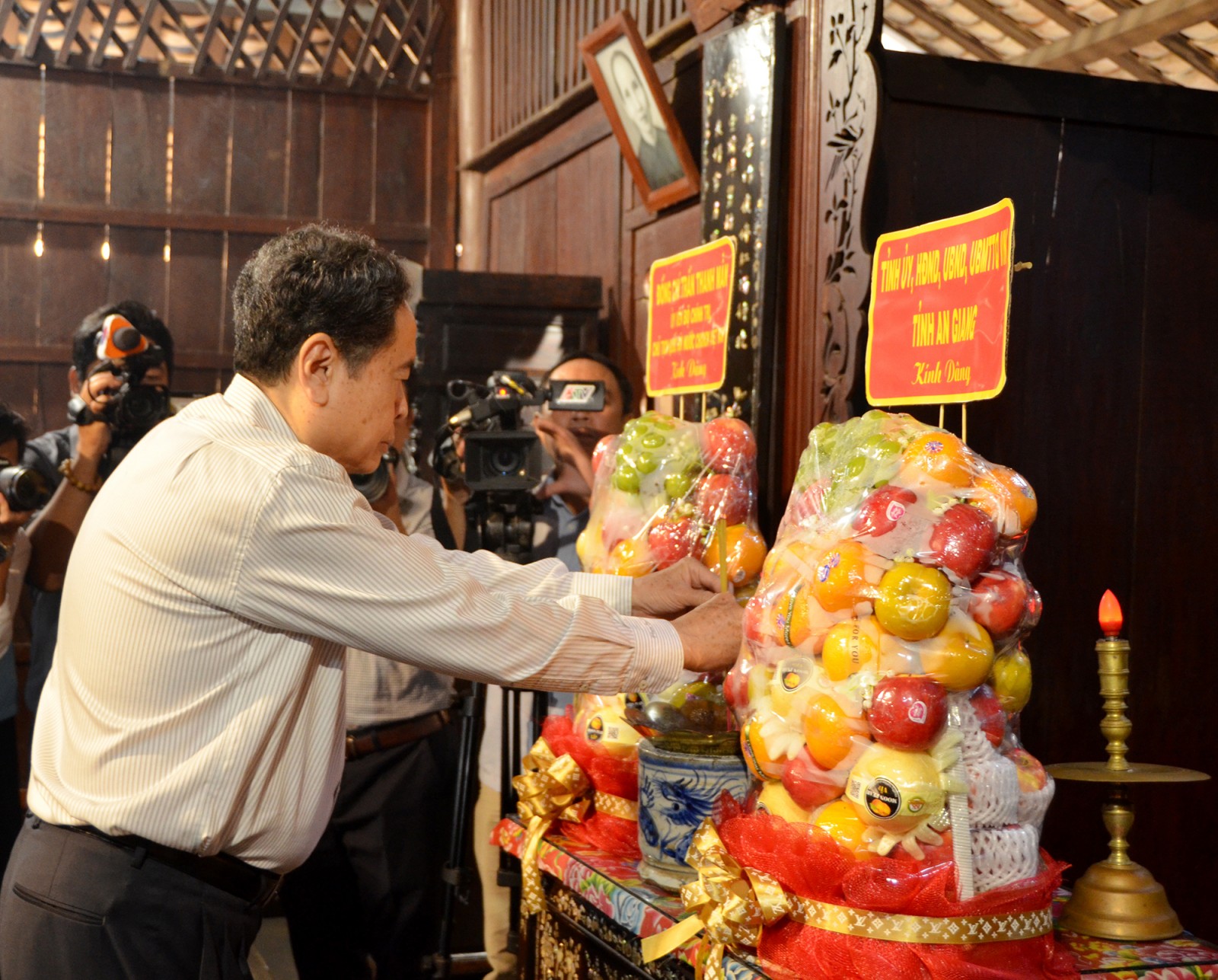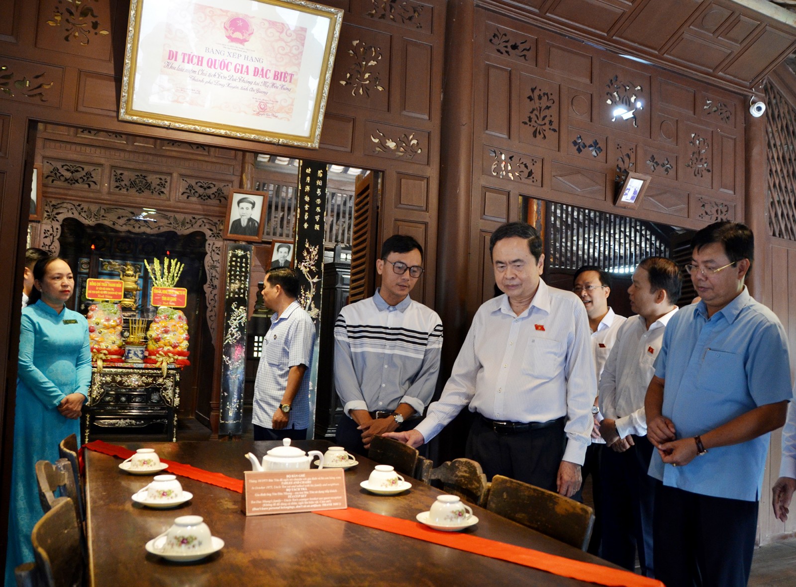 Tại đền thờ Chủ tịch Tôn Đức Thắng, Chủ tịch Quốc hội Trần Thanh Mẫn, cùng các thành viên đoàn công tác Trung ương và tỉnh An Giang thành kính dành phút mặc niệm, dâng hương tưởng nhớ Chủ tịch Tôn Đức Thắng.