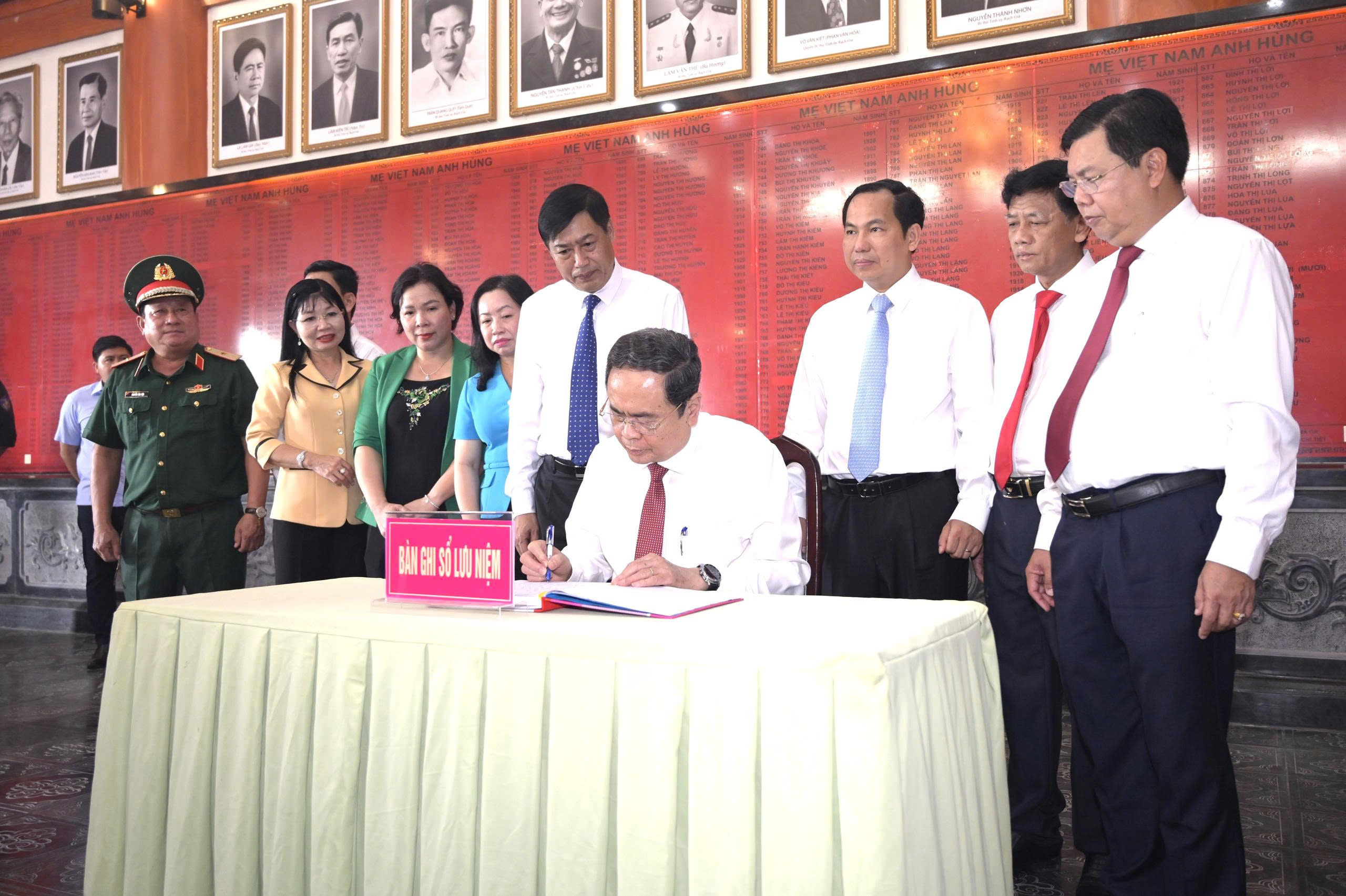 Ghi sổ lưu niệm, Chủ tịch Quốc hội Trần Thanh Mẫn bày tỏ xúc động được đến dâng hương tại Đền tưởng niệm các Anh hùng liệt sỹ và người có công tỉnh An Giang - nơi hội tụ linh khí của truyền thống cách mạng kiên cường, bất khuất, nơi lưu giữ những ký ức thiêng liêng về sự hy sinh to lớn của các thế hệ đi trước vì độc lập, tự do của Tổ quốc.