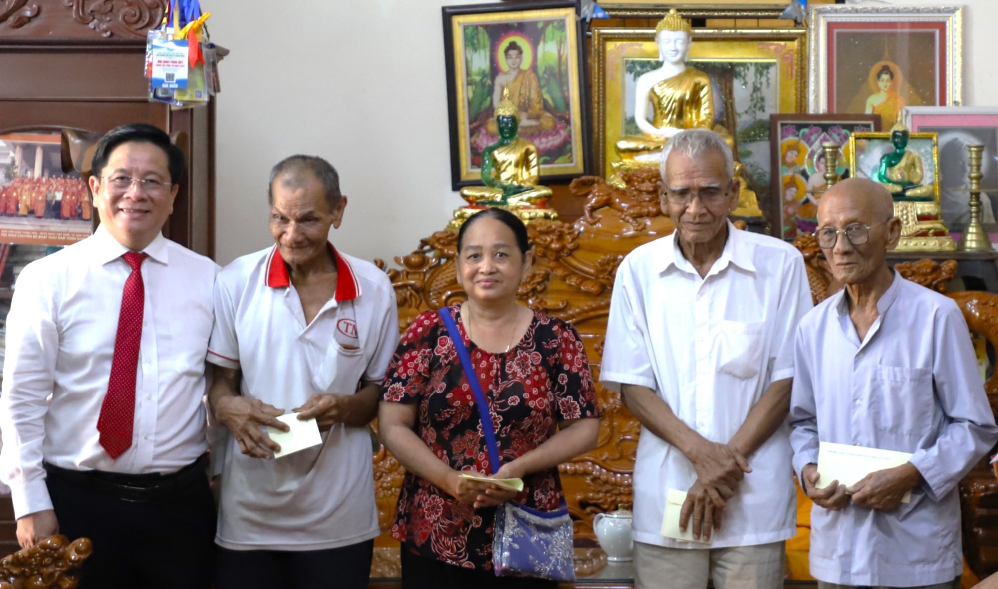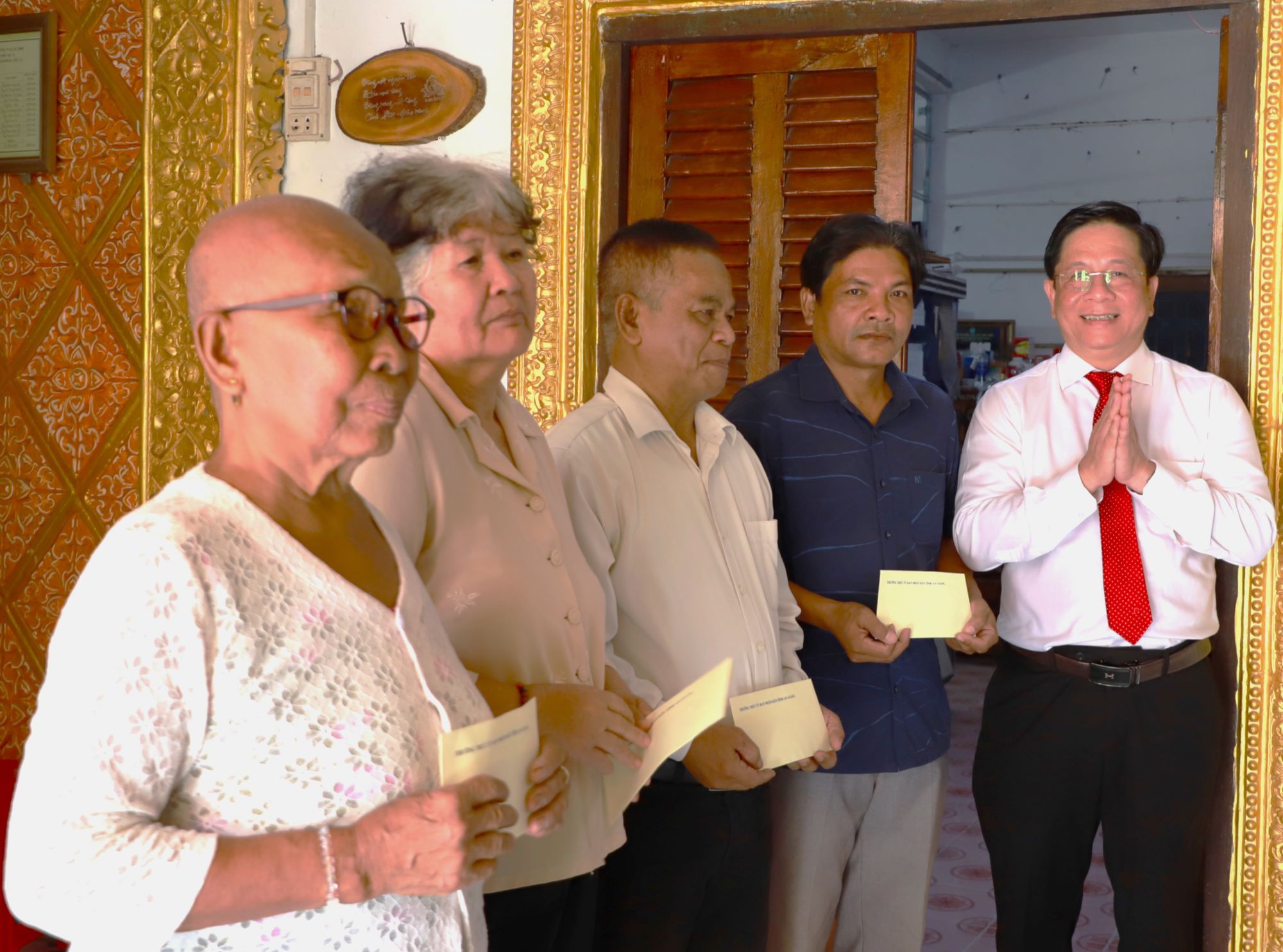 Đoàn công tác đến thăm, chúc Tết Cổ truyền tại 02 chùa Thom Mă Ni Misth (Thom Mít), chùa Pro Lai Meas (Mỹ Á), 04 gia đình chính sách và 04 cán bộ hưu trí.