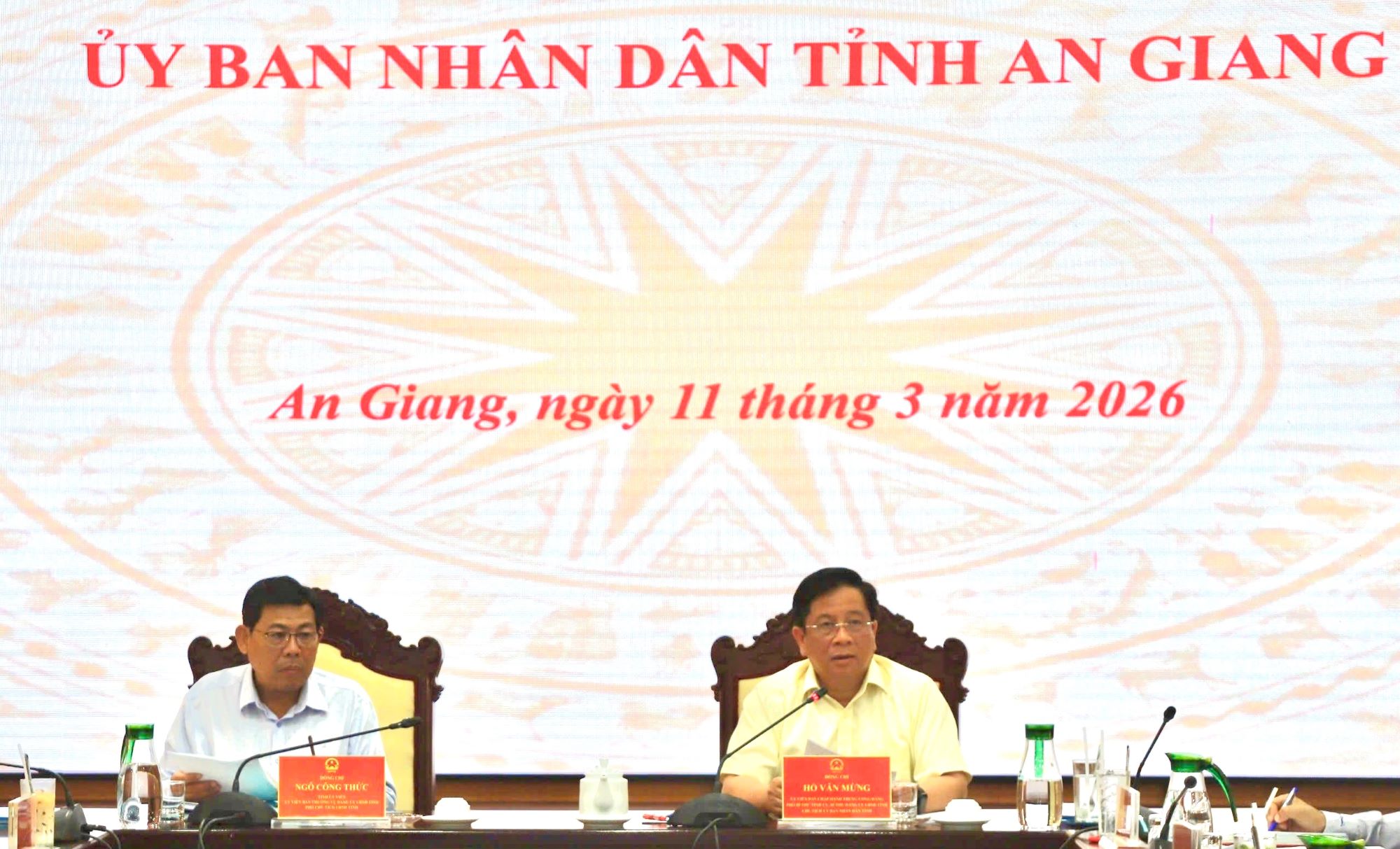 (Cổng TTĐT tỉnh AG) - Sáng ngày 11/3, Ủy viên Ban Chấp hành Trung ương Đảng, Phó Bí thư Tỉnh ủy, Chủ tịch UBND tỉnh An Giang Hồ Văn Mừng chủ trì buổi làm việc tháo gỡ khó khăn, vướng mắc cho các dự án trên địa bàn với các sở, ban, ngành liên quan. Cùng tham dự, có Tỉnh ủy viên, Phó Chủ tịch UBND tỉnh Ngô Công Thức.