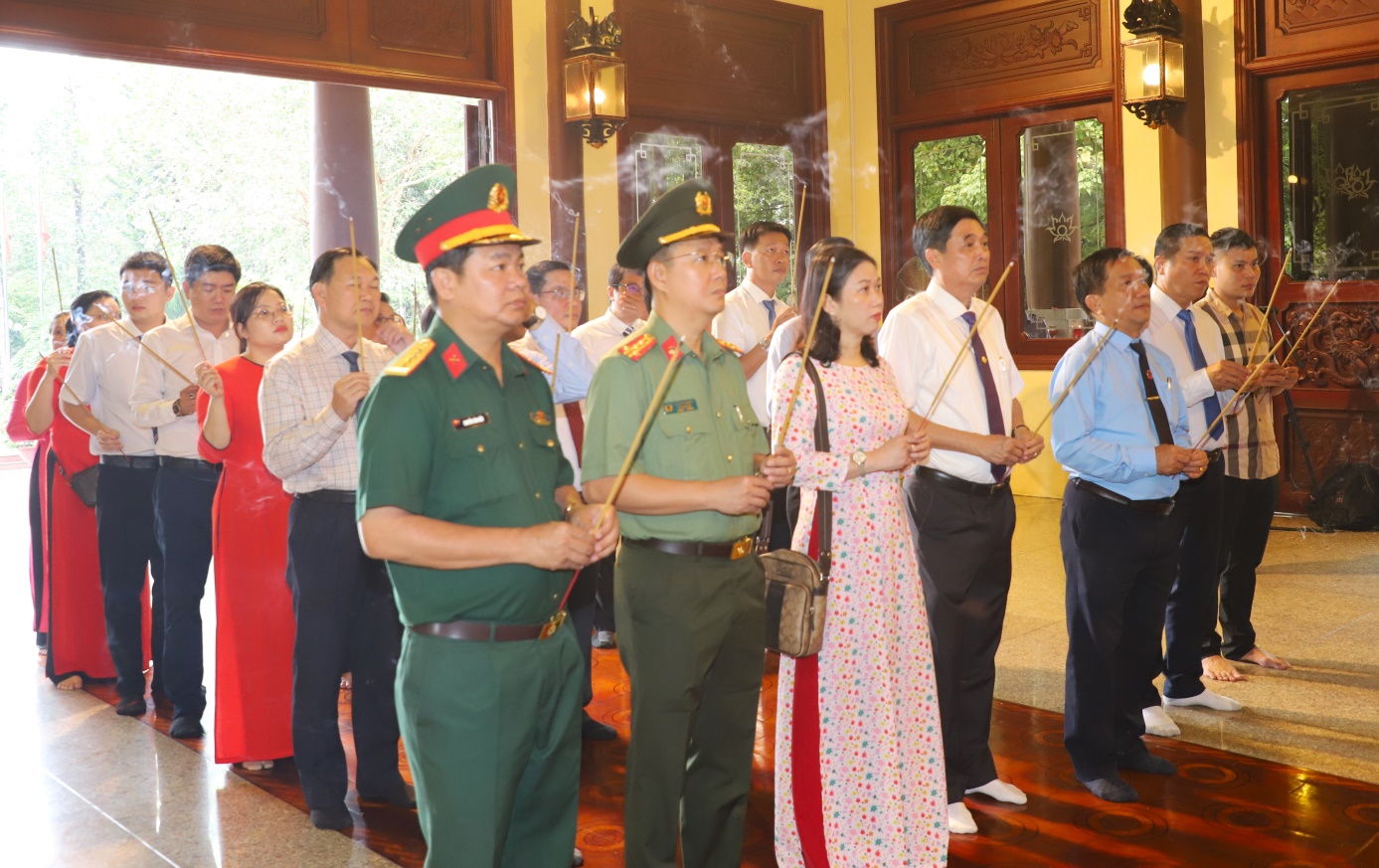 Tại buổi dâng hương, Chủ tịch UBND tỉnh An Giang Hồ Văn Mừng cùng các đại biểu trong Đoàn đã dành 1 phút mặc niệm để tưởng nhớ và tri ân đến Chủ tịch Tôn Đức Thắng.