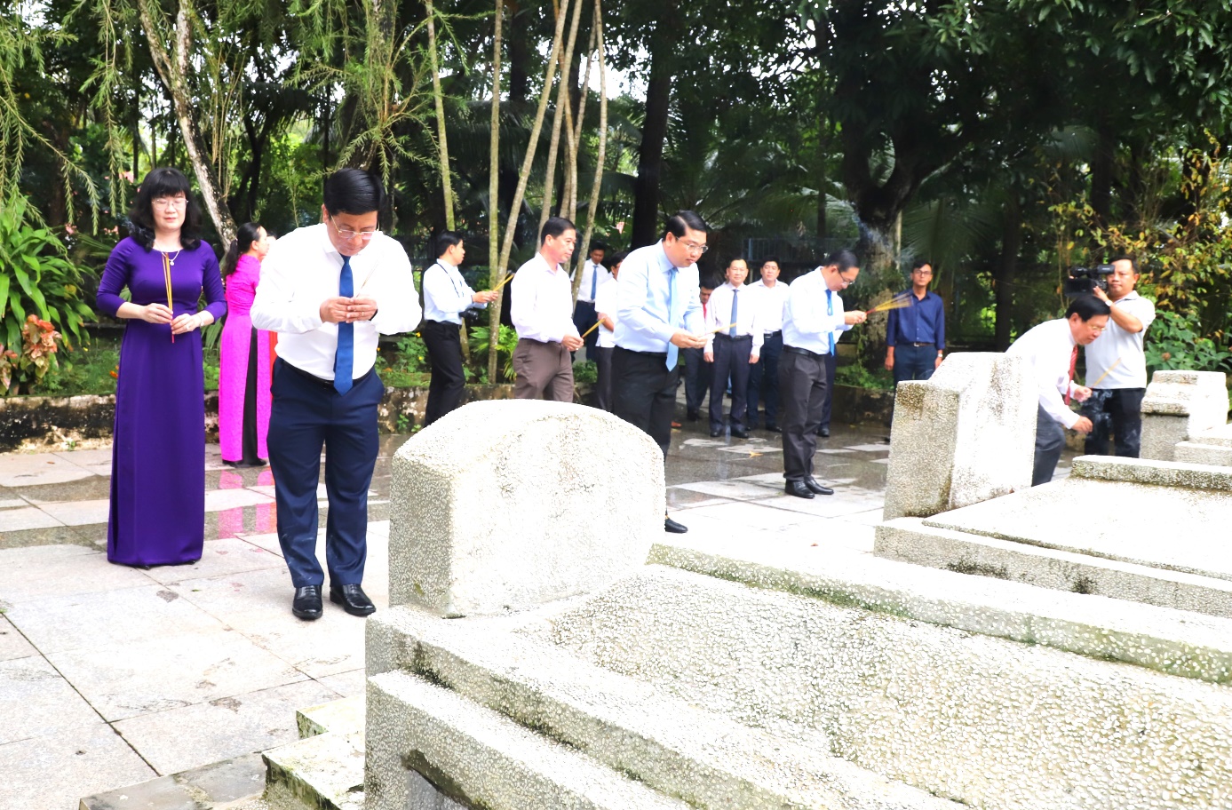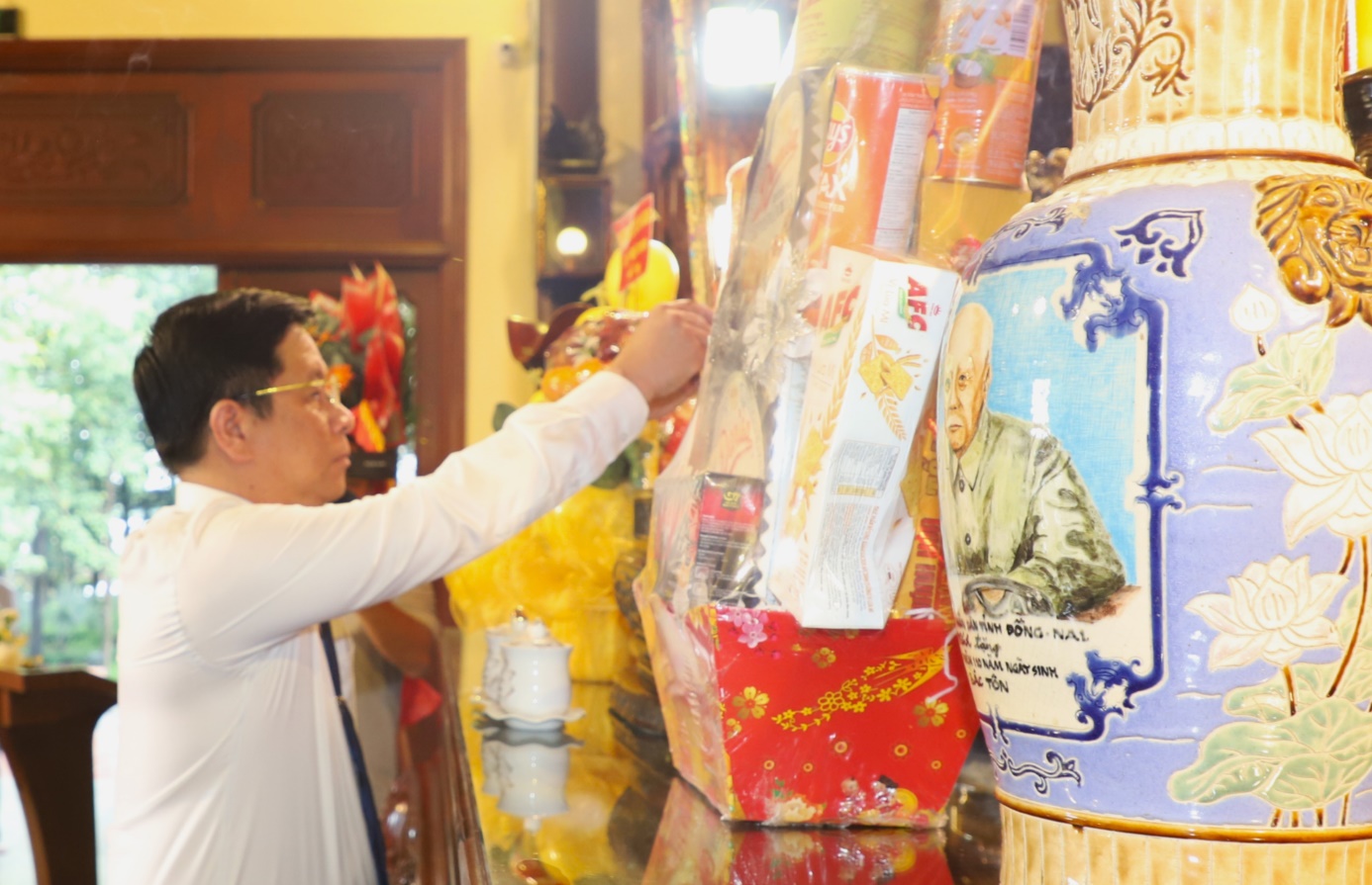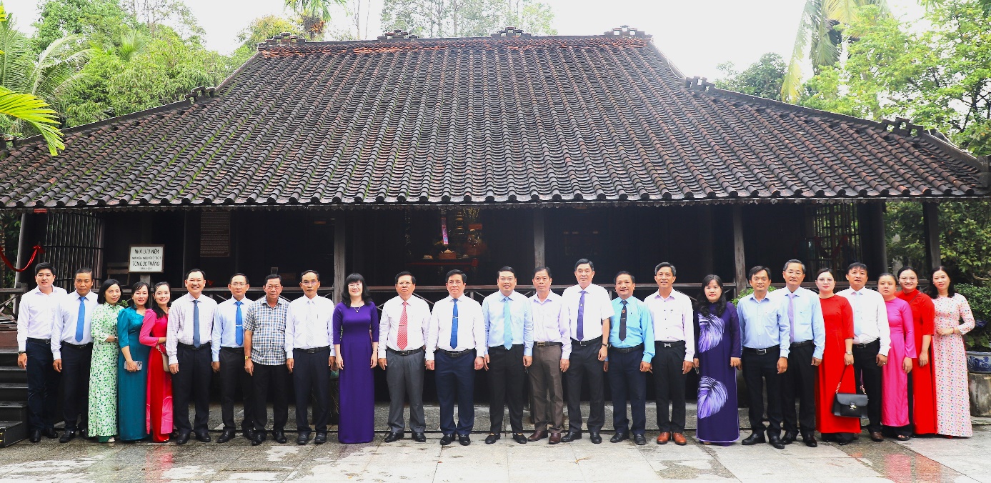 Đoàn công tác cũng đến dâng hương tại Khu Nhà lưu niệm thời niên thiếu và Khu mộ thân sinh Chủ tịch Tôn Đức Thắng.