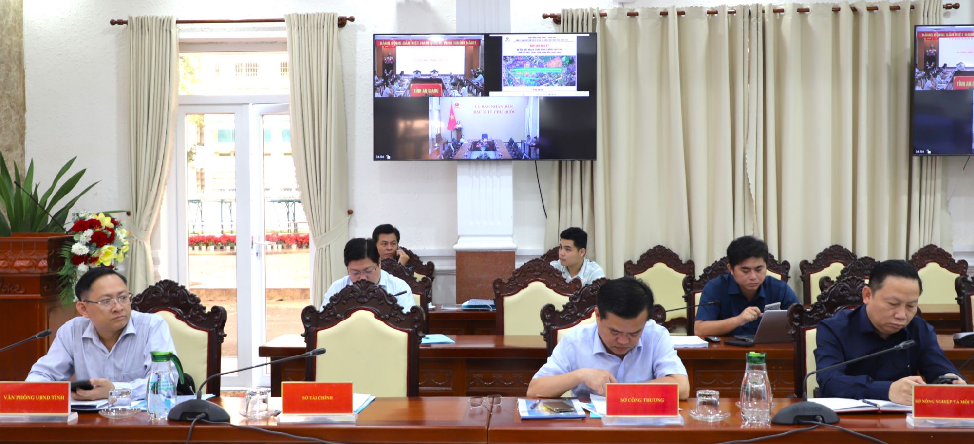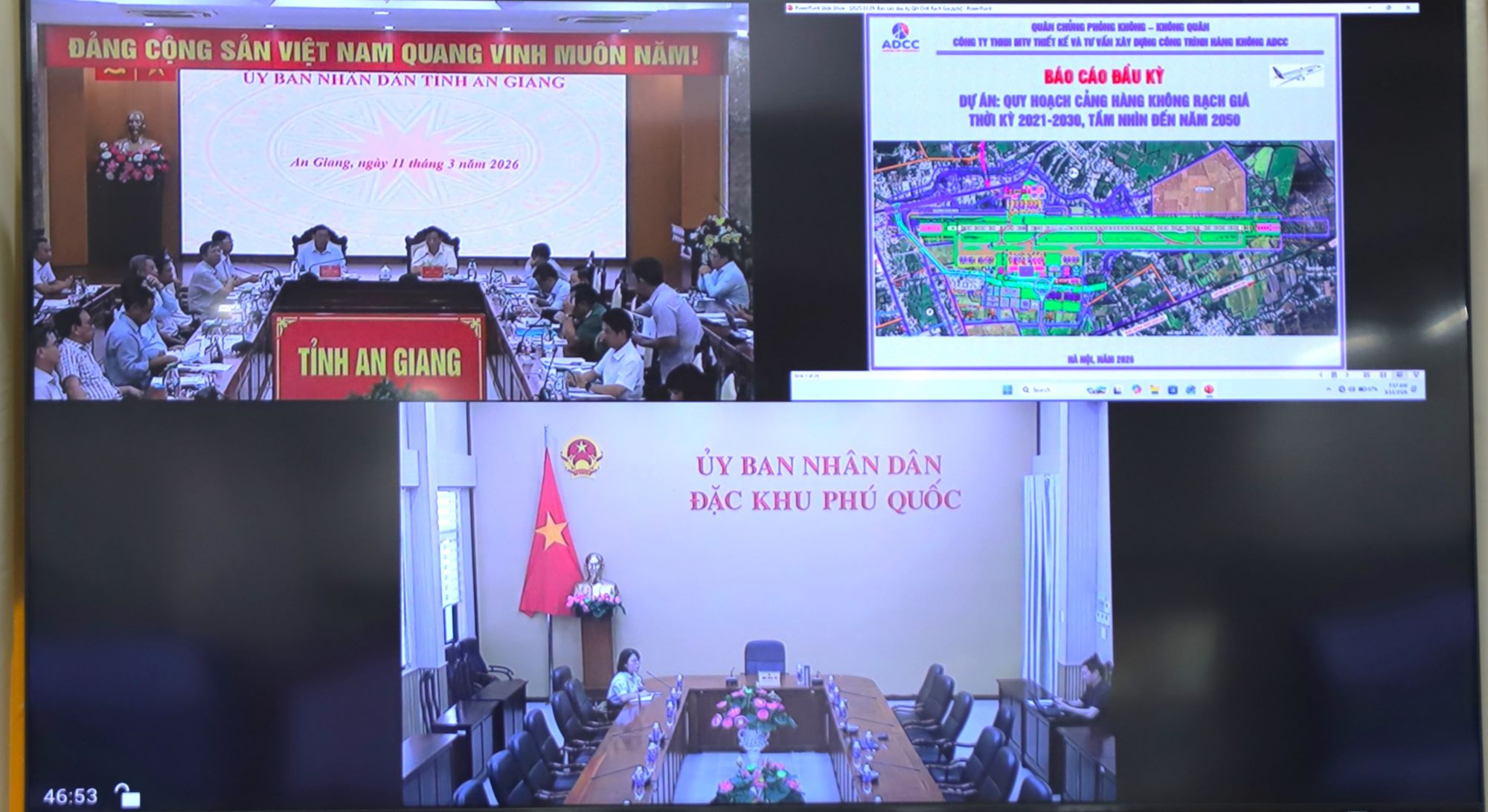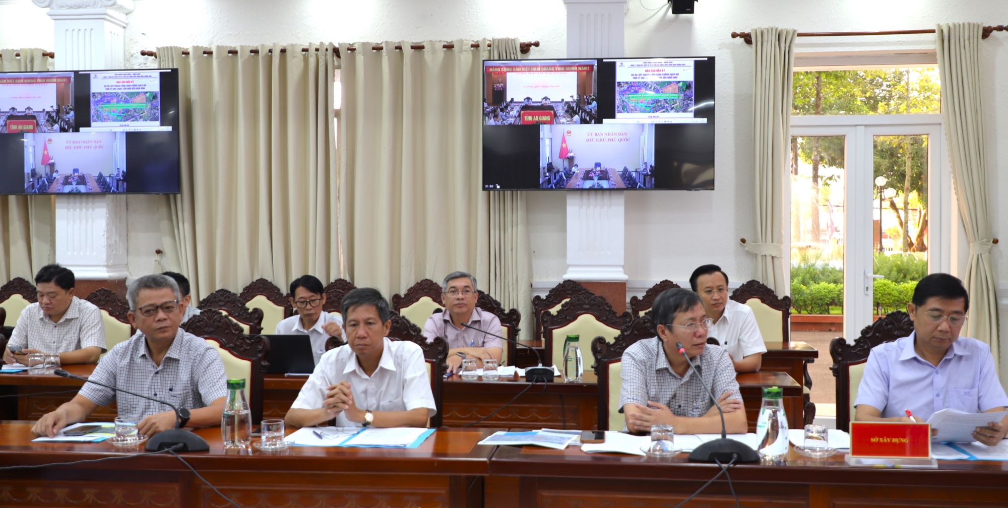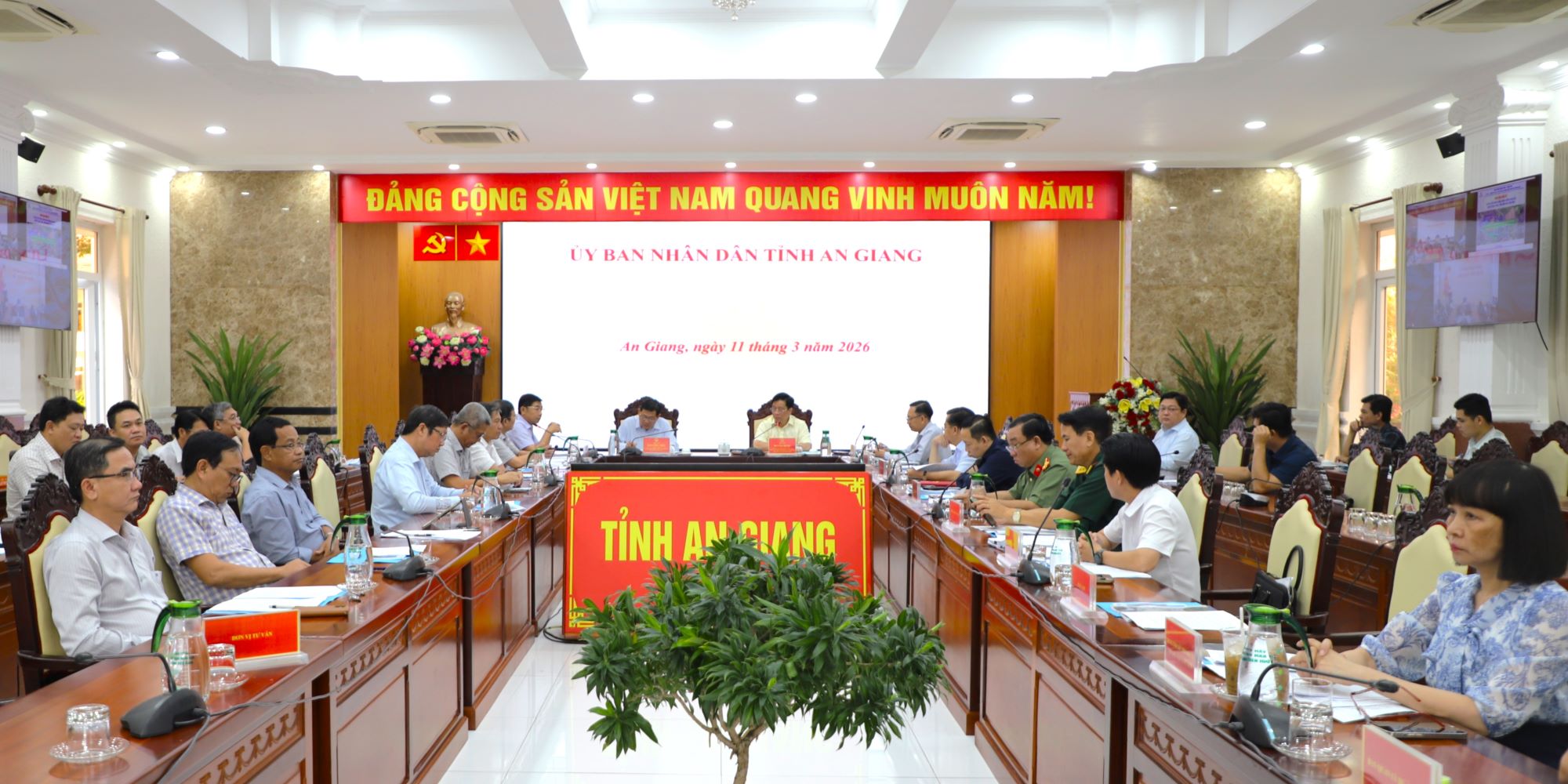 (Cổng TTĐT tỉnh AG) - Sáng ngày 11/3, Ủy viên Ban Chấp hành Trung ương Đảng, Phó Bí thư Tỉnh ủy, Chủ tịch UBND tỉnh An Giang Hồ Văn Mừng và Phó Chủ tịch UBND tỉnh Ngô Công Thức đồng chủ trì buổi làm việc với Sở Xây dựng về tiến độ triển khai một số dự án và nội dung trọng điểm trên địa bàn tỉnh. Đại diện Lãnh đạo các sở, ban, ngành; đơn vị liên quan; trực tuyến với đặc khu Phú Quốc, cùng tham dự có, Công ty Cổ phần Cảng hàng không Phú Quốc.