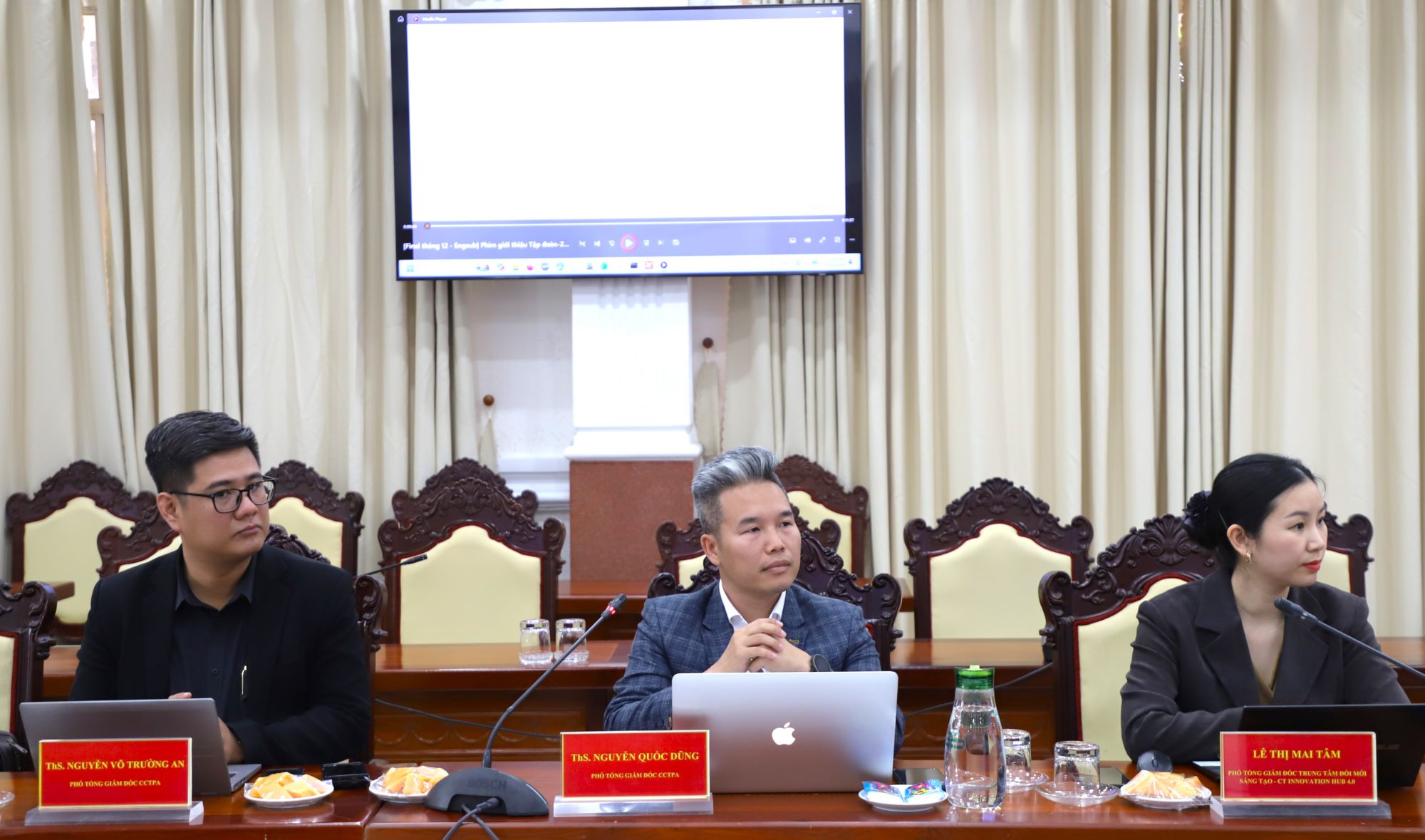 Nội dung thứ ba, giới thiệu CTI sẽ thúc đẩy hệ sinh thái đổi mới sáng tạo, phát triển kinh tế tri thức và nâng cao năng lực cạnh tranh của tỉnh An Giang trong kỷ nguyên công nghệ 4.0, cụ thể: Phối hợp nghiên cứu, thành lập và vận hành Trung tâm Đổi mới sáng tạo 4.0 tại địa phương nhằm hỗ trợ doanh nghiệp đổi mới công nghệ, thúc đẩy hoạt động nghiên cứu - phát triển và kết nối hệ sinh thái đổi mới sáng tạo; phối hợp triển khai các hoạt động kết nối cung - cầu công nghệ thông qua nền tảng Sàn giao dịch ý tưởng và tài sản trí tuệ (CTIX), hỗ trợ doanh nghiệp, viện nghiên cứu và startup đưa các công nghệ, sáng chế và giải pháp kỹ thuật vào quá trình thương mại hóa; triển khai các chương trình hỗ trợ khởi nghiệp đổi mới sáng tạo thông qua hoạt động tư vấn, đào tạo, kết nối chuyên gia và nhà đầu tư (hệ sinh thái) nhằm hỗ trợ các doanh nghiệp khởi nghiệp phát triển sản phẩm và mô hình kinh doanh công nghệ; tổ chức các chương trình đào tạo, bồi dưỡng và hỗ trợ doanh nghiệp địa phương trong việc ứng dụng công nghệ mới, nâng cao năng lực quản trị đổi mới sáng tạo và thúc đẩy phát triển sản phẩm, dịch vụ có giá trị gia tăng cao.
