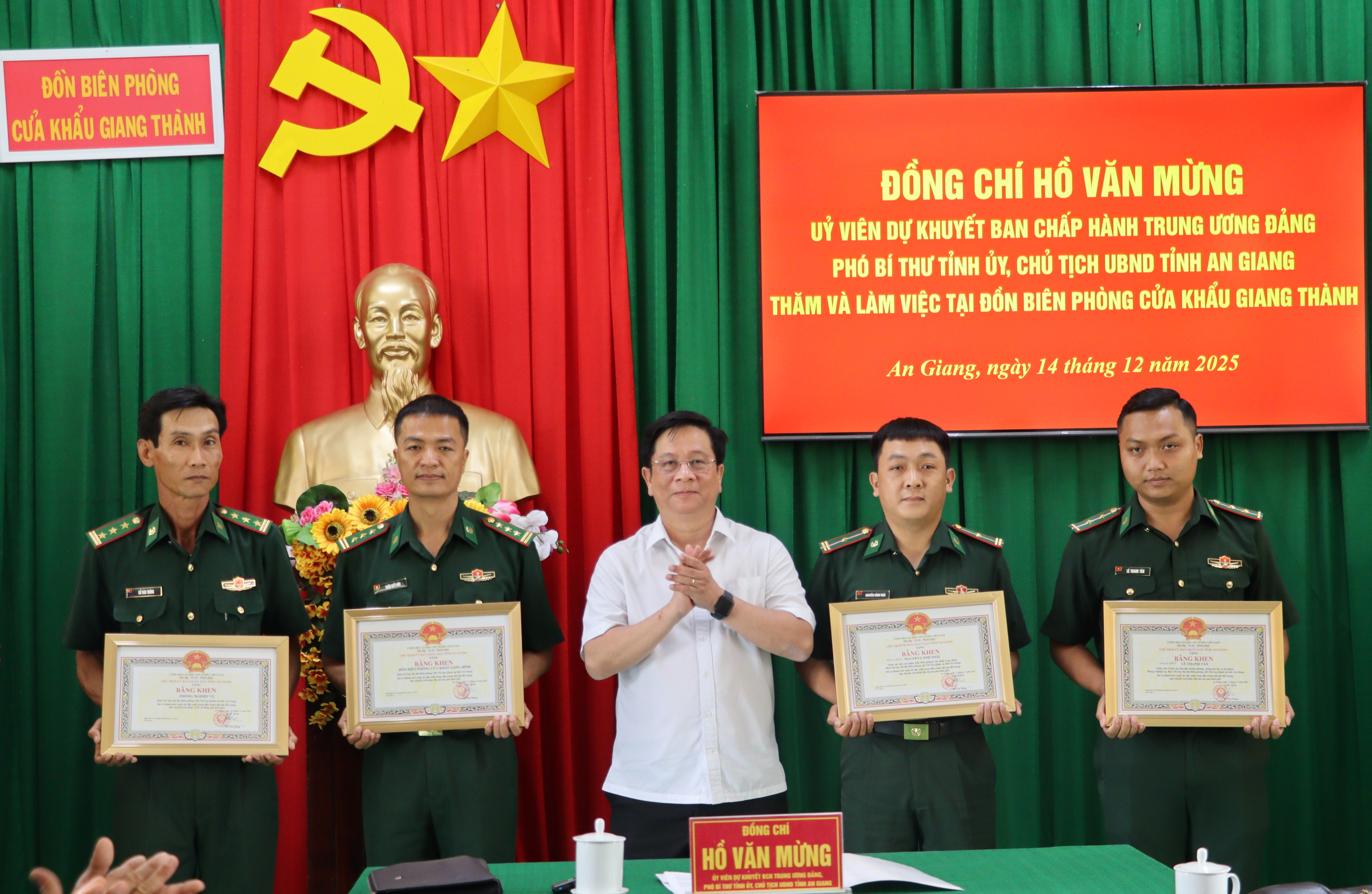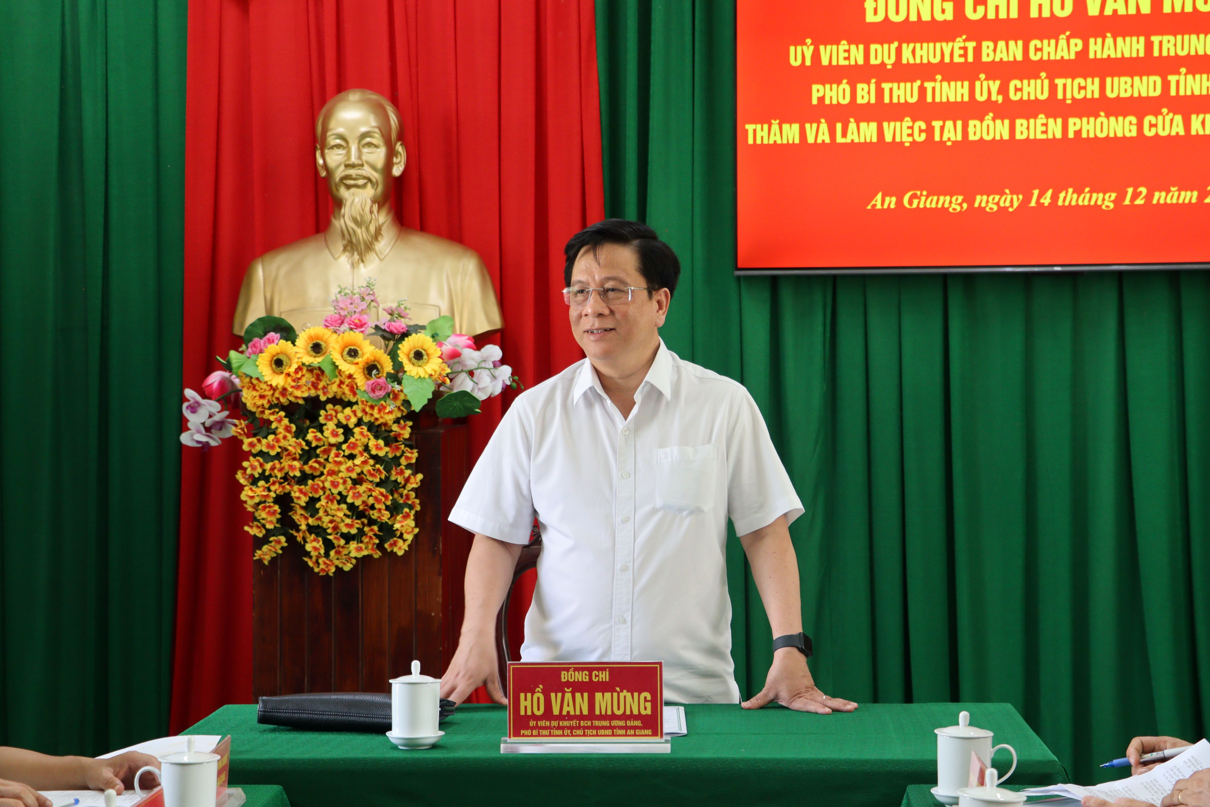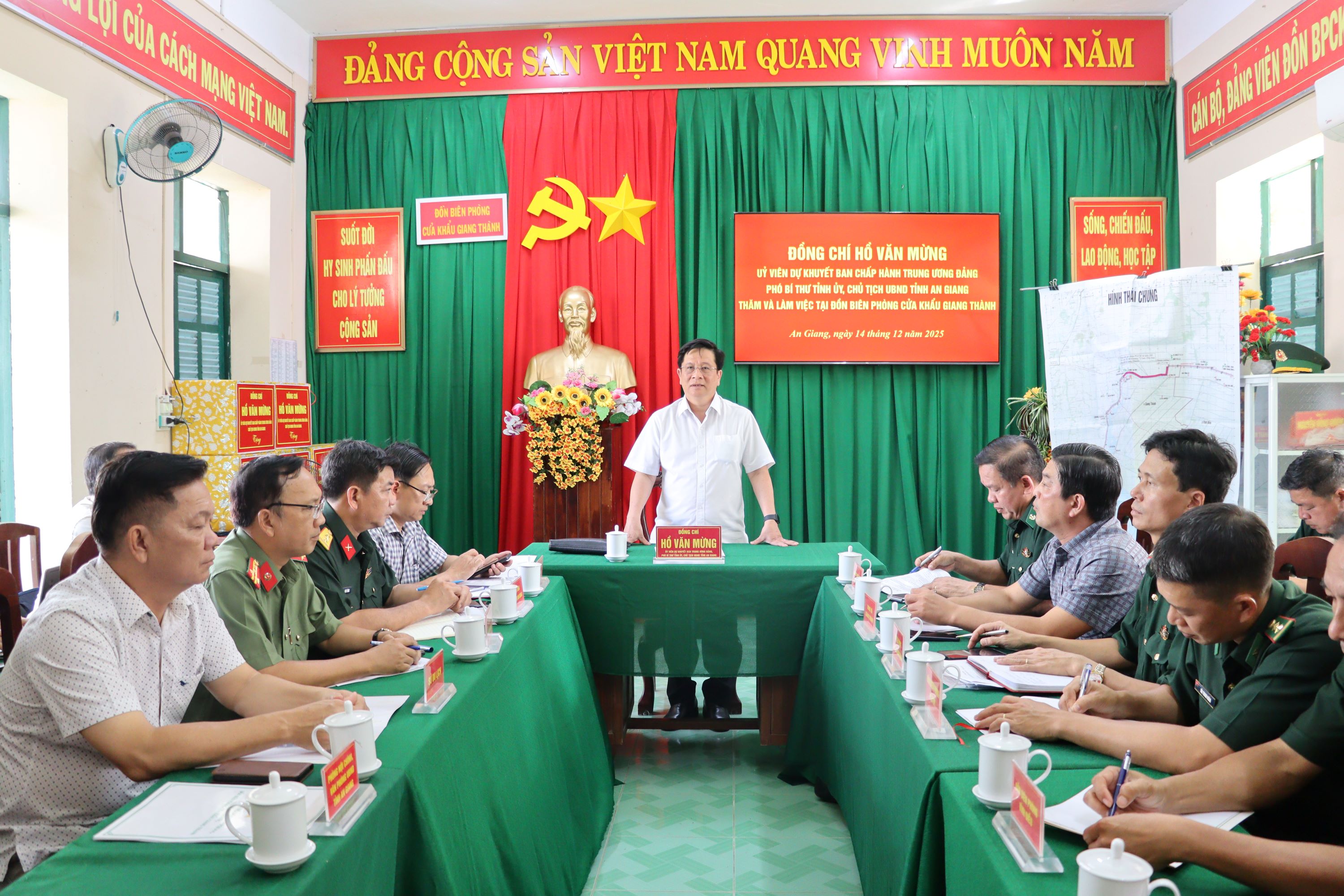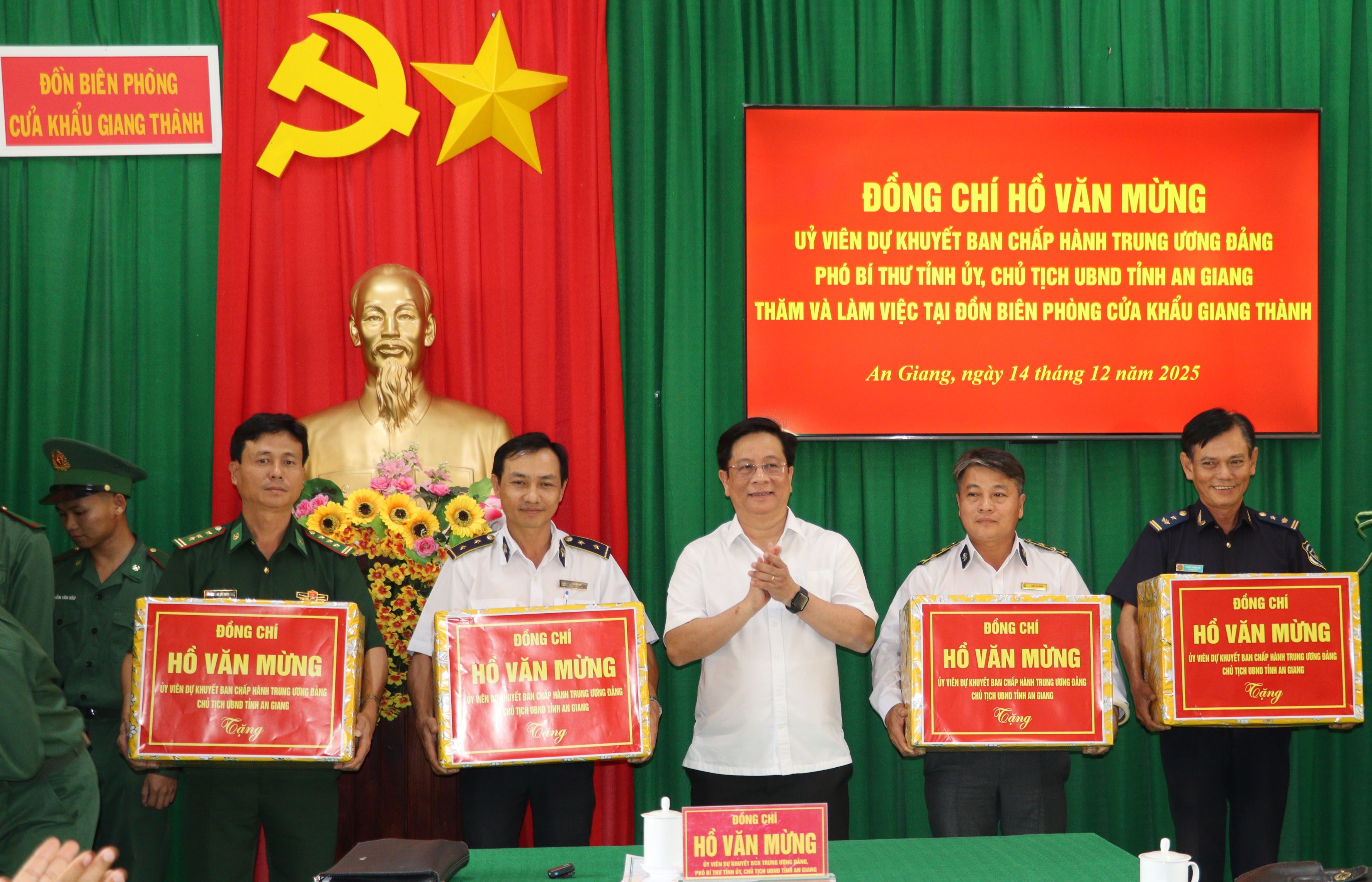 Ngày 14/12, Ủy viên dự khuyết Ban Chấp hành Trung ương Đảng, Phó Bí thư Tỉnh ủy, Chủ tịch UBND tỉnh An Giang Hồ Văn Mừng cùng đoàn công tác đến thăm, làm việc tại cửa khẩu chính Giang Thành và Đồn Biên phòng Cửa khẩu Giang Thành.