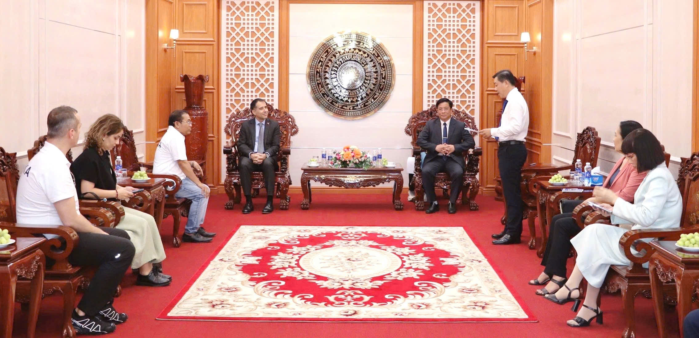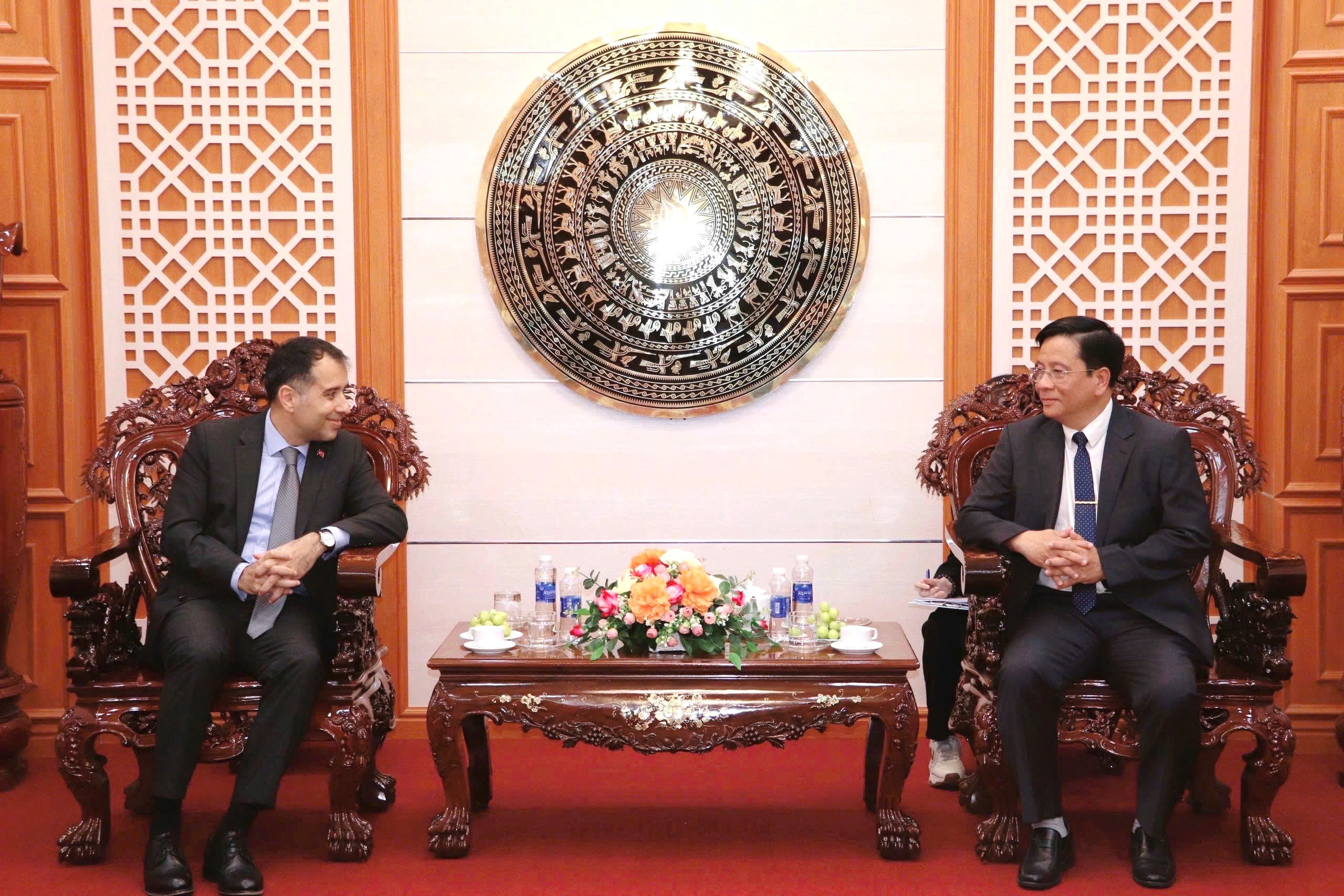 Tại buổi chào xã giao, Chủ tịch UBND tỉnh Hồ Văn Mừng vui mừng được đón tiếp Ngài Đại sứ và hy vọng thông qua chuyến thăm này cùng với sự hỗ trợ của Ngài Đại sứ Korhan Kemik, tỉnh An Giang sẽ có thêm nhiều cơ hội kết nối, hợp tác với các đối tác và doanh nghiệp đến từ Thổ Nhĩ Kỳ trong thời gian tới.