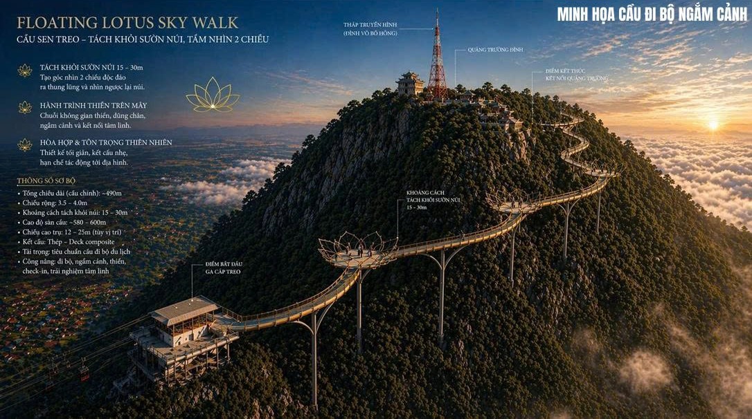 Đơn vị tư vấn đề xuất phân bổ chức năng sử dụng đất thành các khu: Trung tâm thu hút chính trên đỉnh đồi; làng (khu) văn hóa và sự kiện; khu du lịch nông nghiệp và ruộng bậc thang trồng thảo dược; khu chăm sóc sức khỏe và nghỉ dưỡng; khu nghỉ dưỡng sinh thái/cắm trại sang trọng; khu mua sắm, ăn uống và chợ đêm; trục giao thông chính (đường xe, xe điện và lối đi bộ) …