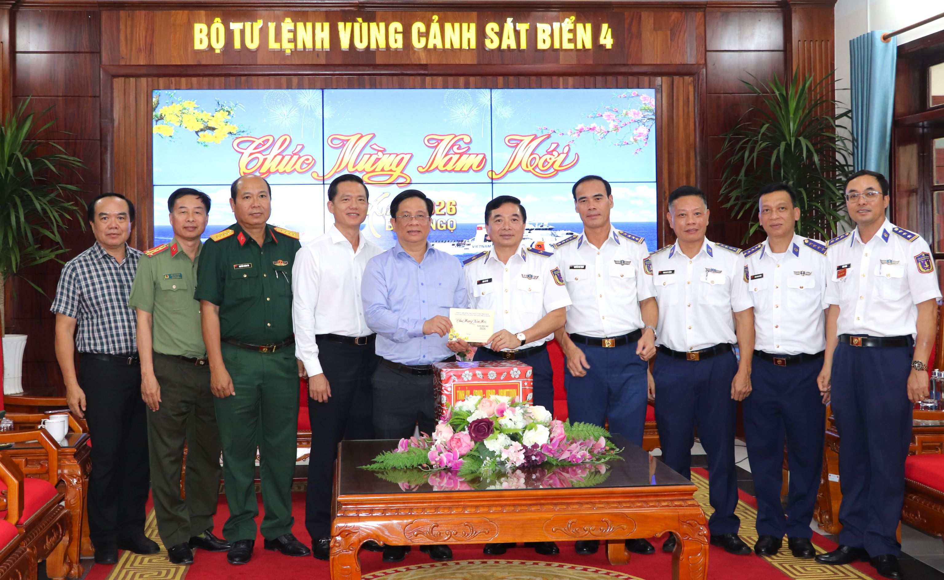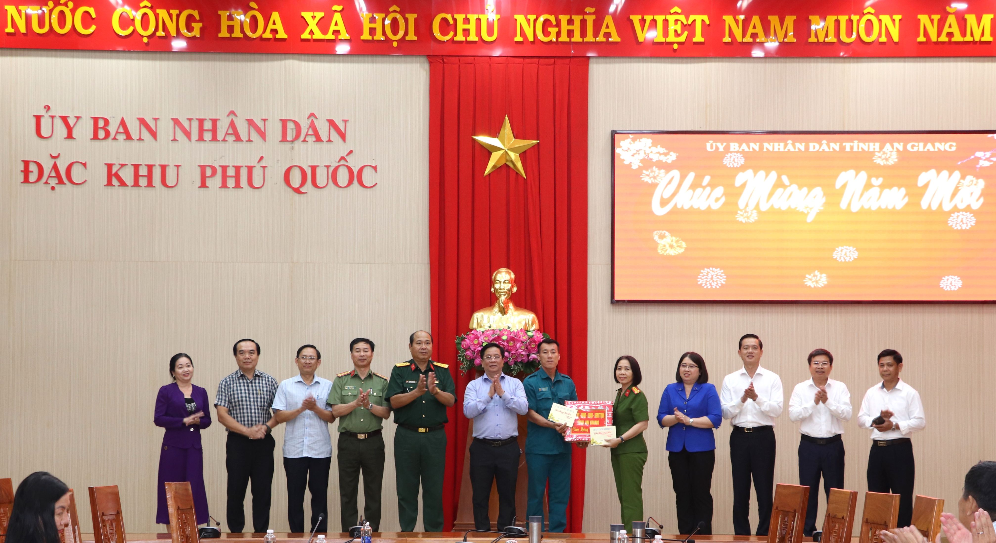 (Cổng TTĐT tỉnh AG) - Chiều 28/01, Ủy viên Ban Chấp hành Trung ương Đảng, Phó Bí thư Tỉnh ủy, Chủ tịch UBND tỉnh Hồ Văn Mừng dẫn đầu đoàn công tác đến chúc Tết Đảng ủy - HĐND - UBND- UBMTTQ - Công an - Ban Chỉ huy Quân sự đặc khu Phú Quốc và cán bộ và chiến sĩ Bộ Tư lệnh Vùng Cảnh sát biển 4.