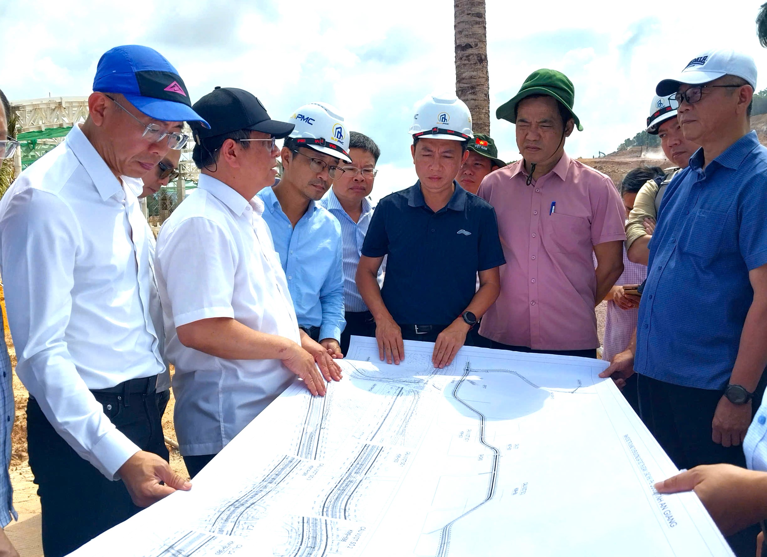 Chủ tịch UBND tỉnh Hồ Văn Mừng cùng đoàn công tác tiến hành kiểm tra thực địa tiến độ một số công trình, dự án trọng điểm, như: Dự án đầu tư mở rộng Cảng hàng không quốc tế Phú Quốc; Dự án đường tỉnh ĐT.975 (đoạn từ ĐT.973 – Cảng hàng không quốc tế Phú Quốc – ĐT.975 – ĐT.973); Dự án Tuyến tàu điện đô thị đoạn 1; Dự án Trung tâm tổ chức Hội nghị APEC và các công trình chức năng; các dự án hồ nước, khu tái định cư, khu đô thị hỗn hợp;…