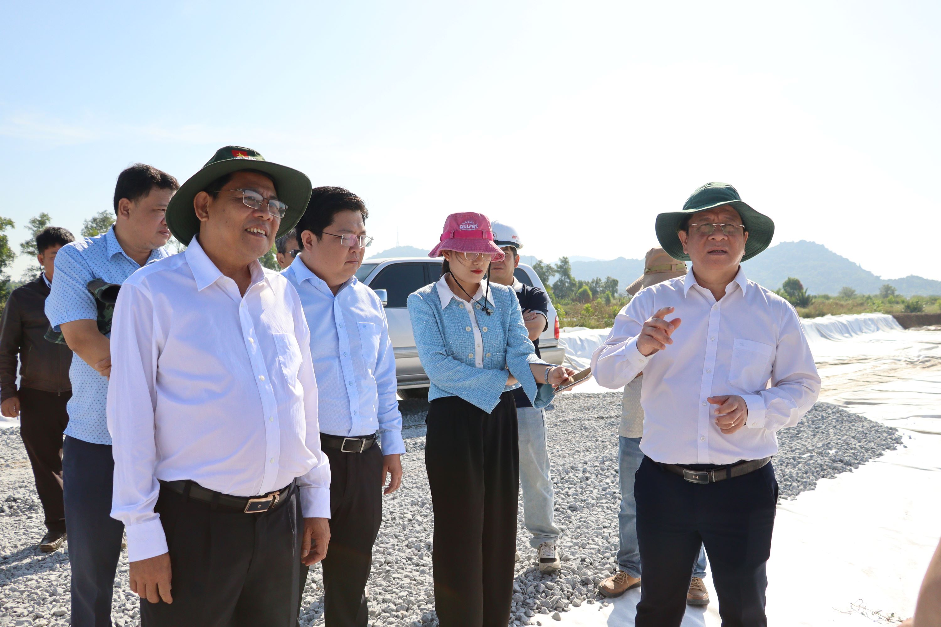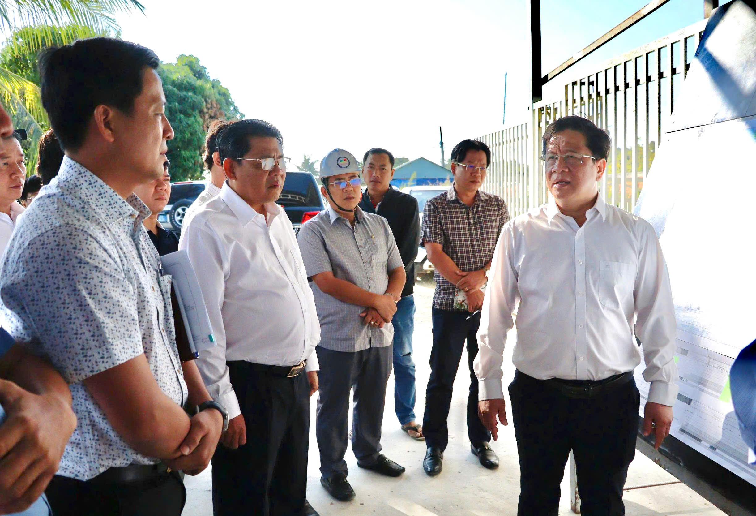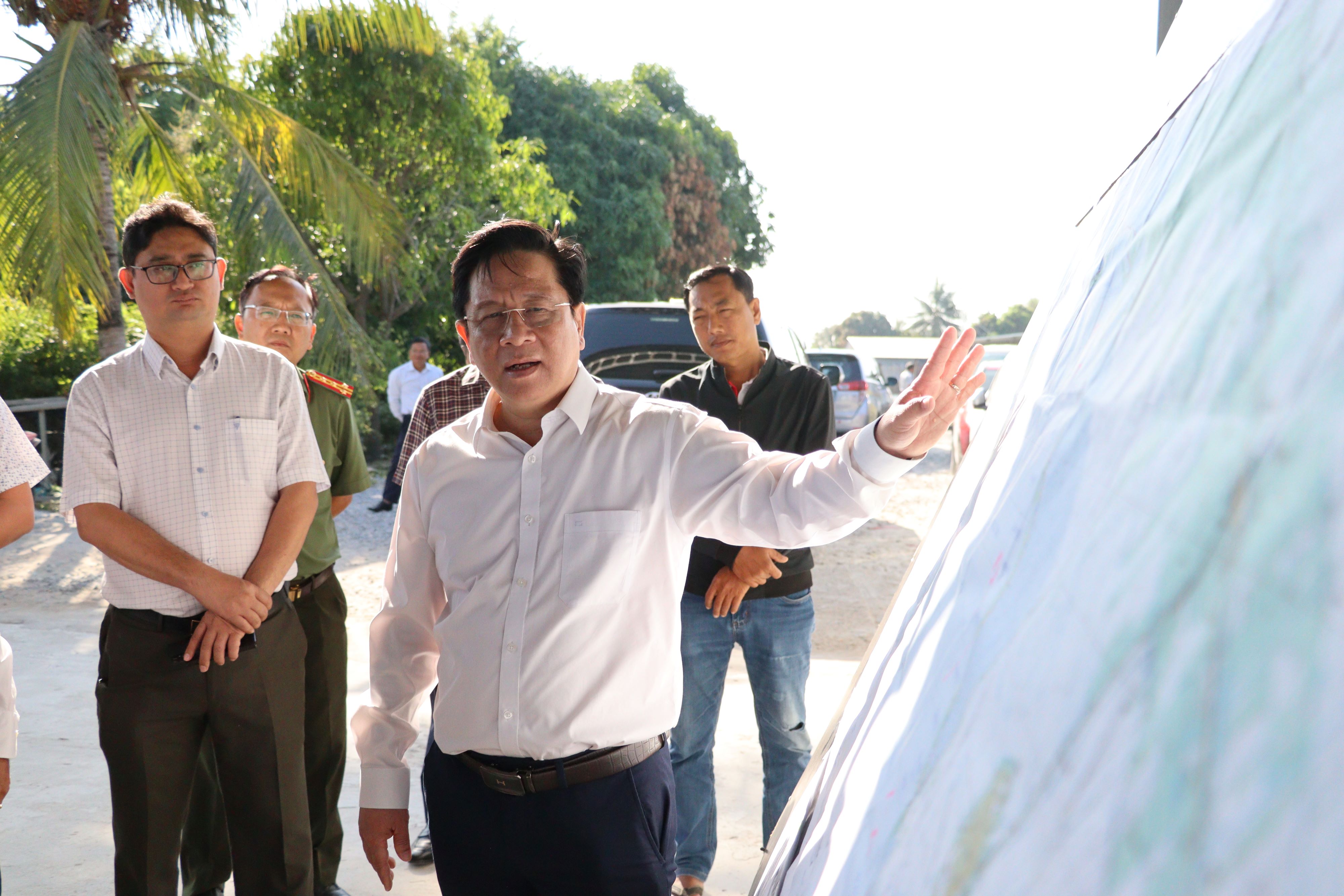 Tại buổi kiểm tra thực tế công trường Dự án đường ven biển Hòn Đất - Kiên Lương, Chủ tịch UBND tỉnh Hồ Văn Mừng nghe chủ đầu tư báo cáo tình hình thực hiện, đại diện lãnh đạo các nhà thầu thi công, tư vấn thiết kế, tư vấn giám sát báo cáo những thuận lợi, khó khăn, ý kiến của lãnh đạo các sở, ngành.