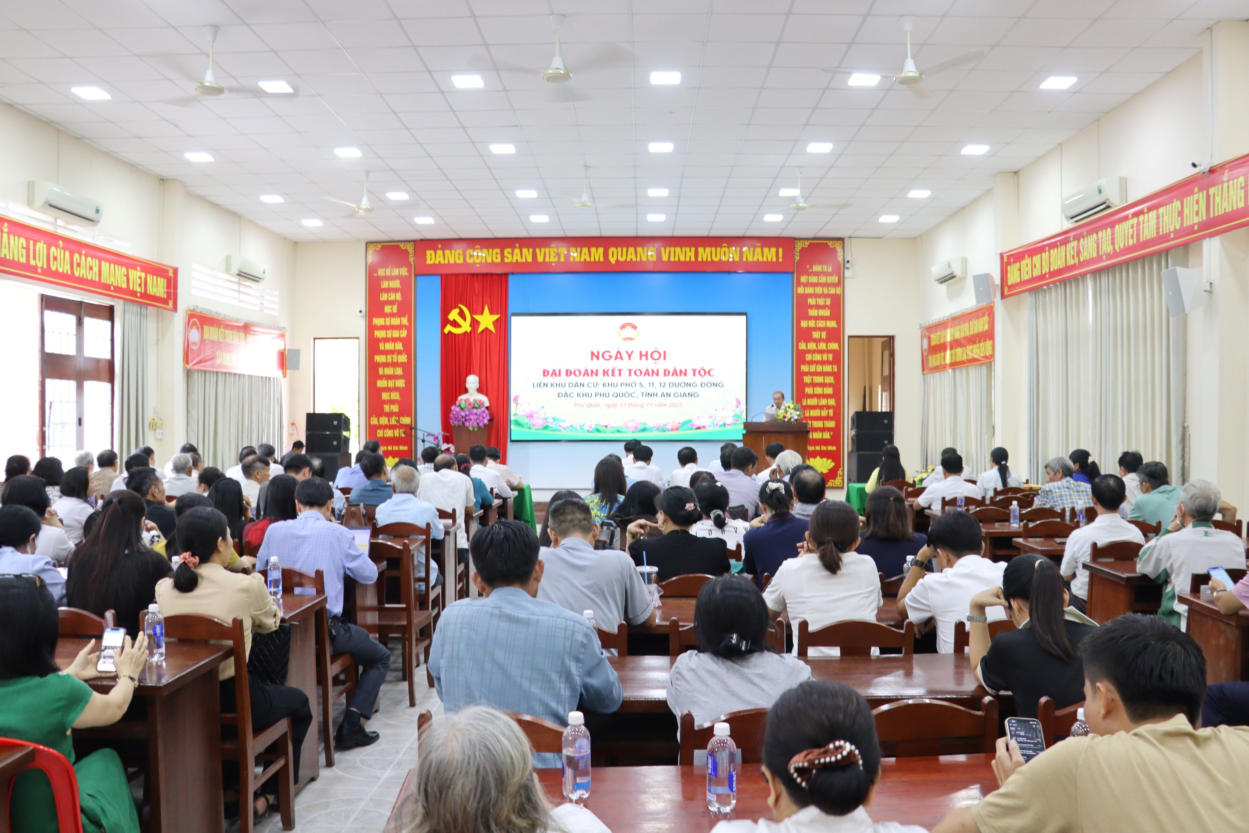 Phát biểu tại ngày hội, Chủ tịch UBND tỉnh An Giang Hồ Văn Mừng ghi nhận, biểu dương và chúc mừng những thành tích tiến bộ mà chi bộ, ban công tác mặt trận, đoàn thể, nhân dân khu phố 5, 11, 12 Dương Đông đã đạt được trong năm 2025.