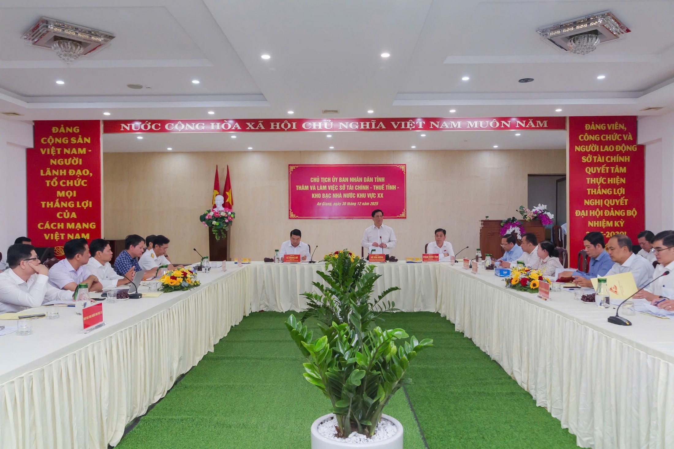 Phát biểu tại buổi làm việc, Chủ tịch UBND tỉnh Hồ Văn Mừng ghi nhận và đánh giá cao nỗ lực của các đơn vị trong việc giữ vững kỷ luật, kỷ cương tài chính, góp phần ổn định ngân sách và phục vụ phát triển kinh tế – xã hội của tỉnh. Đồng thời nhấn mạnh, theo kế hoạch năm 2026 dự kiến tổng thu ngân sách nhà nước trên địa bàn phấn đấu đạt trên 32.000 tỷ đồng, để đạt mục tiêu này, Chủ tịch UBND tỉnh đề nghị Sở Tài Chính chủ trì phối hợp Thuế tỉnh và Kho bạc Nhà nước khu vực XX tính toán cụ thể và đưa ra giải pháp, kế hoạch thu chi phấn đấu đảm bảo mục tiêu đề ra theo tinh thần 6 rõ, trình UBND tỉnh trước ngày 15/01/2026. Đồng thời, tiếp tục nâng cao chất lượng tham mưu của tỉnh, tăng cường phối hợp, đẩy mạnh cải cách hành chính, chuyển đổi số, quản lý chặt chẽ nguồn thu, sử dụng hiệu quả ngân sách; tháo gỡ khó khăn tạo môi trường thuận lợi cho người dân và doanh nghiệp liên quan các chính sách về thuế...