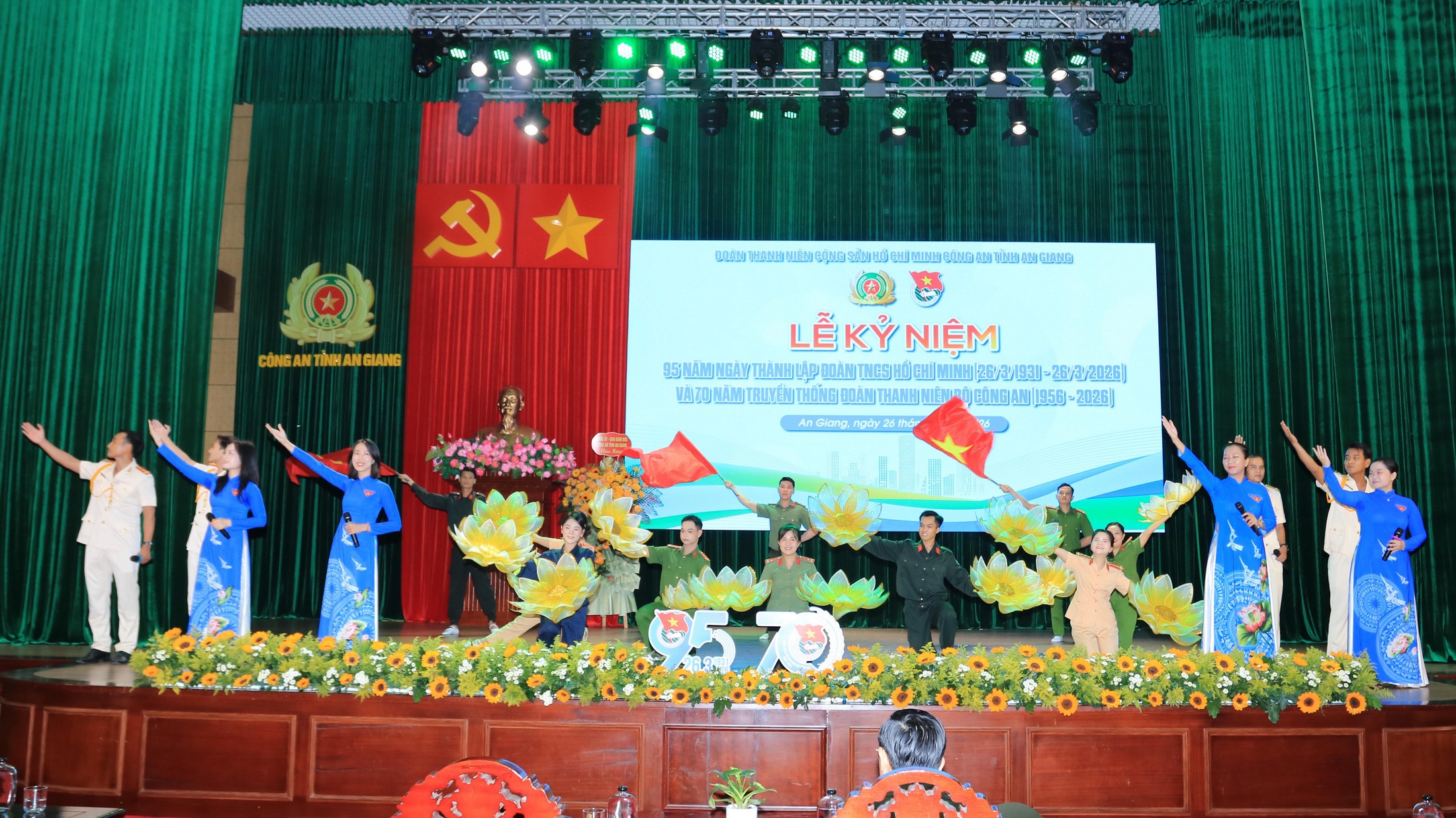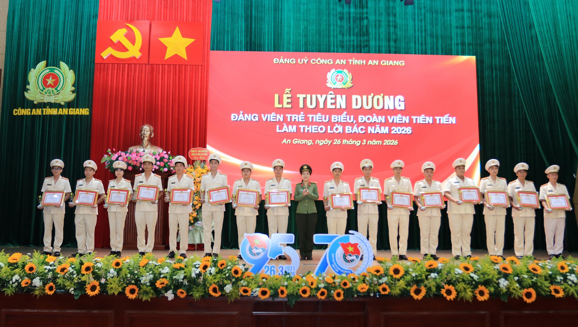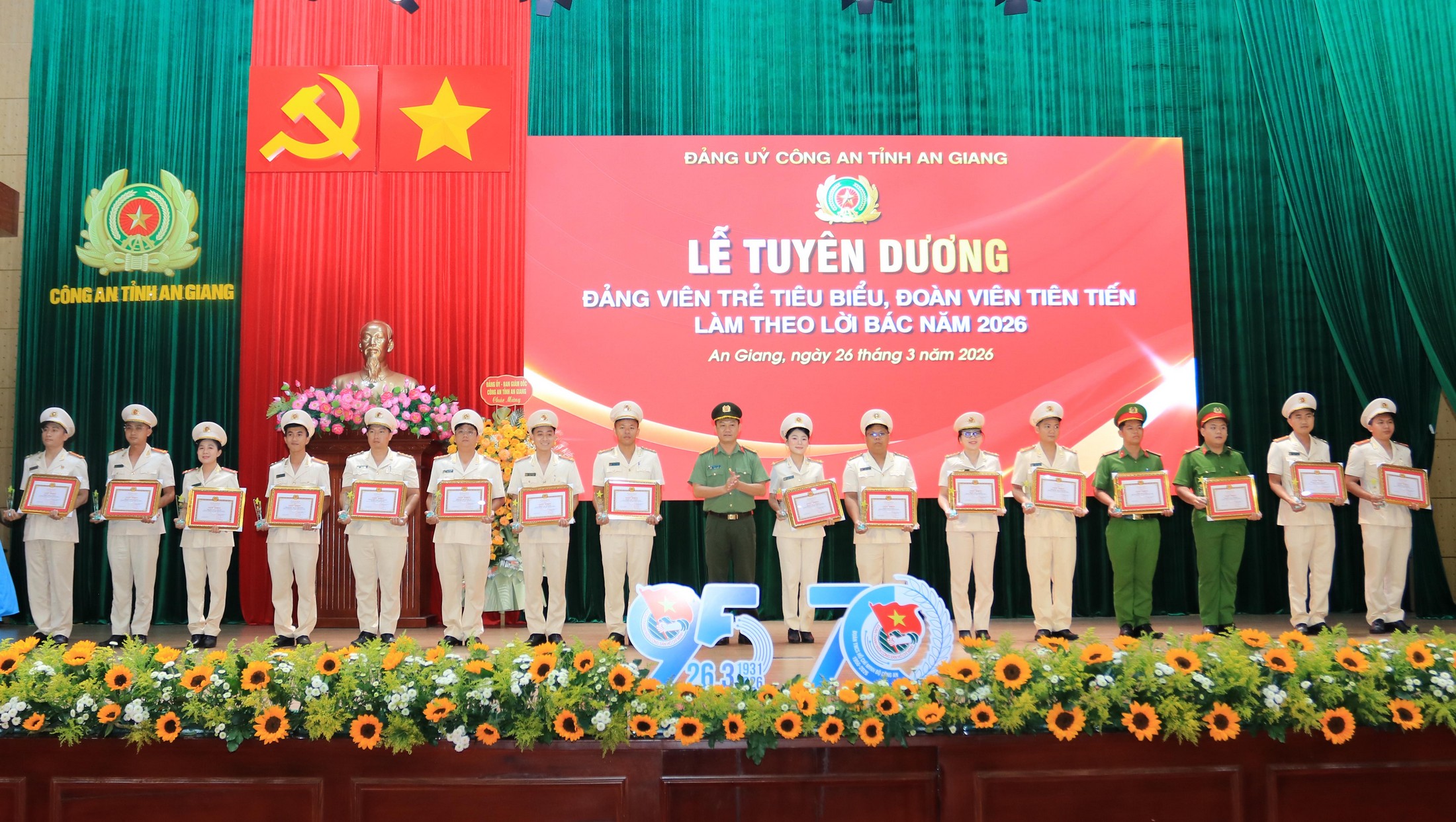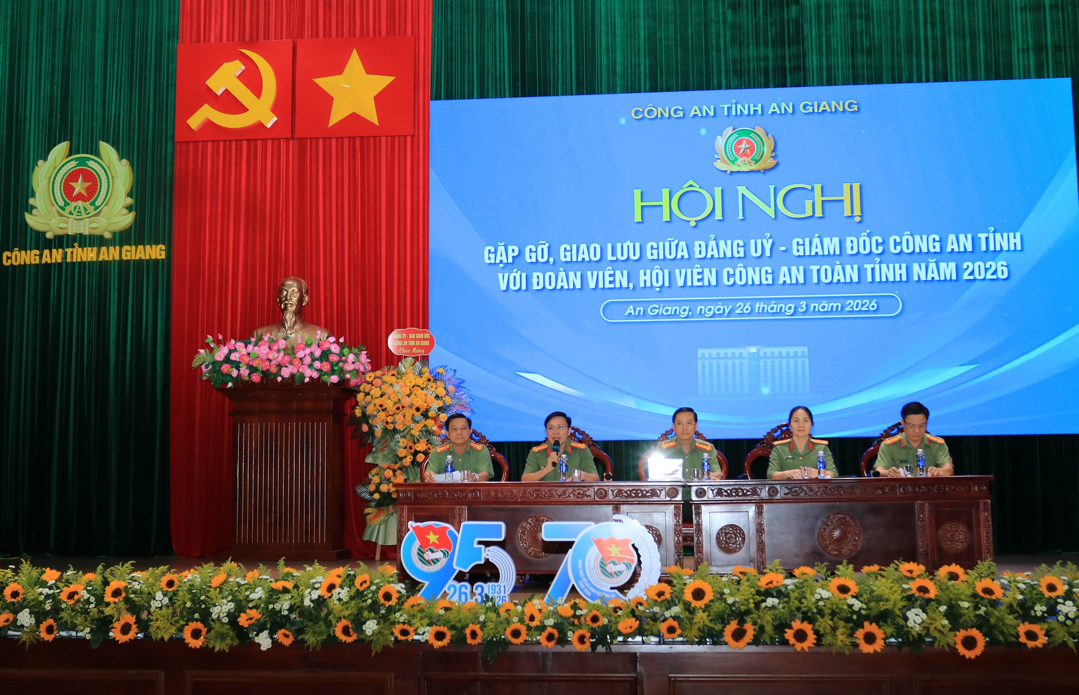(Cổng TTĐT tỉnh AG)- Chiều 26/3, Đoàn thanh niên Công an tỉnh An Giang tổ chức Kỷ niệm 95 năm Ngày thành lập Đoàn TNCS Hồ Chí Minh (26/3/1931 - 26/3/2026), 70 năm truyền thống Đoàn TNCS Hồ Chí Minh Bộ Công an (1956 - 2026); tuyên dương Đảng viên trẻ tiêu biểu, đoàn viên tiên tiến làm theo lời Bác và giao lưu, đối thoại giữa Đảng ủy - Giám đốc Công an tỉnh với đoàn viên, hội viên năm 2026. Đại tá Lê Phú Thạnh Tỉnh ủy viên, Phó Giám đốc Công an tỉnh tham dự và phát biểu chỉ đạo.