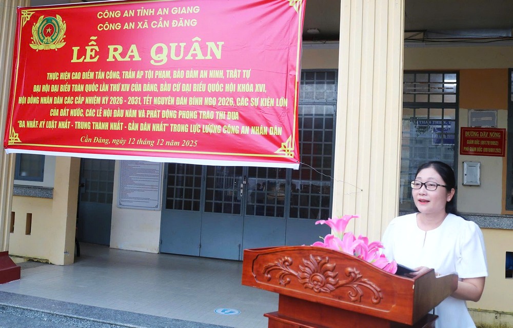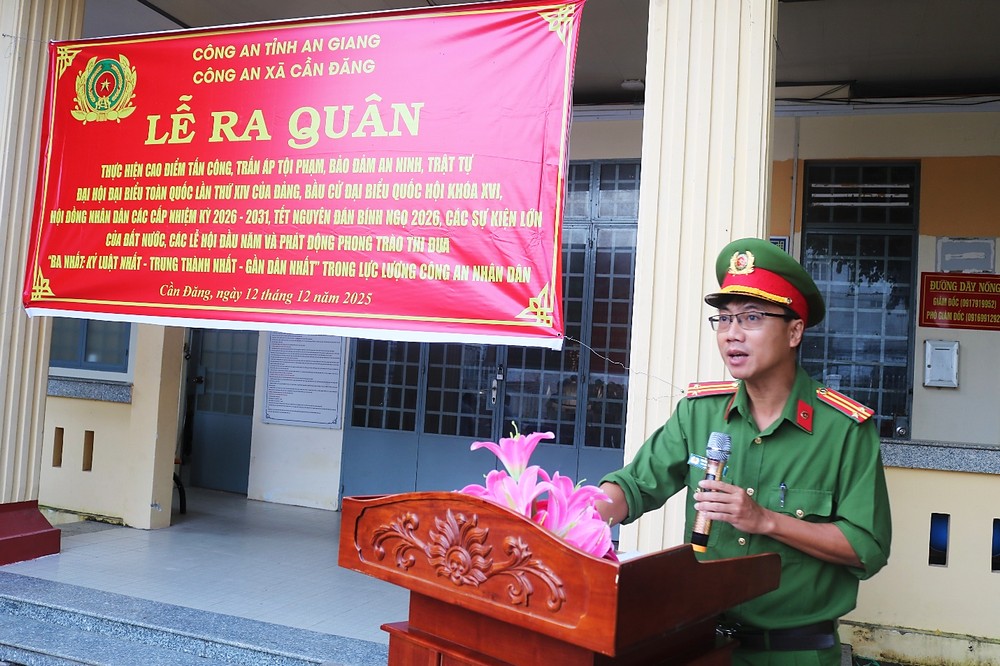 (Cổng TTĐT tỉnh AG)- Sáng ngày 12/12, Công an xã Cần Đăng tổ chức lễ ra quân thực hiện cao điểm tấn công trấn áp tội phạm bảo đảm an ninh, trật tự Đại hội đại biểu toàn quốc lần thứ XIV của Đảng, bầu cử Quốc hội khóa XVI, bầu cử HĐND các cấp nhiệm kỳ 2026-2031 và Tết Nguyên đán Bính Ngọ 2026, các sự kiện lớn của đất nước và các lễ hội đầu năm; đồng thời phát động phong trào thi đua “Ba nhất”.