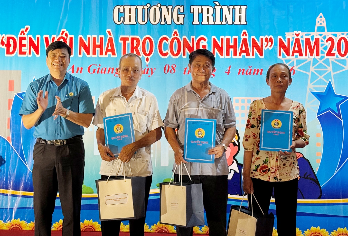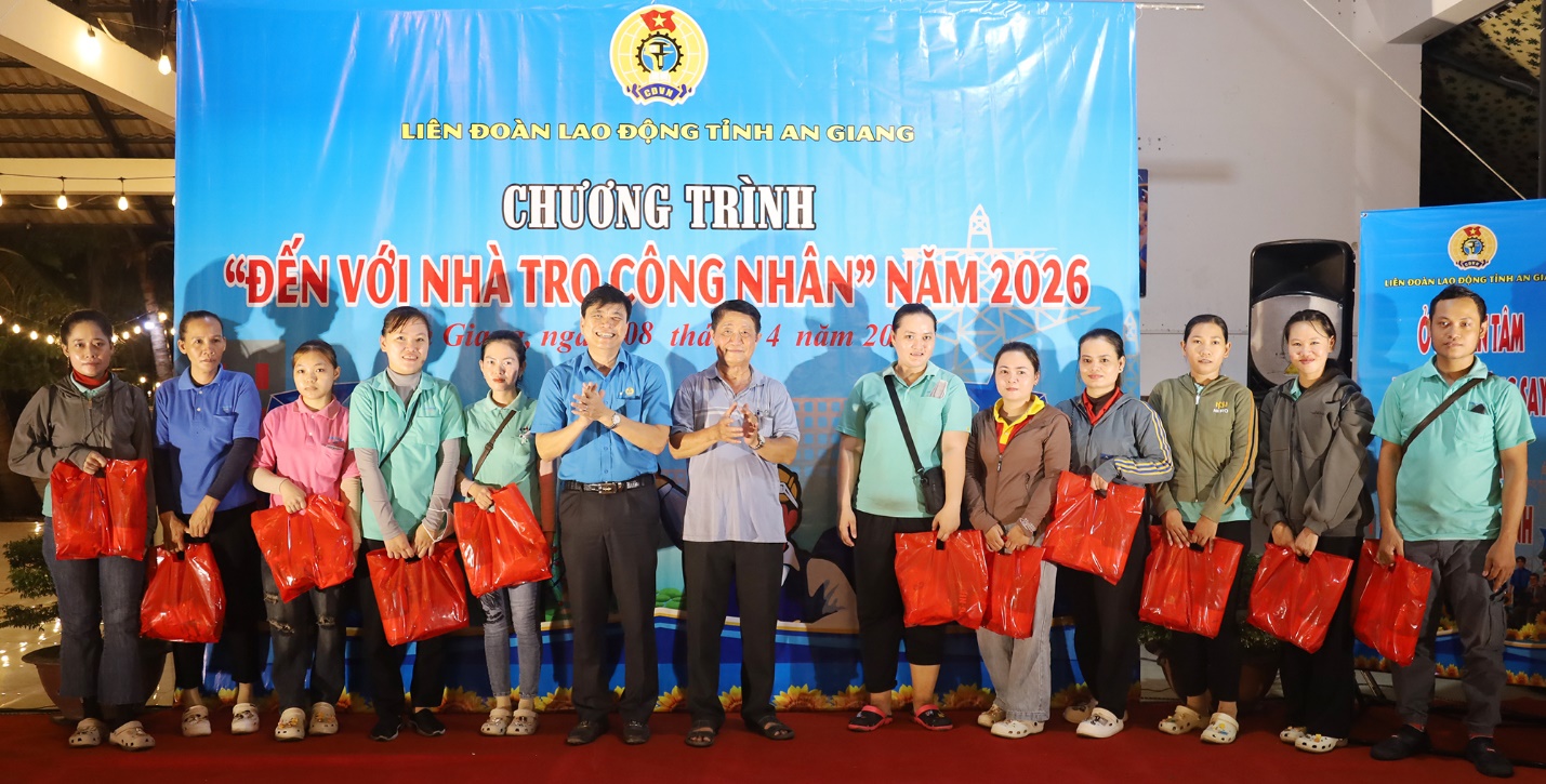 (Cổng TTĐT tỉnh AG)- Tối 08/4, trong khuôn khổ chương trình “Đến với nhà trọ công nhân” năm 2026, Liên đoàn Lao động tỉnh An Giang công bố Quyết định thành lập mô hình tổ tự quản nhà trọ công nhân Trường Thành, ấp Hòa Lộc, xã Thạnh Lộc, tỉnh An Giang.