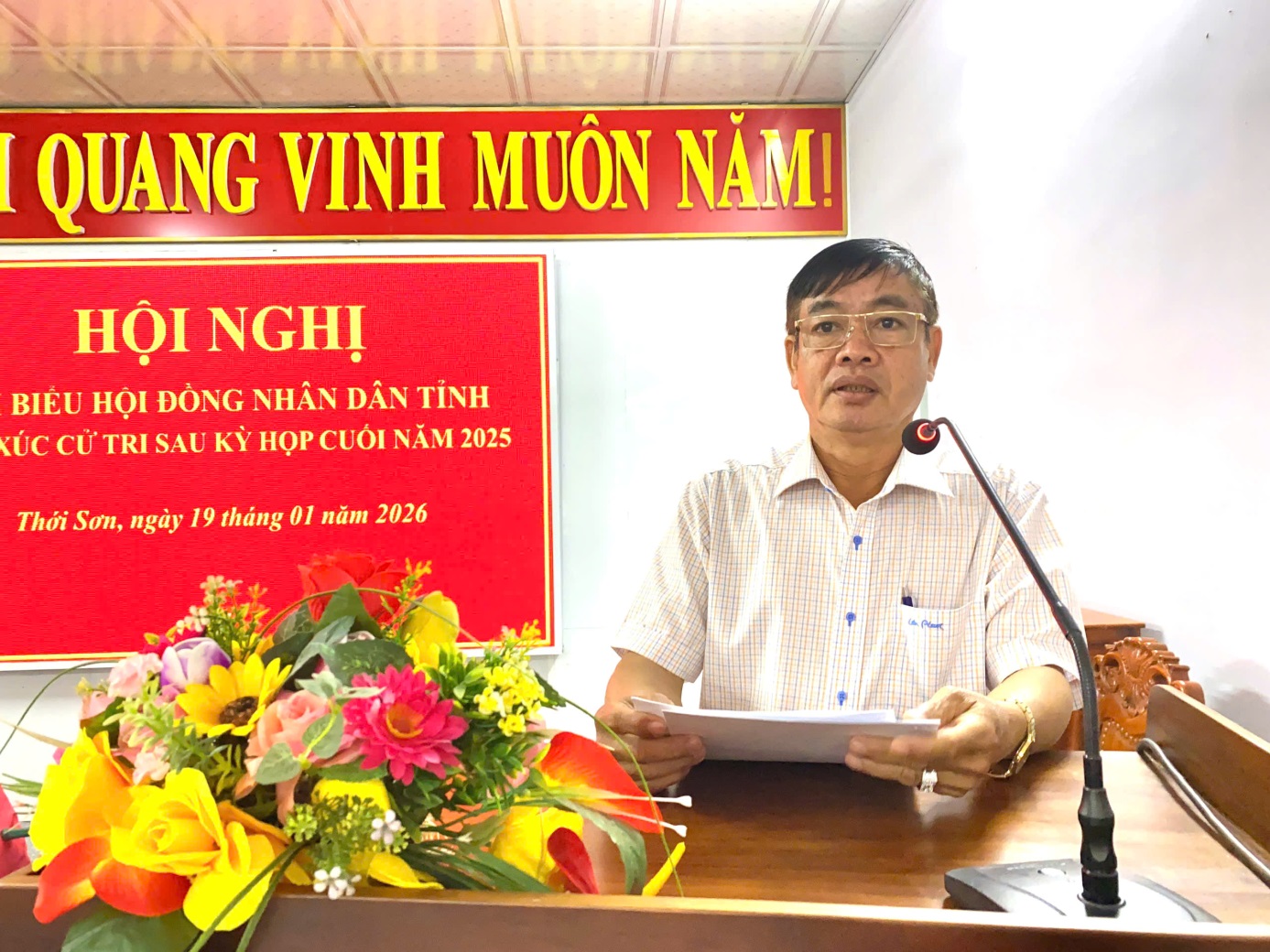 (Cổng TTĐT tỉnh AG)- Sáng 19/01, tại phường Thới Sơn, Đại biểu HĐND tỉnh An Giang do ông Trương Hữu Tiền - Giám đốc Ban Quản lý Khu du lịch Quốc gia Núi Sam chủ trì, đã có buổi tiếp xúc cử tri sau kỳ họp cuối năm 2025.