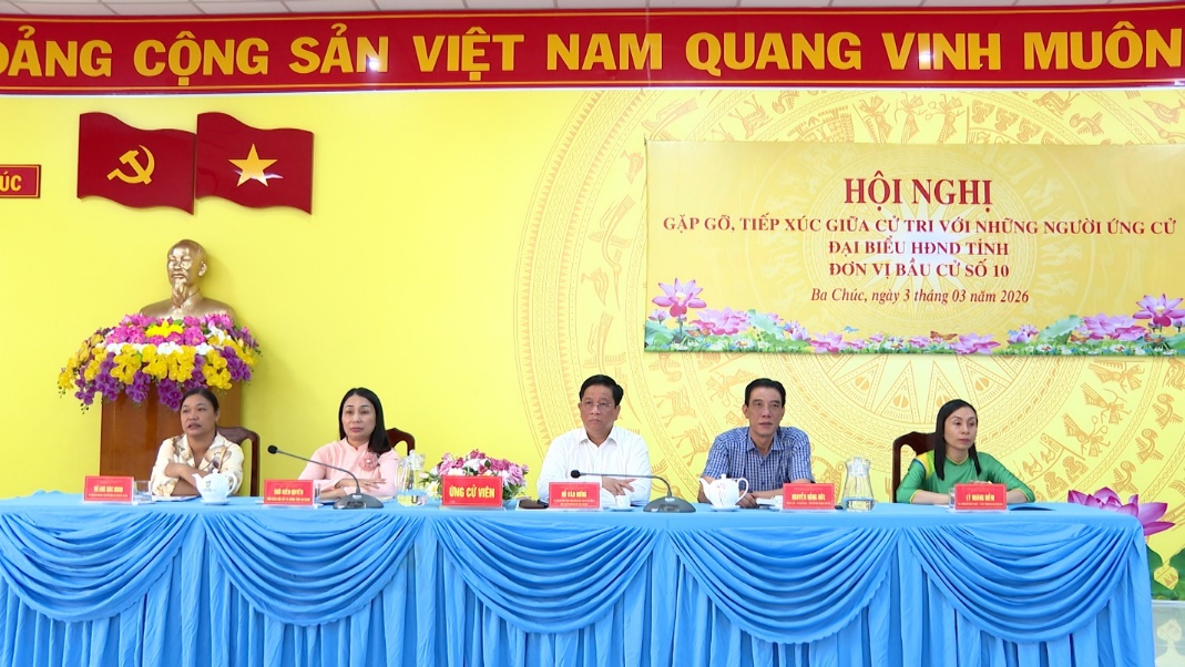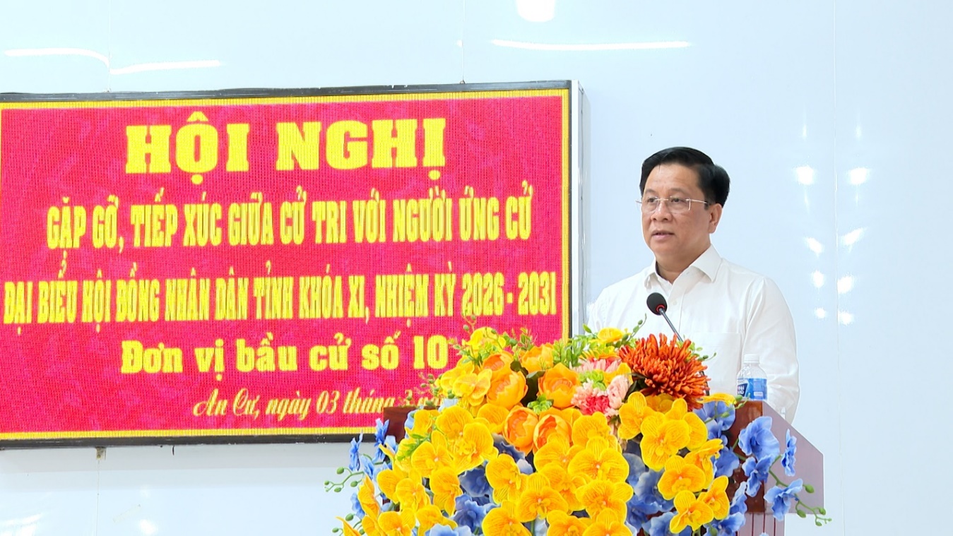 (Cổng TTĐT tỉnh AG)- Sáng 03/3, các ứng cử viên đại biểu HĐND tỉnh An Giang khóa XI, nhiệm kỳ 2026-2031, đơn vị bầu cử số 10, đã có buổi tiếp xúc, gặp gỡ cử tri các xã: An Cư, Ba Chúc, Ô Lâm và Vĩnh Gia.