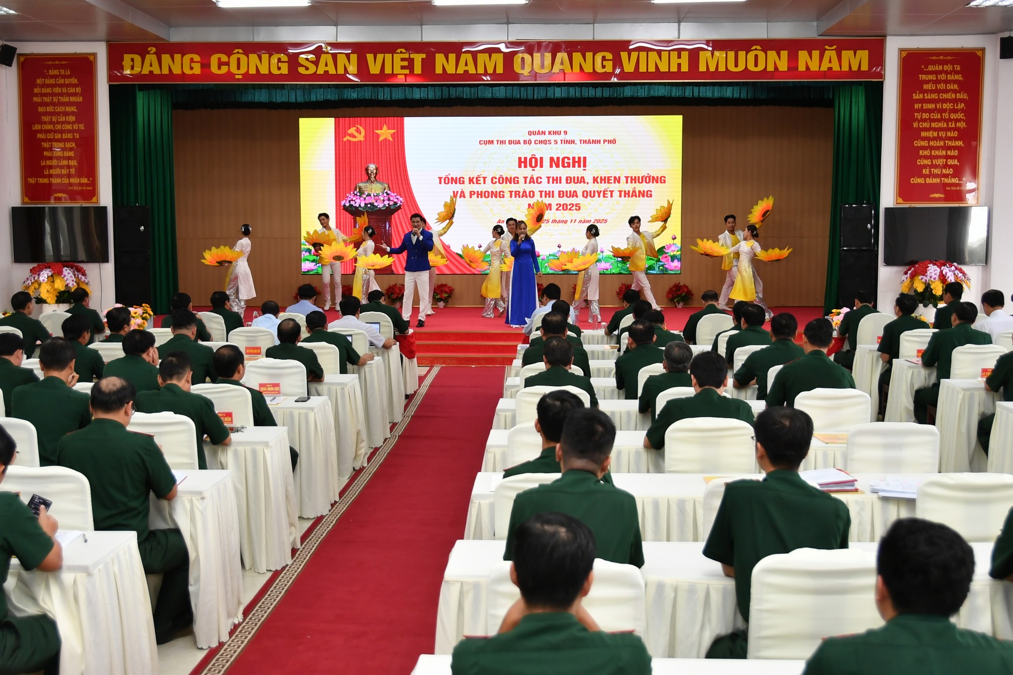 (Cổng TTĐT tỉnh AG)- Chiều 25/11, tại phường Rạch Giá, tỉnh An Giang, Cụm thi đua Bộ Chỉ huy Quân sự 5 tỉnh, thành phố gồm: Cần Thơ, An Giang, Vĩnh Long, Đồng Tháp, Cà Mau (Quân khu 9) tổ chức Hội nghị tổng kết công tác thi đua, khen thưởng và phong trào thi đua quyết thắng năm 2025.