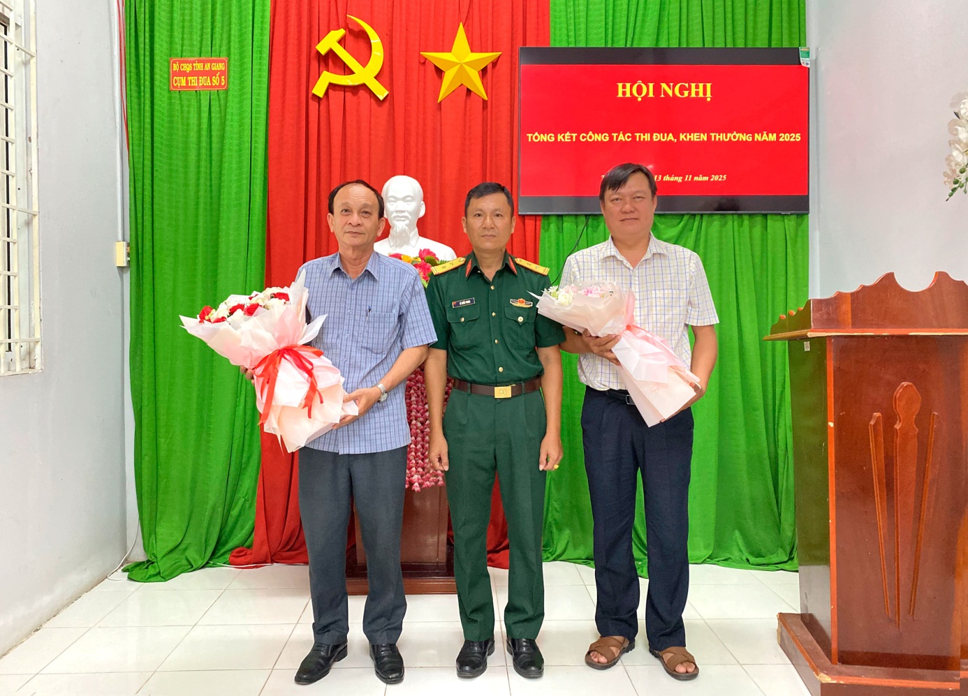 (Cổng TTĐT tỉnh AG)- Ngày 13/11, tại Ban Chỉ huy Quân sự (CHQS) phường Thới Sơn, tỉnh An Giang, Cụm thi đua số 5, Bộ CHQS tỉnh An Giang tổ chức Hội nghị tổng kết công tác Thi đua, khen thưởng và phong trào “Thi đua Quyết thắng” năm 2025, bàn giao nhiệm vụ Cụm trưởng Cụm thi đua năm 2026. Đến dự có Phó Chỉ huy trưởng Ban Chỉ huy Phòng thủ khu vực 2 – Long Xuyên Trung tá Lê Quốc Phong.