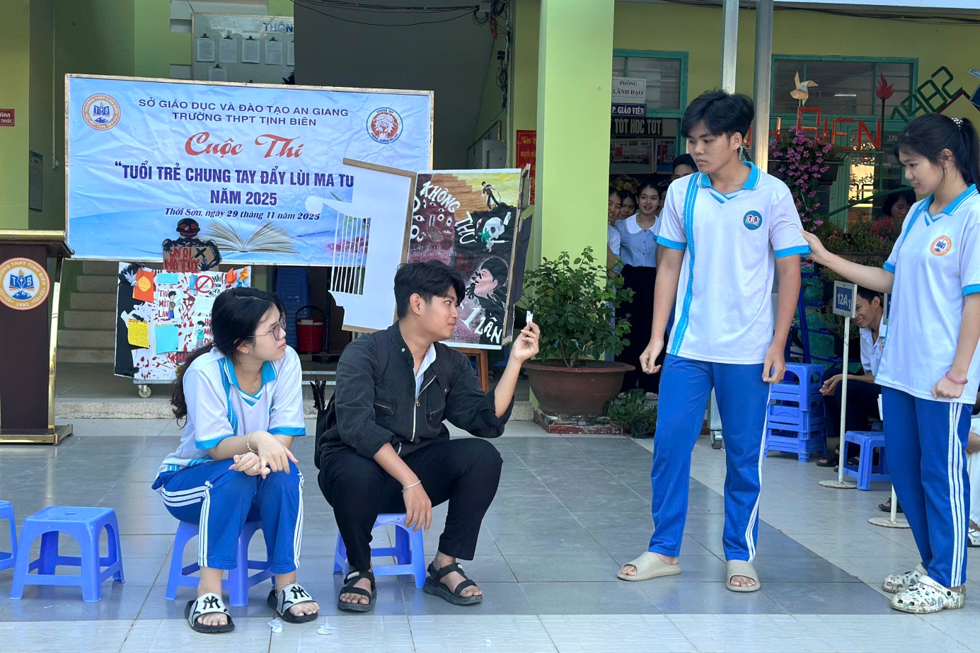 (Cổng TTĐT tỉnh AG)- Ngày 29/11, trường THPT Tịnh Biên (phường Thới Sơn, tỉnh An Giang) tổ chức Cuộc thi “Tuổi trẻ chung tay đẩy lùi ma túy” năm 2025 với sự tham gia của 17 đội là học sinh các khối lớp của trường.