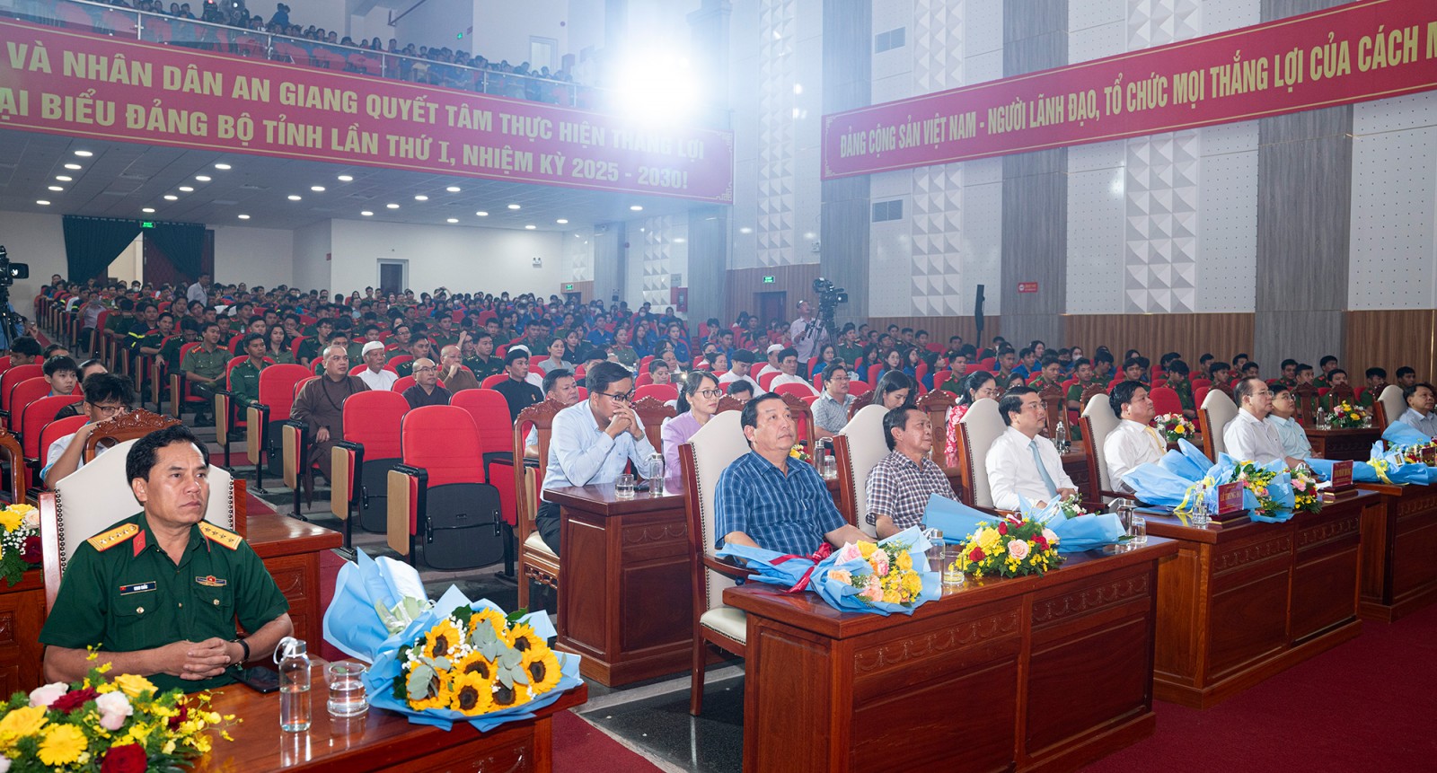 (Cổng TTĐT tỉnh AG)-Tối 03/10, tại sân khấu Trung tâm Văn hóa - Nghệ thuật tỉnh diễn ra Chương trình nghệ thuật chào mừng Đại hội đại biểu Đảng bộ tỉnh An Giang lần thứ I, nhiệm kỳ 2025 - 2030 thành công tốt đẹp.