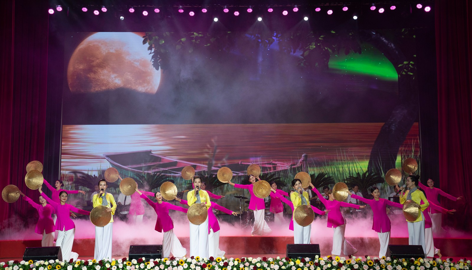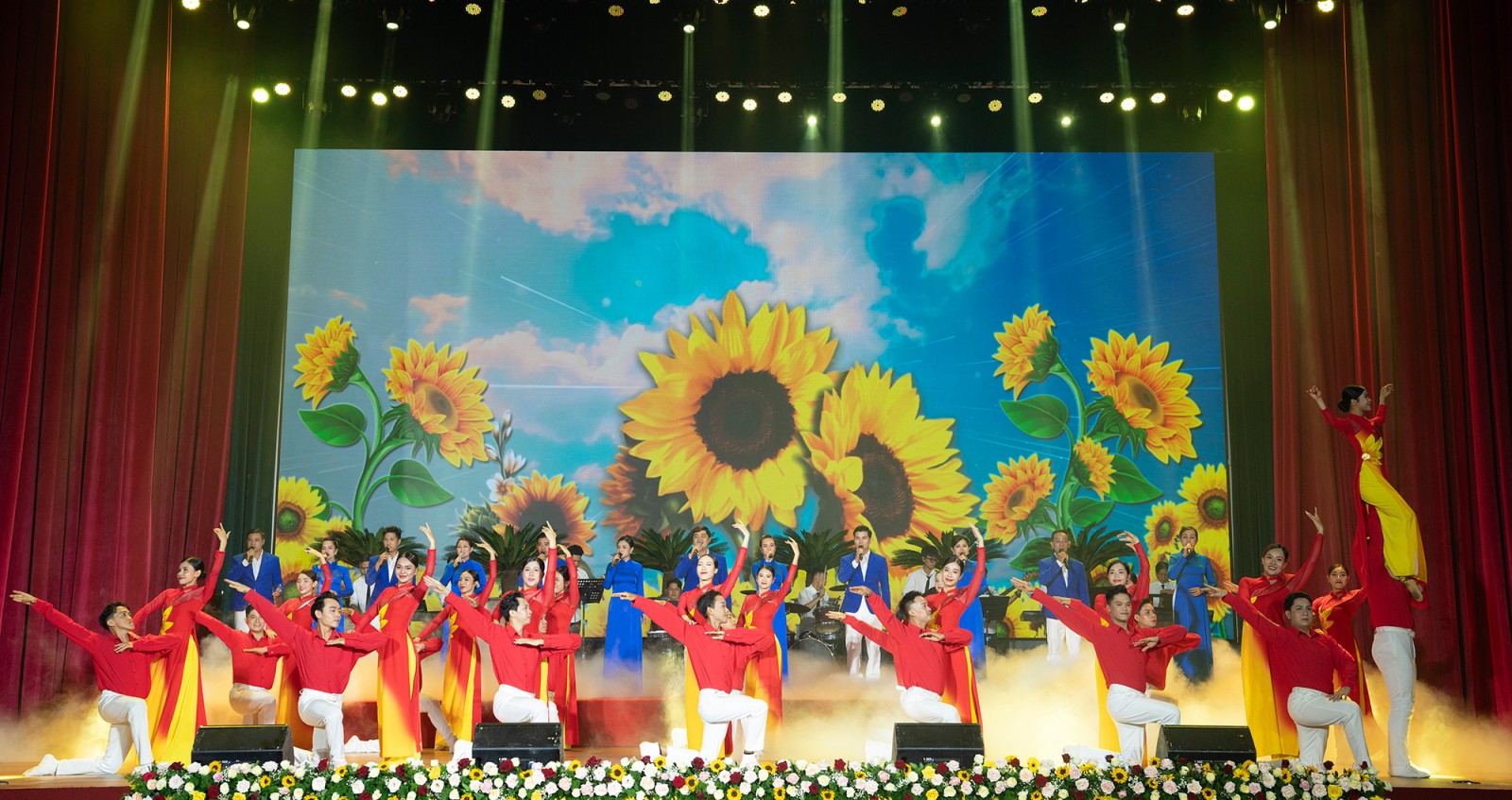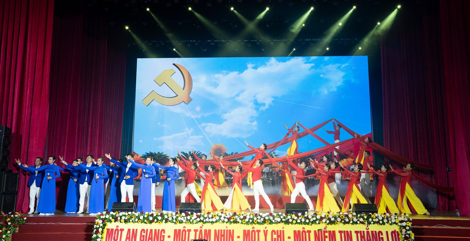 Với chủ đề “Vững bước dưới cờ Đảng”, chương trình nghệ thuật được dàn dựng công phu, có giá trị nghệ thuật cao, gồm các tiết mục ca múa nhạc: Tự hào Đảng quang vinh, Mùa xuân đầu tiên, Những cô gái đồng bằng sông Cửu Long; Bác Hồ một tình yêu bao la, Tuổi xuân dâng Đảng, Đất nước tình yêu, Lá đỏ, Ru em bằng tiếng sóng, Một trái tim một quê hương, An Giang phát triển phồn vinh…