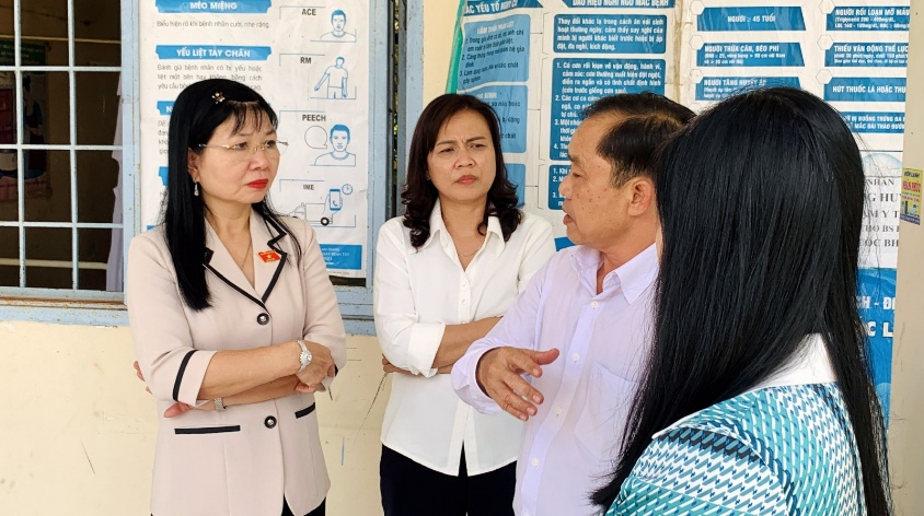 Trước đó, đồng chí Trần Thị Thanh Hương đến khảo sát thực tế tại các trạm y tế trên địa bàn xã Chợ Vàm. Đoàn nghe lãnh đạo các trạm y tế báo cáo tình hình hoạt động, cơ sở vật chất, công tác khám, chữa bệnh và những khó khăn trong thời gian qua...