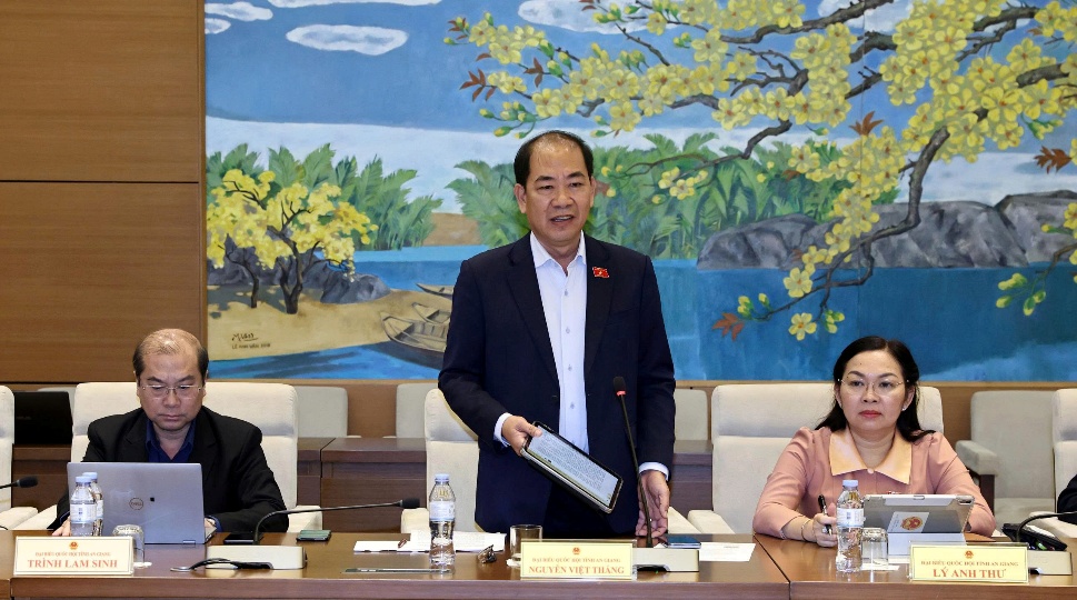 Phó Chủ nhiệm Thường trực Ủy ban Kiểm tra Tỉnh ủy An Giang Nguyễn Việt Thắng (đại biểu Quốc hội tỉnh An Giang) cơ bản thống nhất việc tháo gỡ vướng mắc trong thi hành Luật Đất đai. Dự thảo Nghị quyết đưa ra có phạm vi liên quan rất rộng, nội dung điều chỉnh nhiều. Theo Điều 54 Hiến pháp 2013, Nhà nước thu hồi đất do tổ chức, cá nhân sử dụng trong trường hợp thật sự cần thiết do luật định. Theo đại biểu, nếu mở rộng đối tượng thu hồi đất, nhưng không quy định bằng luật mà quy định bằng nghị quyết là chưa phù hợp.
