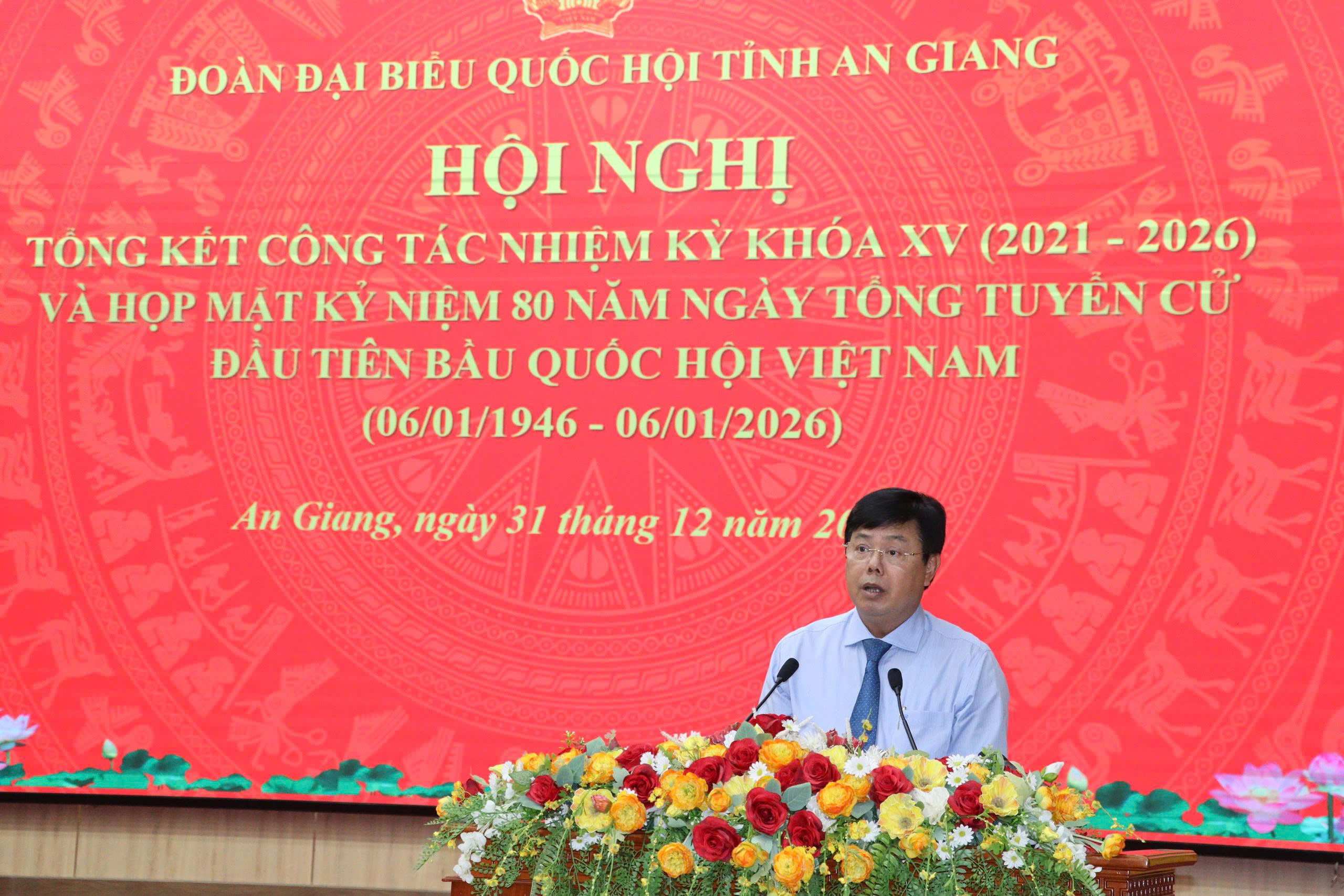 Phát biểu tại hội nghị, Bí thư Tỉnh ủy An Giang Nguyễn Tiến Hải kỳ vọng, cùng với cả hệ thống chính trị, Đoàn Đại biểu Quốc hội tỉnh sẽ tiếp tục góp phần đưa An Giang phát triển nhanh, bền vững, trở thành điểm sáng năng động của vùng Đồng bằng sông Cửu Long. Bước sang nhiệm kỳ mới (2026 - 2031), trong bối cảnh đất nước tiếp tục hội nhập sâu rộng, yêu cầu phát triển ngày càng cao, trong kỷ nguyên vươn mình mạnh mẽ của dân tộc Việt Nam, Đoàn Đại biểu Quốc hội tỉnh tiếp tục phát huy truyền thống đoàn kết, bản lĩnh, trí tuệ, không ngừng đổi mới phương thức hoạt động, nâng cao chất lượng đại diện, xứng đáng là cầu nối vững chắc giữa cử tri với Quốc hội, giữa Trung ương với địa phương. Tỉnh ủy, HĐND, UBND và UB MTTQ Việt Nam tỉnh sẽ tiếp tục phối hợp chặt chẽ, tạo mọi điều kiện thuận lợi nhất để Đoàn Đại biểu Quốc hội tỉnh hoàn thành xuất sắc nhiệm vụ được giao.