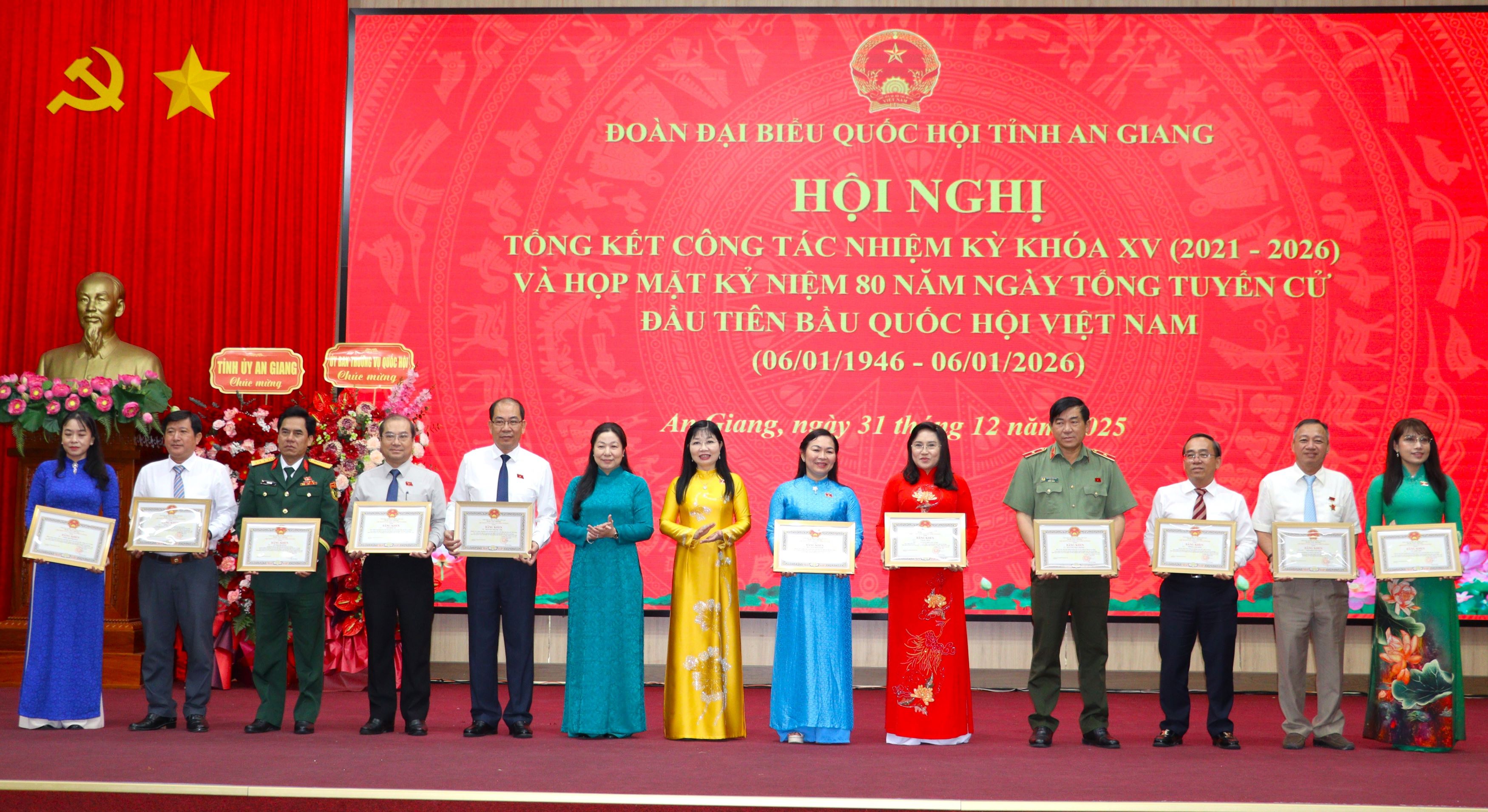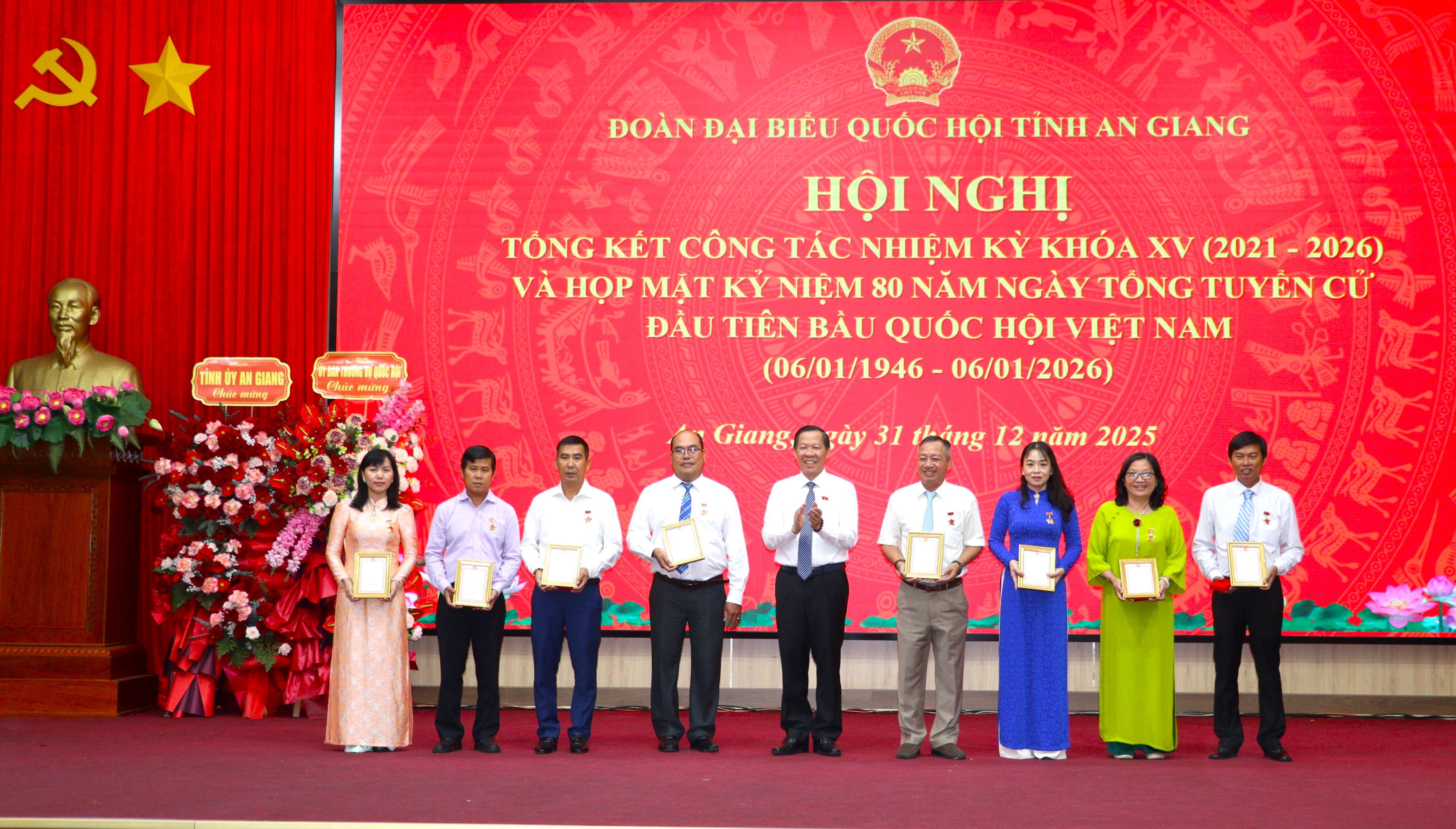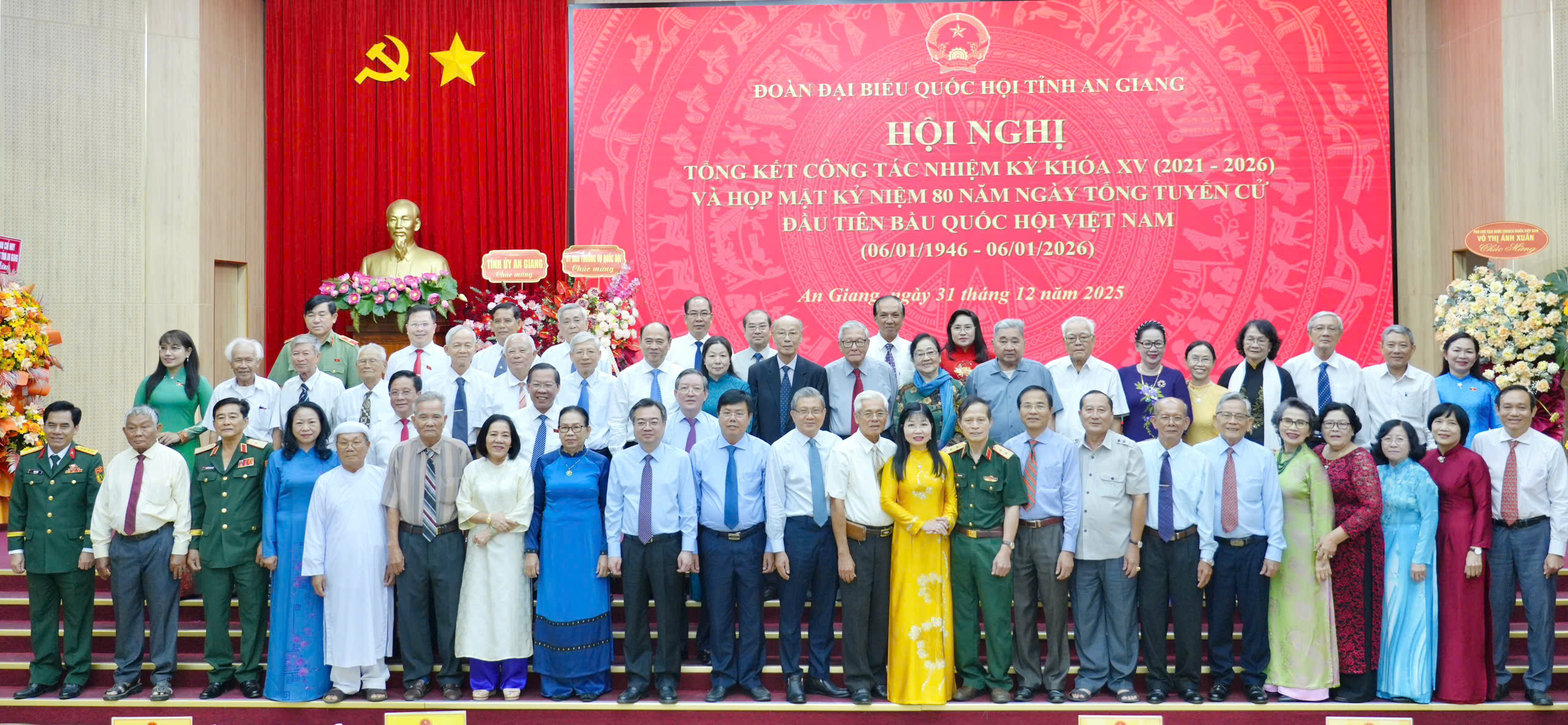 Sáng 31/12, tại phường Rạch Giá, Đoàn đại biểu Quốc hội tỉnh An Giang tổng kết công tác nhiệm kỳ khóa XV (2021 - 2026) và họp mặt kỷ niệm 80 năm Ngày Tổng tuyển cử đầu tiên bầu Quốc hội Việt Nam (06/01/1946 - 06/01/2026).
