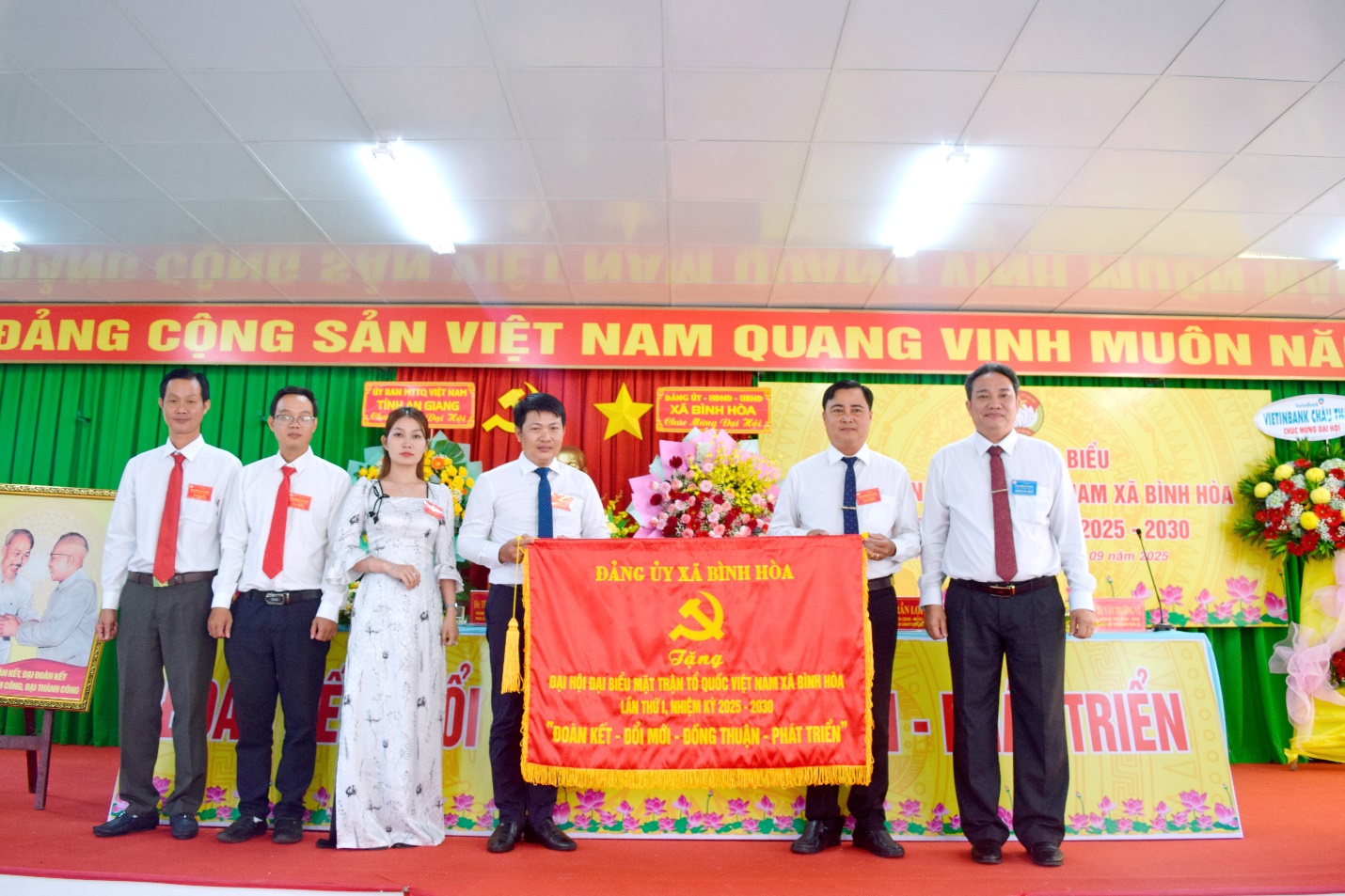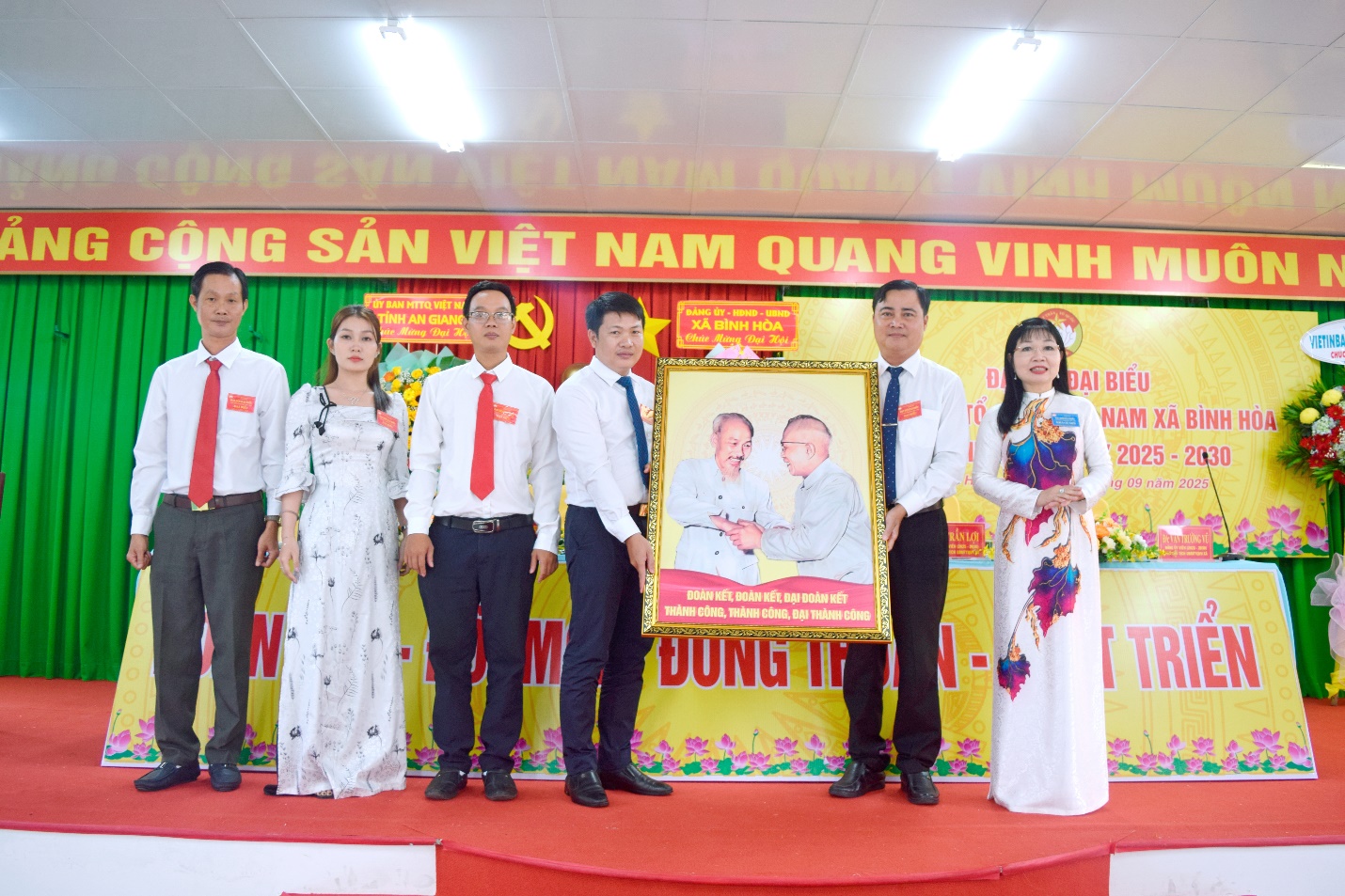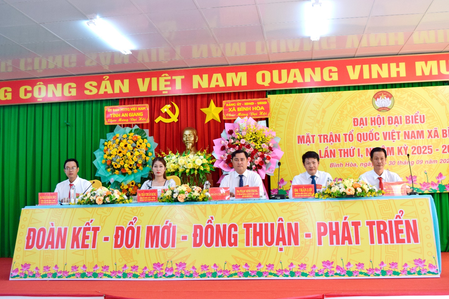 (Cổng TTĐT tỉnh AG)- Trong 2 ngày 29 và 30/9, Ủy ban Mặt trận Tổ quốc Việt Nam xã Bình Hòa tổ chức Đại hội đại biểu Ủy ban Mặt trận Tổ quốc Việt Nam xã Bình Hòa lần thứ I, nhiệm kỳ 2025 – 2030. Phó Bí thư Tỉnh ủy, Trưởng đoàn Đại biểu Quốc hội tỉnh, Chủ tịch Ủy ban Mặt trận Tổ quốc Việt Nam tỉnh An Giang Trần Thị Thanh Hương đến dự và chỉ đạo đại hội.