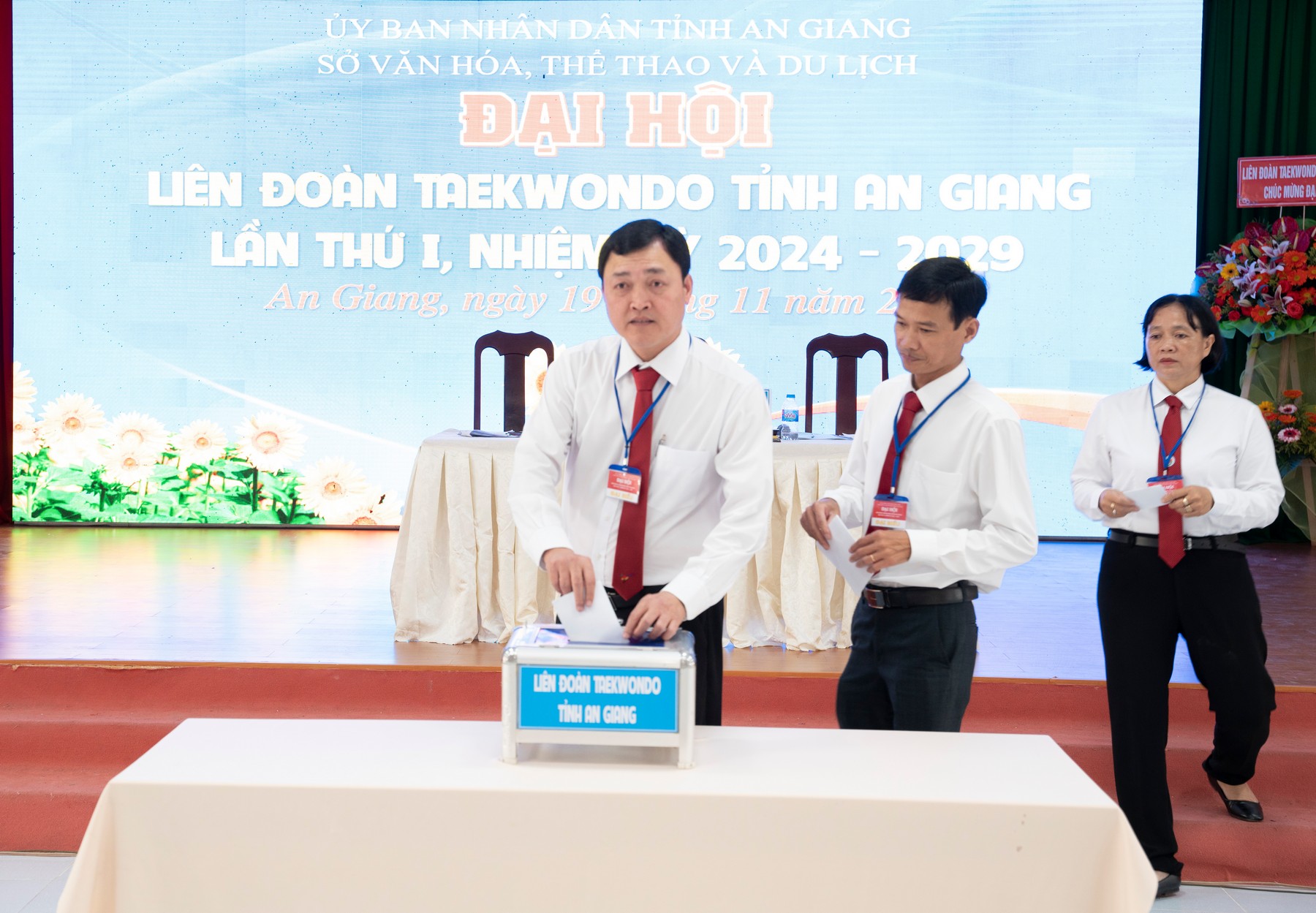 Đại hội đã thống nhất bầu Ban Chấp hành Liên đoàn Taekwondo tỉnh An Giang nhiệm kỳ I (2024 - 2029) gồm 15 ủy viên; 5 Ủy viên Ban Thường vụ. Ông Đặng Anh Kiệt, Giám đốc Trung tâm Đào tạo, Huấn luyện và Thi đấu thể dục - thể thao An Giang được bầu giữ chức Chủ tịch Liên đoàn Taekwondo tỉnh An Giang nhiệm kỳ I.