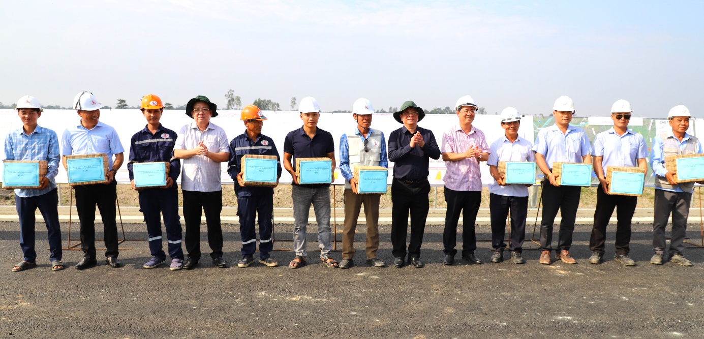 Dịp này, Chủ tịch UBND tỉnh An Giang Hồ Văn Mừng và Phó Chủ tịch Thường trực UBND tỉnh An Giang Nguyễn Thanh Phong trao tặng quà cho đội ngũ kỹ sư công nhân đang thi công tại công trường. Qua đó, động viên lực lượng nỗ lực vượt qua khó khăn, thi công khẩn trương hoàn thành kịp tiến độ dự án./.