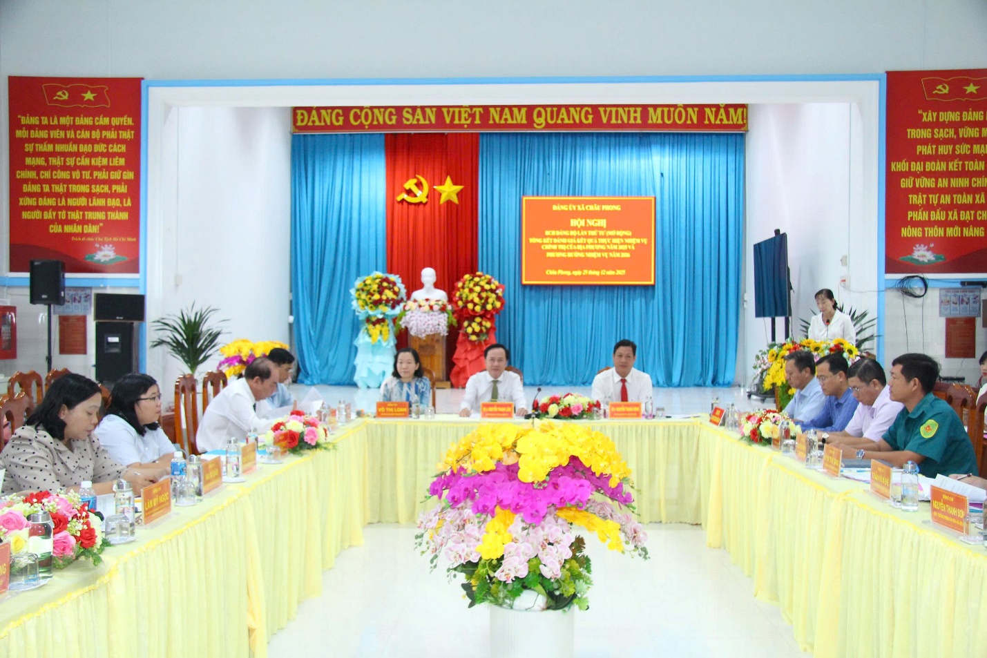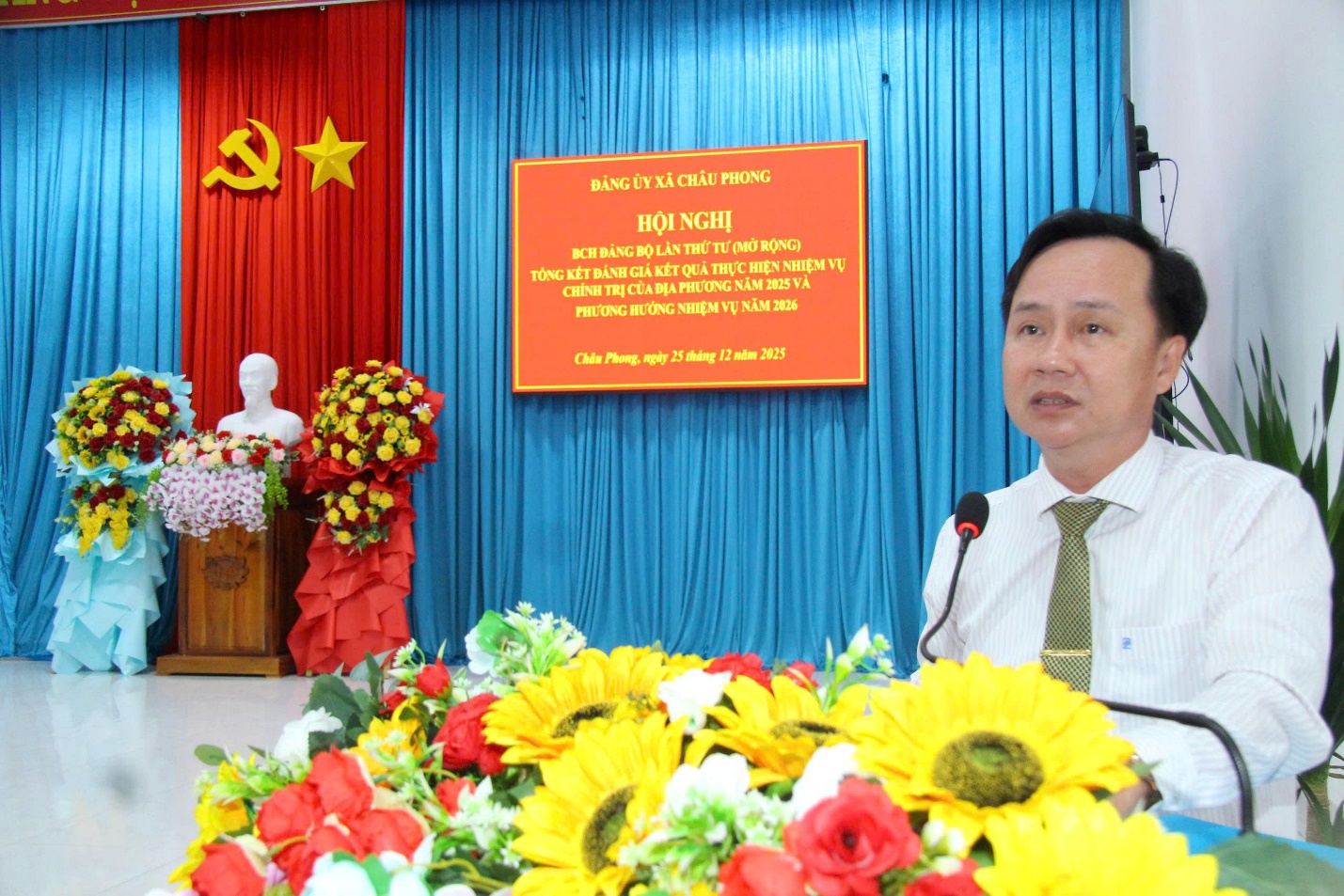 (Cổng TTĐT tỉnh AG)-Sáng ngày 25/12, Đảng ủy xã Châu Phong tổ Hội nghị Ban chấp hành Đảng bộ lần thứ tư (mở rộng), tổng kết đánh giá kết quả thực hiện nhiệm vụ chính trị năm 2025 và phương hướng năm 2026. Đến dự có đồng chí Nguyễn Trọng Thắng, đại diện Ban nội chính Tỉnh ủy; đồng chí Nguyễn Thanh Lâm, Bí thư Đảng ủy – Chủ tịch HĐND xã chủ trì Hội nghị.