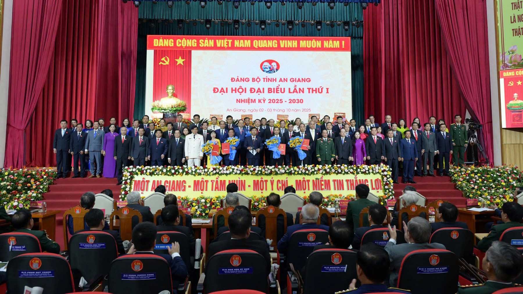 Ngày 03/10, tại Đại hội đại biểu Đảng bộ tỉnh An Giang lần thứ I, nhiệm kỳ 2025-2030, Công bố các Quyết định của Bộ Chính trị về chỉ định Ban Chấp hành Đảng bộ tỉnh An Giang (66 đồng chí).