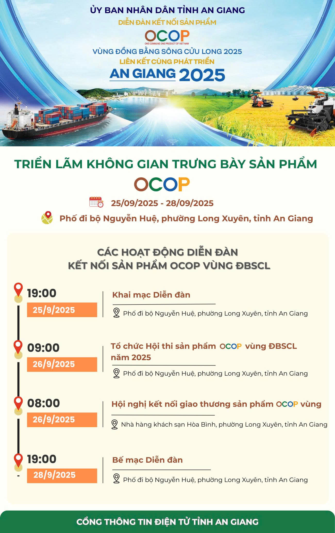 aA Diễn đàn OCOP vùng Đồng bằng sông Cửu Long năm 2025 Chủ đề: “Liên kết cùng phát triển – An Giang 2025” 23/09/2025, 16:15 Quay về Chia sẻ Z Copy link thành công /vi/dien-dan-ocop-vung-dong-bang-song-cuu-long-nam-2025-chu-de-lien-ket-cung-phat-trien-an-giang-2025