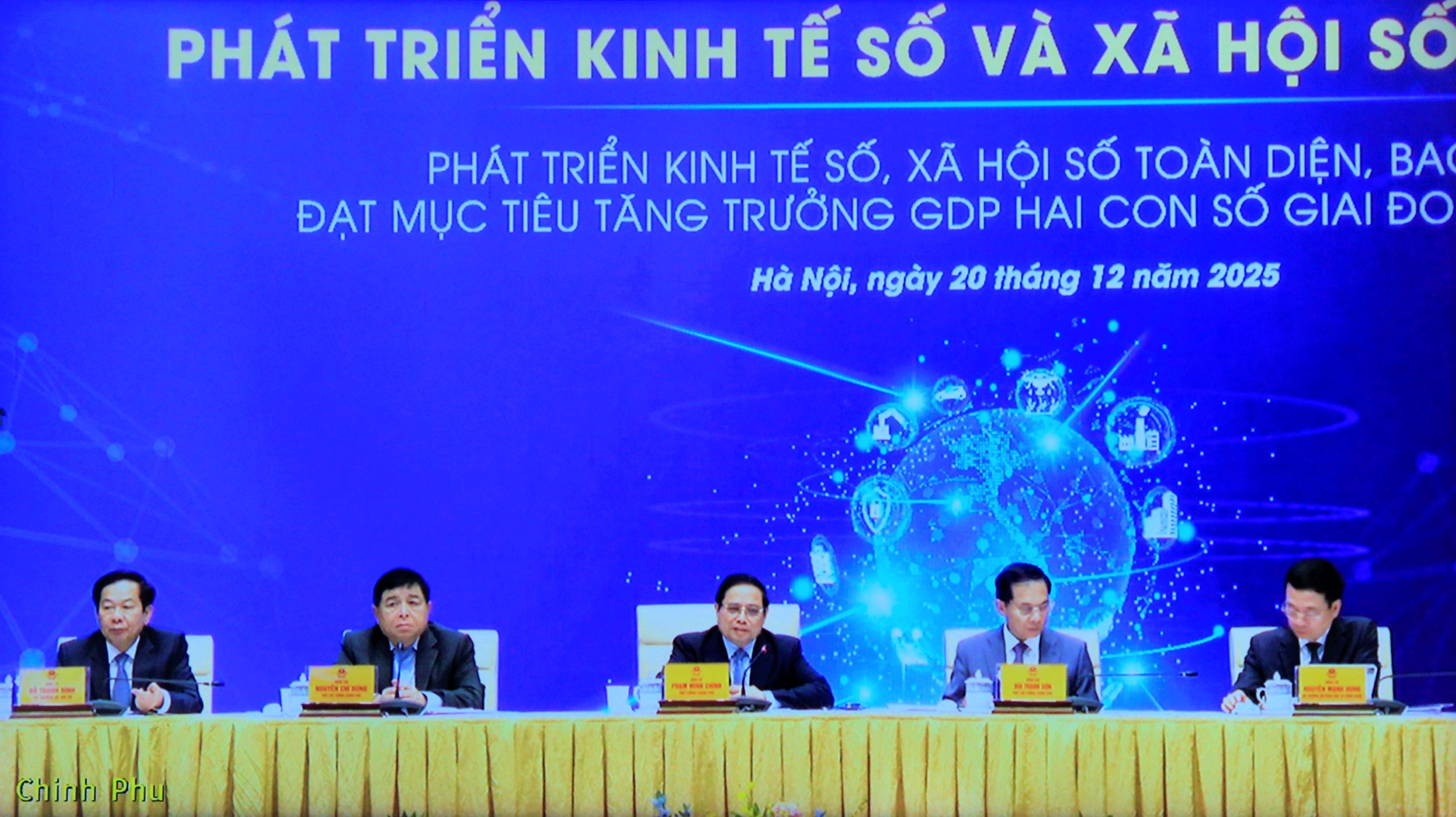 (Cổng TTĐT tỉnh AG) - Sáng 20/12, Thủ tướng Chính phủ Phạm Minh Chính chủ trì Diễn đàn quốc gia phát triển kinh tế số và xã hội số lần thứ 3 với chủ đề: "Phát triển kinh tế số, xã hội số toàn diện, bao trùm – Đạt mục tiêu tăng trưởng kinh tế hai con số giai đoạn 2026-2030".