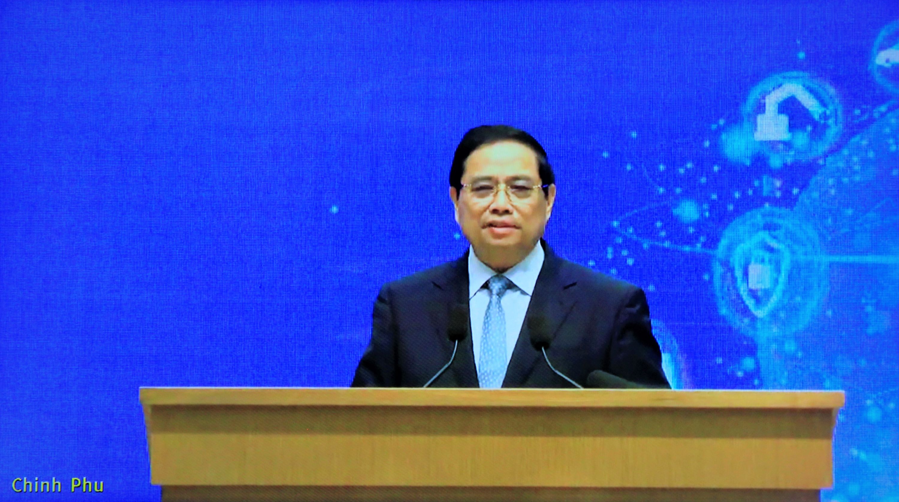 Phân tích bối cảnh, tình hình và các mục tiêu thời gian tới, Thủ tướng cho biết Đảng, Nhà nước đã xác định 2 mục tiêu chiến lược 100 năm, tăng trưởng kinh tế 2 con số những năm tới. Do đó, phải quán triệt quan điểm "Đảng lãnh đạo, Nhà nước kiến tạo, doanh nghiệp tiên phong, địa phương đi đầu, người dân hưởng ứng" trong xây dựng kinh tế số, xã hội số, công dân số; với tinh thần xã hội số là nền tảng, kinh tế số là động lực, người dân là trung tâm.