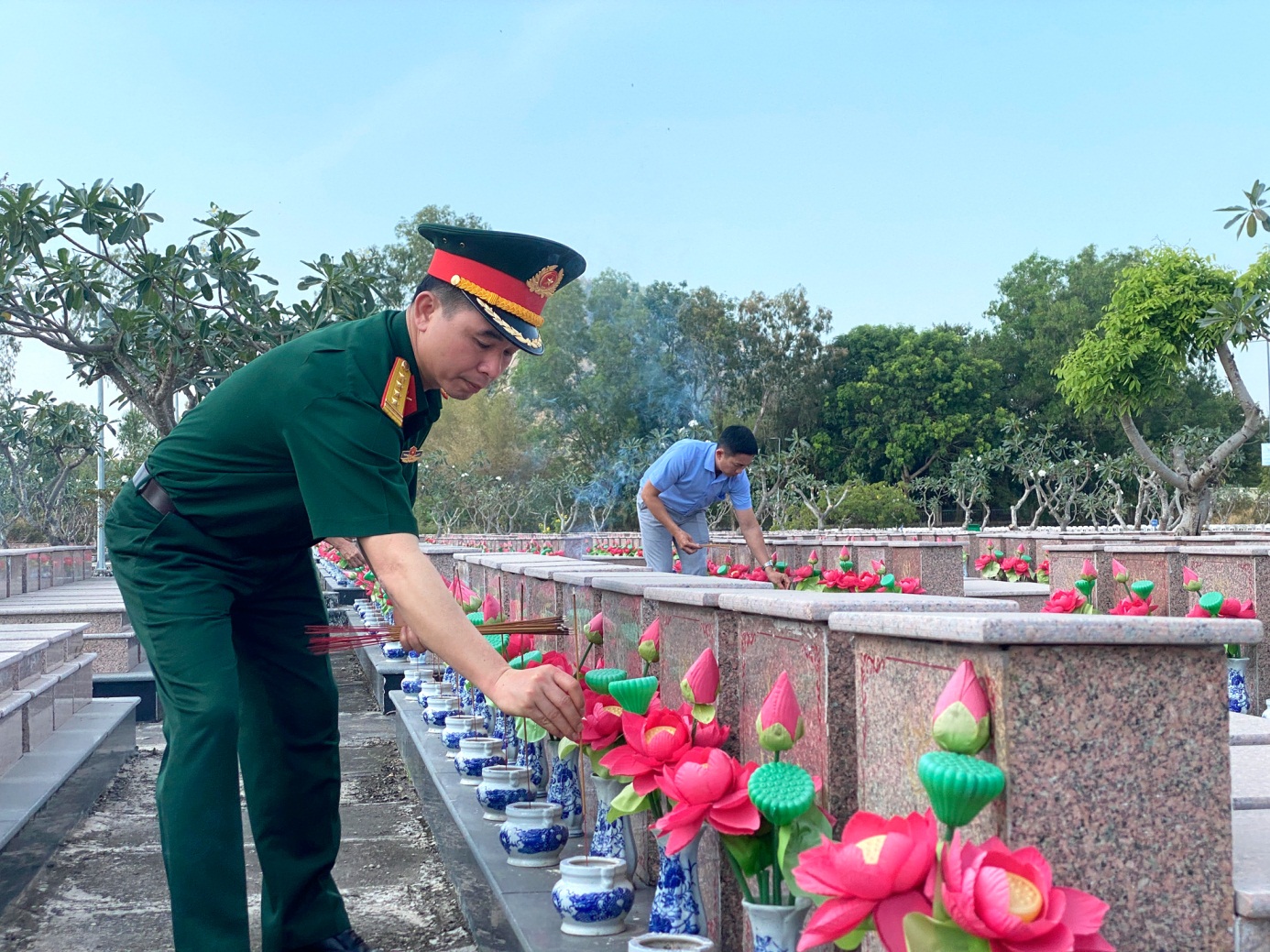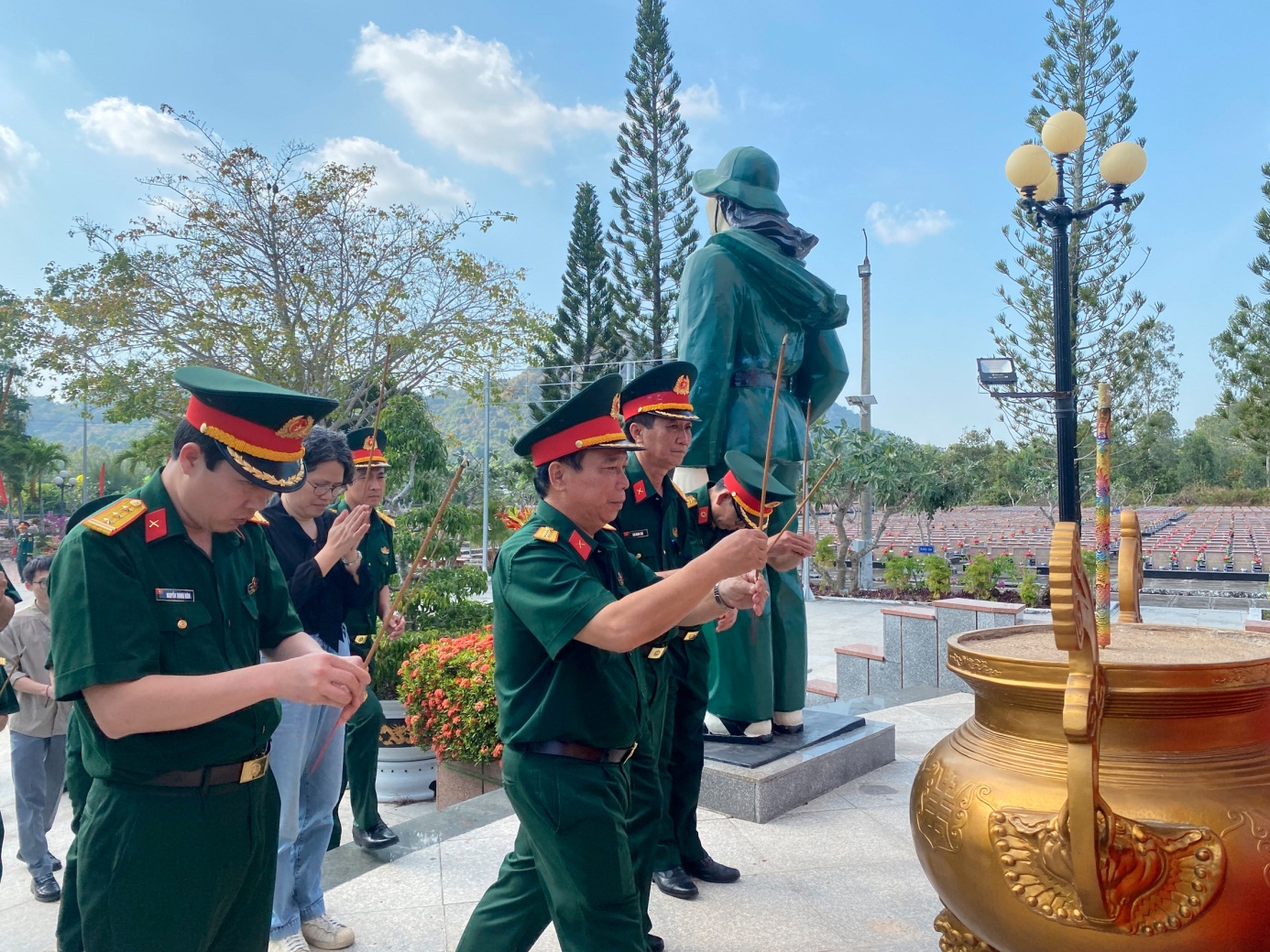 Sau buổi làm việc tại UBND phường Thới Sơn, Đoàn công tác đã thành kính tổ chức lễ dâng hoa, dâng hương tưởng niệm các anh hùng liệt sĩ tại Nghĩa trang Liệt sĩ Dốc Bà Đắc. Trong không khí trang nghiêm, các đại biểu đã bày tỏ lòng biết ơn vô hạn đối với sự hy sinh to lớn của các thế hệ cha anh vì sự nghiệp giải phóng dân tộc và bảo vệ Tổ quốc.