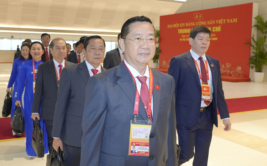 (Cổng TTĐT tỉnh AG)- Sáng 20/01, Đoàn đại biểu Đảng bộ tỉnh An Giang gồm 37 đại biểu đã đến dự phiên khai mạc Đại hội đại biểu toàn quốc lần thứ XIV của Đảng. Đại hội có sự tham dự của 1.586 đại biểu, đại diện cho ý chí và nguyện vọng hơn 5,6 triệu đảng viên Đảng Cộng sản Việt Nam.