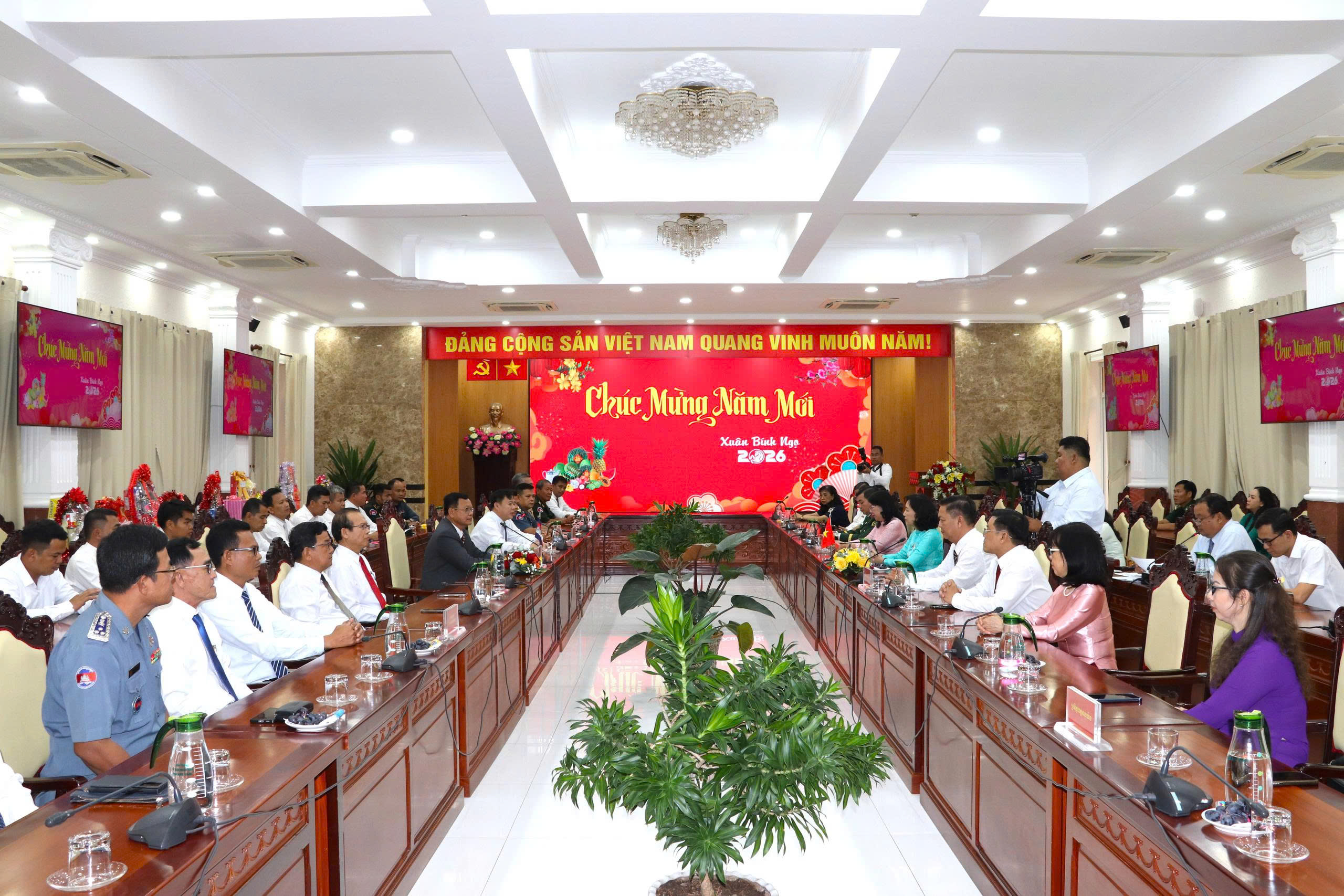 (Cổng TTĐT tỉnh AG) – Ngày 06/02, Phó Chủ tịch UBND tỉnh Nguyễn Thị Minh Thúy tiếp đoàn đại biểu do ông Khiev Rithiphorn, Phó Tỉnh trưởng tỉnh Kampot (Vương quốc Campuchia) dẫn đầu sang thăm, chúc Tết lãnh đạo UBND tỉnh An Giang, nhân dịp Xuân Bính Ngọ 2026.