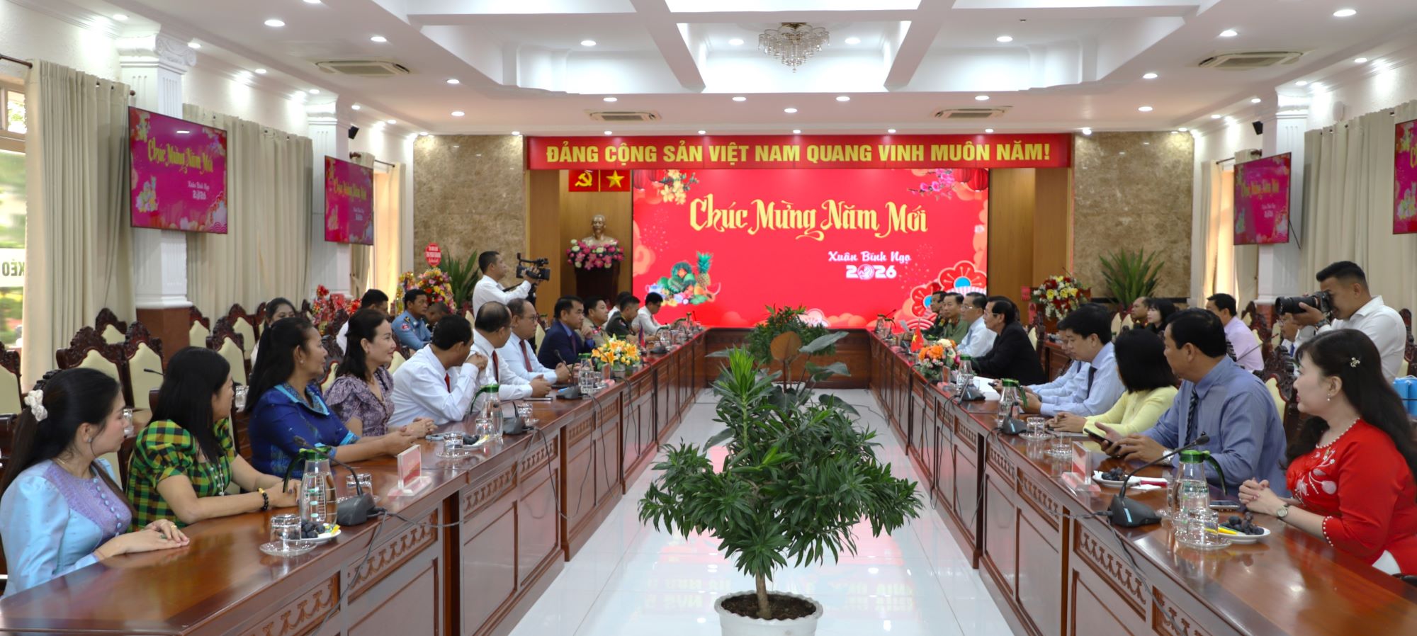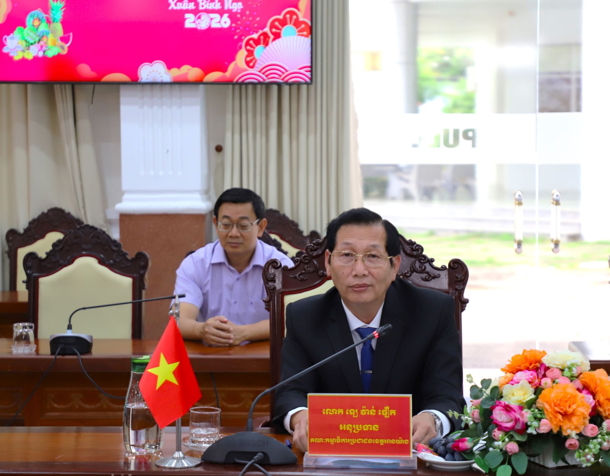 (Cổng TTĐT tỉnh AG) - Chiều ngày 05/02, Tỉnh ủy viên, Phó Chủ tịch UBND tỉnh An Giang - Việt Nam Lê Văn Phước đón tiếp Đoàn đại biểu tỉnh Preah Sihanouk (Prét Si-ha-núc) - Vương quốc Campuchia, do Phó Tỉnh trưởng tỉnh Preah Sihanouk Em Pheap (Em-Phiếp) làm Trưởng đoàn sang thăm và chúc Tết Lãnh đạo UBND tỉnh nhân dịp Tết Nguyên đán Bính Ngọ năm 2026.