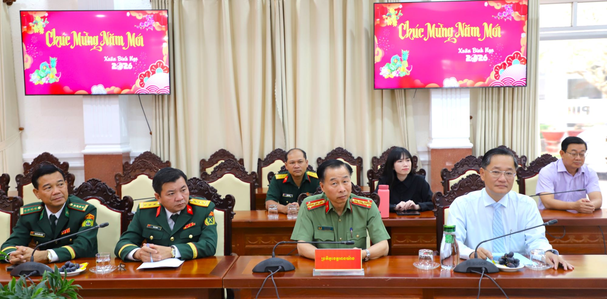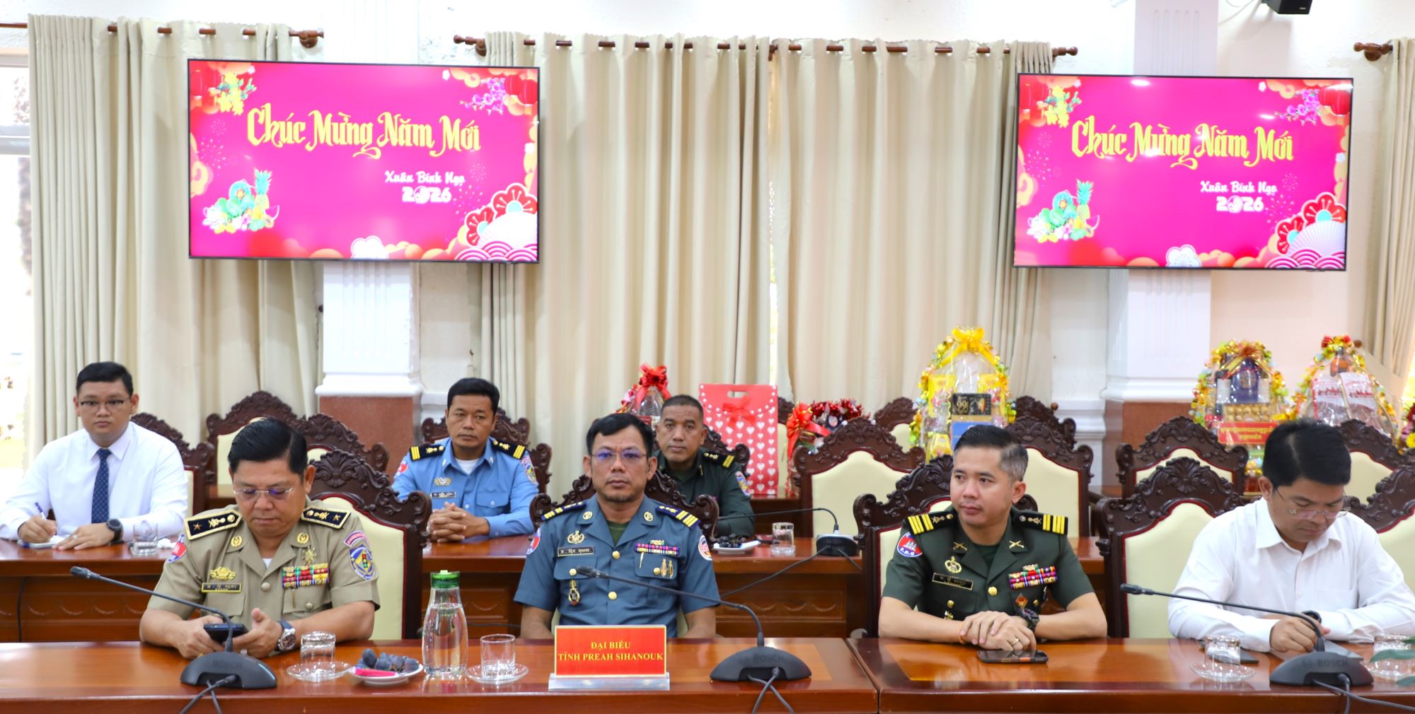Thông qua buổi chúc Tết hôm nay, Phó Tỉnh trưởng tỉnh Preah Sihanouk thông tin thêm về tình hình phát triển kinh tế - xã hội của tỉnh thời gian qua. Dịp này, Phó Tỉnh trưởng tỉnh Preah Sihanouk chúc mừng và gửi lời chúc tốt đẹp nhất đến lãnh đạo Đảng, Nhà nước Việt Nam nói chung và Đảng, chính quyền, lực lượng vũ trang và nhân dân tỉnh An Giang nói riêng luôn dồi dào sức khỏe, hạnh phúc và thịnh vượng. Chúc mối quan hệ đoàn kết, hữu nghị giữa Campuchia và Việt Nam, nhất là giữa tỉnh Preah Sihanouk và An Giang sẽ mãi mãi trường tồn; luôn nhận được phước lành của Đức phật: Sống lâu, sắc đẹp, trí tuệ và an vui không tách rời.