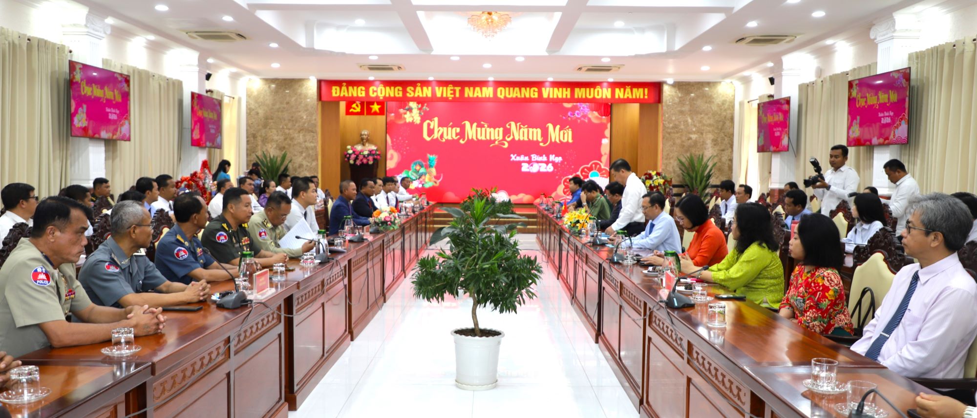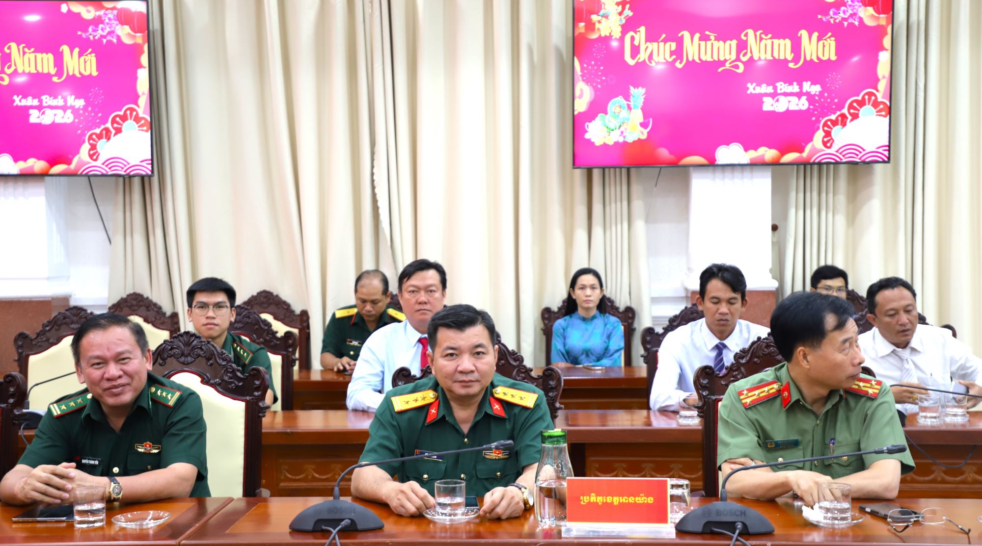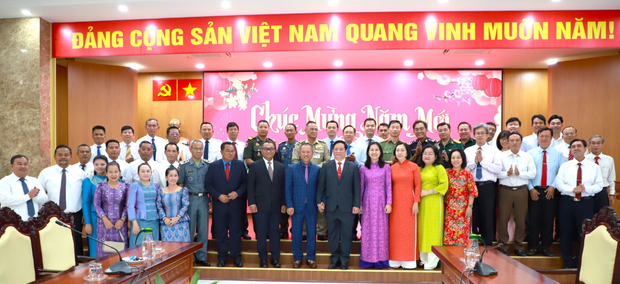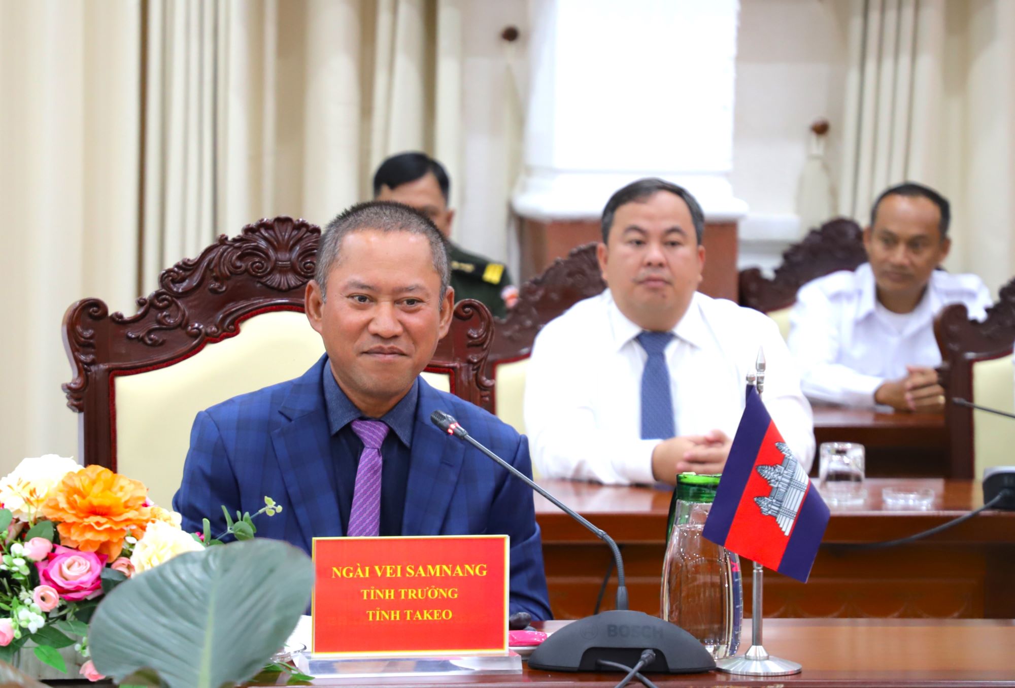 Phát biểu tại buổi thăm, chúc Tết, Tỉnh trưởng tỉnh Takeo Vei Samnang cảm ơn sự đón tiếp nồng hậu, chu đáo của lãnh đạo tỉnh An Giang. Nhân dịp Tết cổ truyền của dân tộc Việt Nam, Tỉnh trưởng tỉnh Takeo chúc lãnh đạo tỉnh, lực lượng vũ trang và nhân dân tỉnh An Giang đón xuân mới dồi dào sức khỏe, hạnh phúc, thịnh vượng và đạt nhiều thành công.