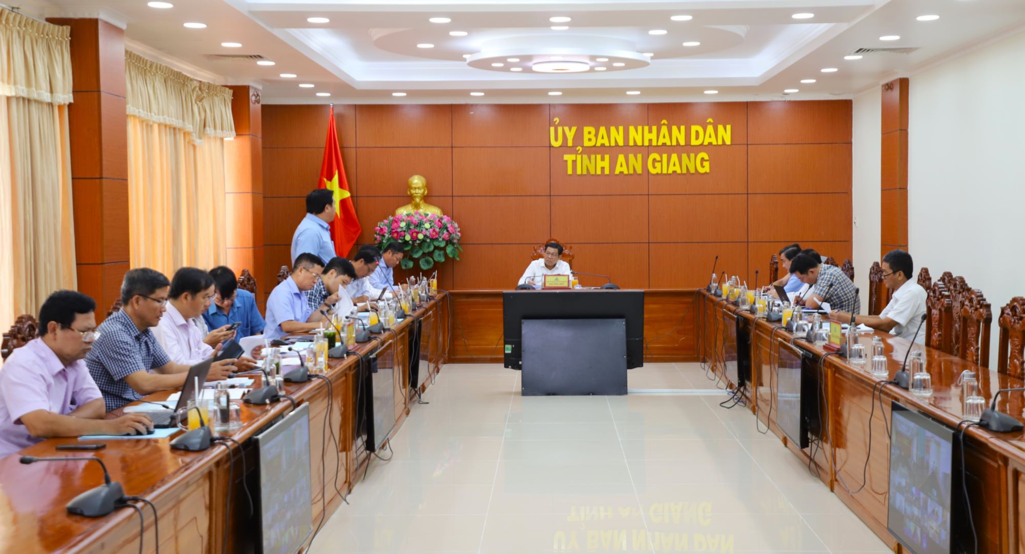 (Cổng TTĐT tỉnh AG) - Sáng ngày 23/4, Phó Chủ tịch UBND tỉnh An Giang, Trưởng đoàn kiểm tra số 04 Ngô Công Thức chủ trì buổi làm việc với các sở, ban, ngành liên quan về tình hình triển khai thực hiện và giải ngân vốn đầu tư công năm 2026 đối với các công trình trọng điểm cấp tỉnh; trực tuyến với các địa phương liên quan.
