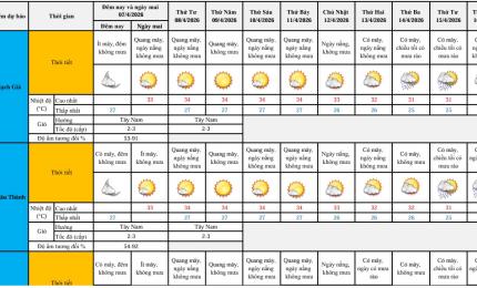 aA Thời tiết - Thủy văn mực nước Dự báo thời tiết đêm nay và ngày mai 02/4/2026 01/04/2026, 16:46 Xem chi tiết Dự báo thời tiết đêm nay và ngày mai 02/4/2026 (216.76 KB) Quay về Chia sẻ Copy link thành công Bài viết cùng chuyên mục Biểu đồ mực nước thấp nhất ngày và TBNN các trạm thủy văn tỉnh An Giang Thời tiết - Thủy văn mực nước 07/04/2026 Tin dự báo nắng nóng tỉnh An Giang Thời tiết - Thủy văn mực nước Thông Báo 07/04/2026 Dự báo thời tiết điểm 10 ngày tới tại An Giang Thời tiết - Thủy văn mực nước 06/04/2026 Bản tin dự báo, cảnh báo hải văn thời hạn đến 10 ngày vùng biển tỉnh An Giang Thời tiết - Thủy văn mực nước 06/04/2026 Tin dự báo, cảnh báo thuỷ văn thời hạn ngắn tỉnh An Giang Thời tiết - Thủy văn mực nước 06/04/2026 Tin dự báo nắng nóng tỉnh An Giang Thời tiết - Thủy văn mực nước 06/04/2026 Dự báo thời tiết đêm nay và ngày mai 04/4/2026 Thời tiết - Thủy văn mực nước 03/04/2026 Biểu đồ mực nước cao nhất ngày và TBNN các trạm thủy văn tỉnh An Giang Thời tiết - Thủy văn mực nước 03/04/2026 Dự báo thời tiết điểm 10 ngày tới tại An Giang Thời tiết - Thủy văn mực nước 03/04/2026 Tin dự báo, cảnh báo thuỷ văn thời hạn ngắn tỉnh An Giang Thời tiết - Thủy văn mực nước 03/04/2026 /vi/du-bao-thoi-tiet-dem-nay-va-ngay-mai-0242026