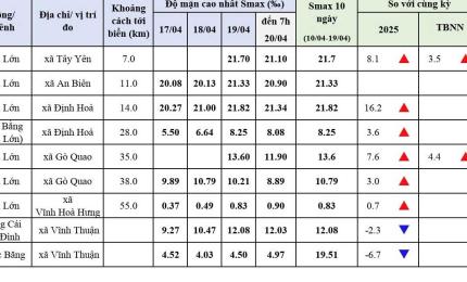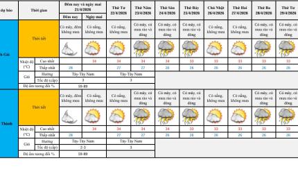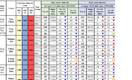 aA Thời tiết - Thủy văn mực nước Thông Báo Dự báo thời tiết điểm 10 ngày tới tại An Giang 21/04/2026, 17:29 Xem chi tiết Dự báo thời tiết điểm 10 ngày tới tại An Giang (395.05 KB) Quay về Chia sẻ Copy link thành công Bài viết cùng chuyên mục Bản tin dự báo, cảnh báo khí tượng thuỷ văn thời hạn mùa tỉnh An Giang Thời tiết - Thủy văn mực nước 21/04/2026 Bản tin dự báo, cảnh báo thuỷ văn thời hạn ngắn tỉnh An Giang Thời tiết - Thủy văn mực nước 21/04/2026 Tin dự báo cảnh báo thuỷ văn thời hạn ngắn tỉnh An Giang Thời tiết - Thủy văn mực nước 21/04/2026 Tin dự báo nắng nóng tỉnh An Giang Thời tiết - Thủy văn mực nước 21/04/2026 Dự báo thời tiết điểm 10 ngày tới tại An Giang Thời tiết - Thủy văn mực nước 20/04/2026 Dự báo thời tiết đêm nay và ngày mai 21/4/2026 Thời tiết - Thủy văn mực nước 20/04/2026 Bản tin dự báo, cảnh báo thuỷ văn thời hạn ngắn tỉnh An Giang Thời tiết - Thủy văn mực nước 20/04/2026 Bảng Theo dõi độ mặn khu vực tỉnh An Giang Thời tiết - Thủy văn mực nước 20/04/2026 Tin dự báo nắng nóng tỉnh An Giang Thời tiết - Thủy văn mực nước Thông Báo 20/04/2026 Bản tin dự báo, cảnh báo hải văn thời hạn đến 10 ngày vùng biển tỉnh An Giang Thời tiết - Thủy văn mực nước 17/04/2026 /vi/du-bao-thoi-tiet-diem-10-ngay-toi-tai-an-giang-87